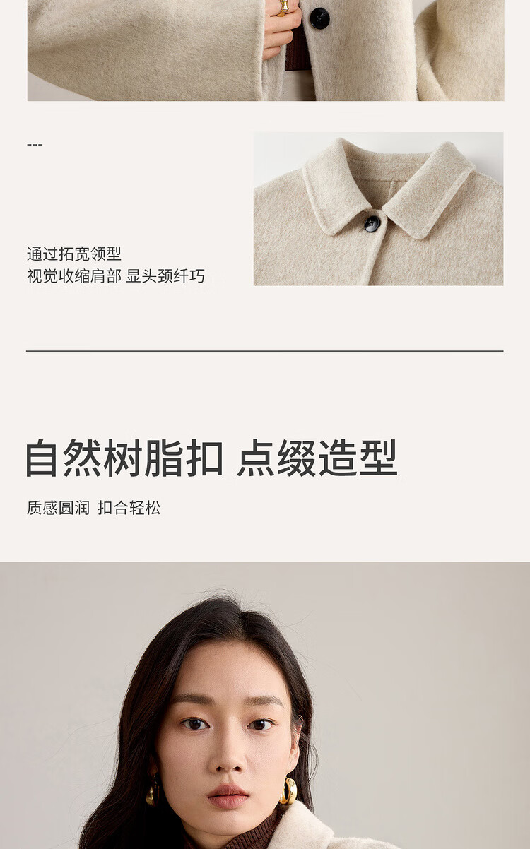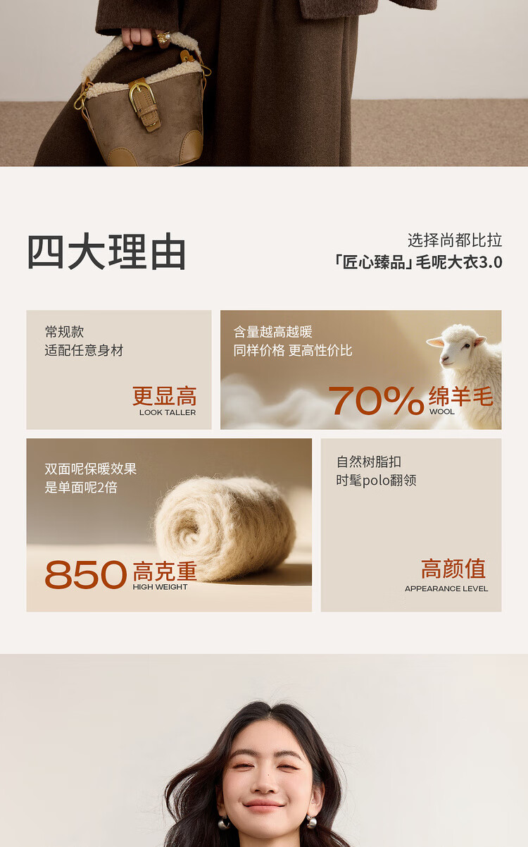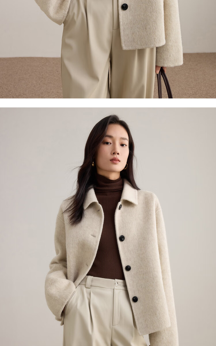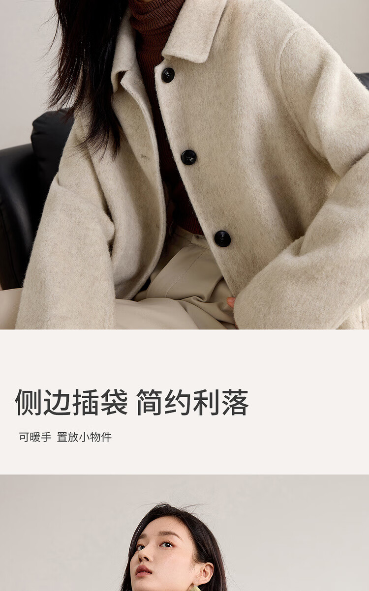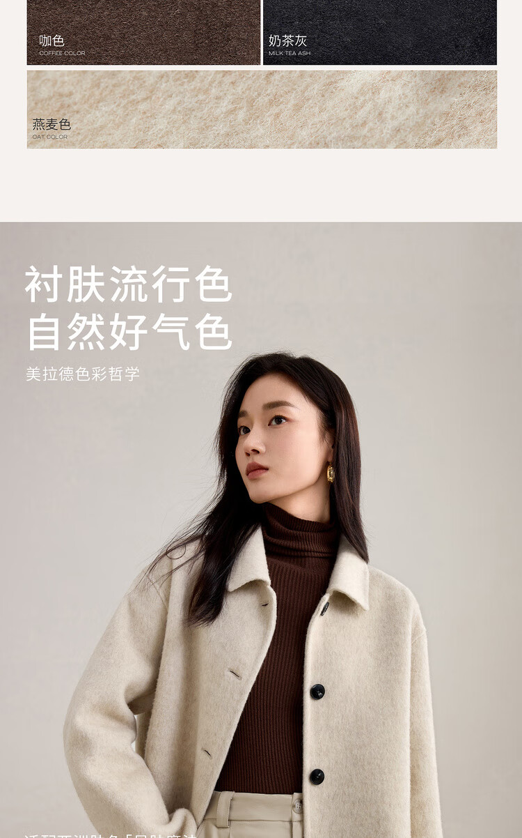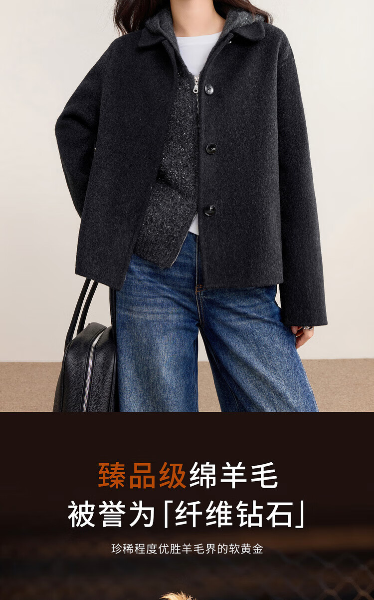 尚都比拉含绵羊毛气质毛呢大衣女冬季保暖通勤厚双面呢外套显瘦长袖上衣