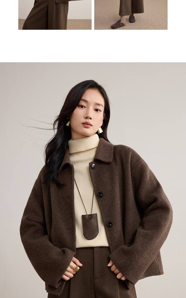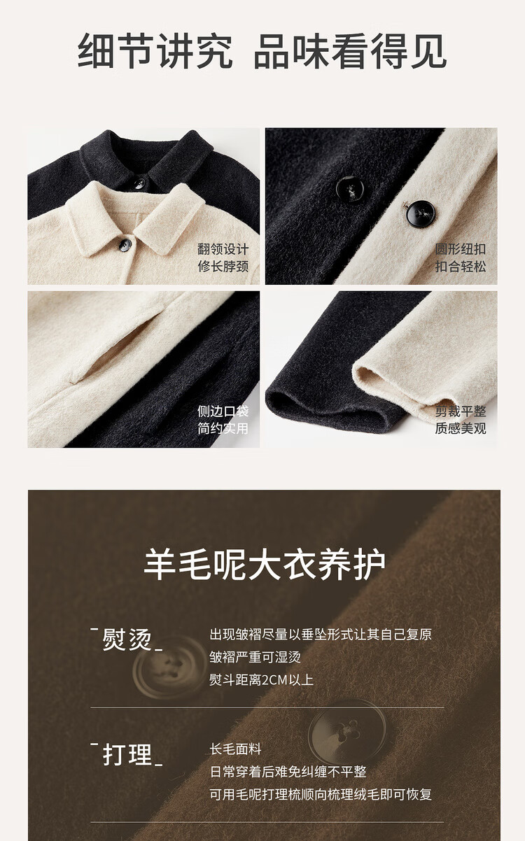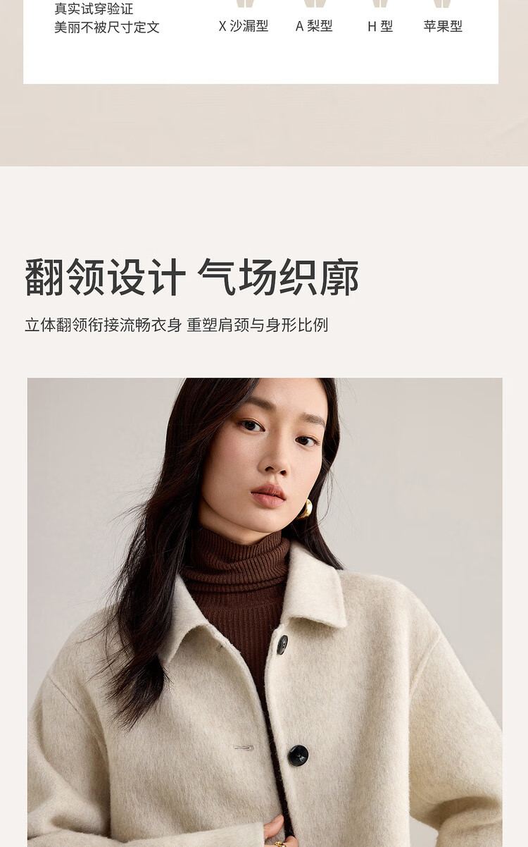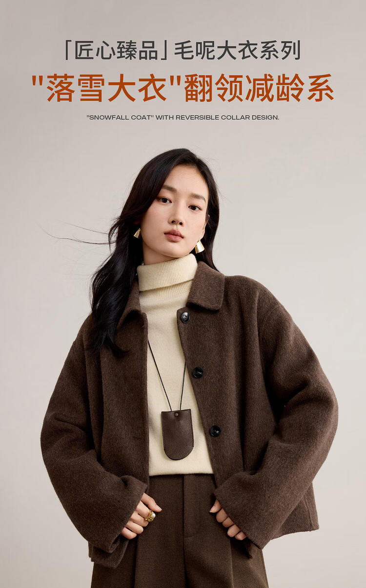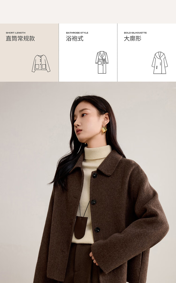 尚都比拉含绵羊毛气质毛呢大衣女冬季保暖通勤厚双面呢外套显瘦长袖上衣