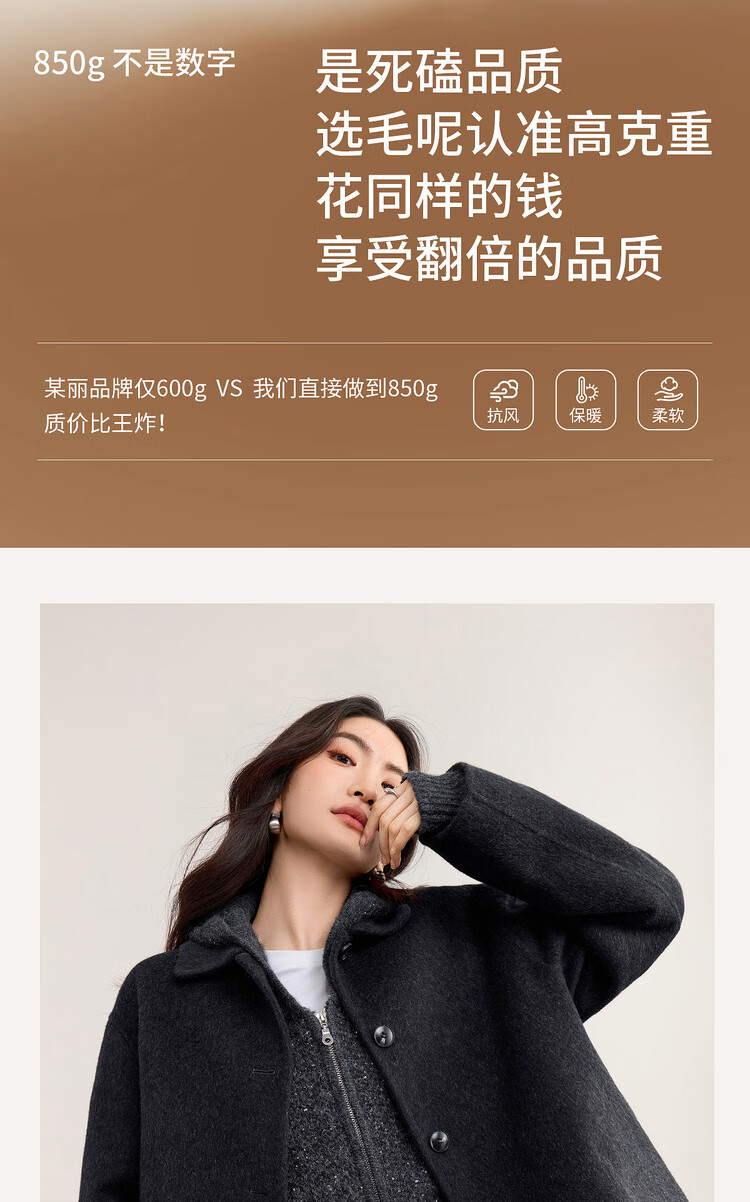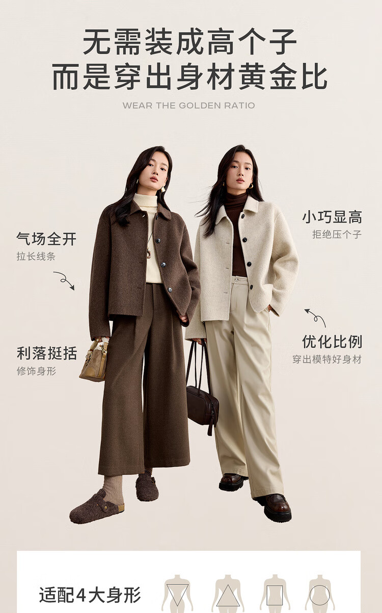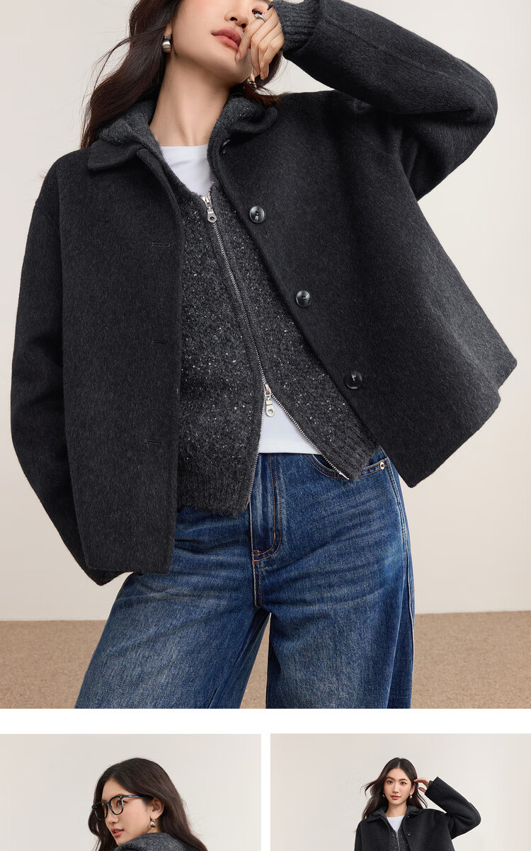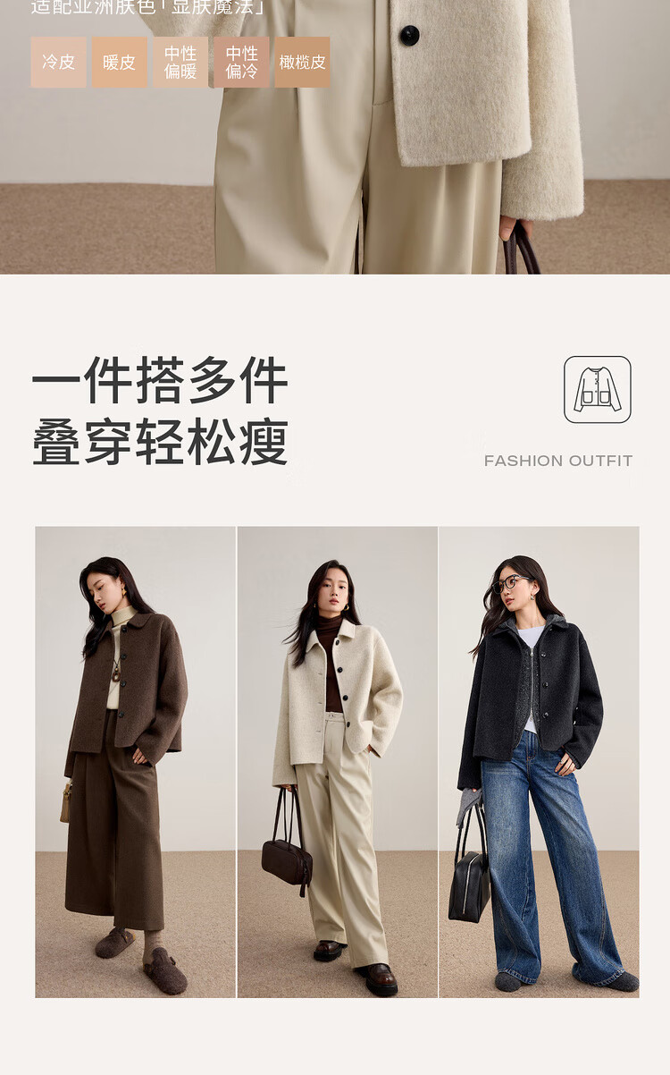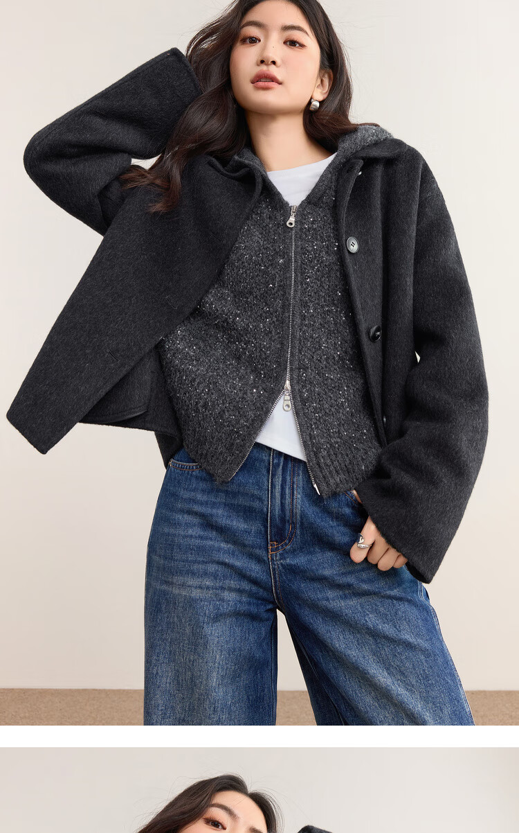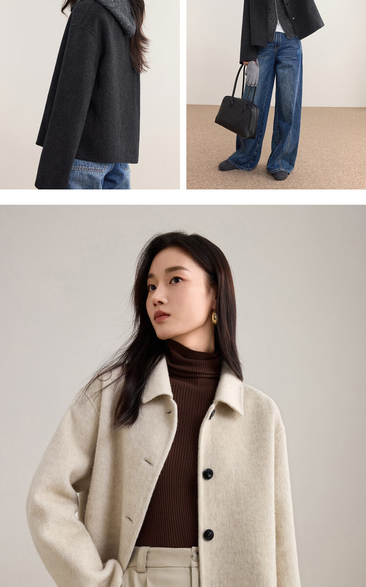 尚都比拉含绵羊毛气质毛呢大衣女冬季保暖通勤厚双面呢外套显瘦长袖上衣