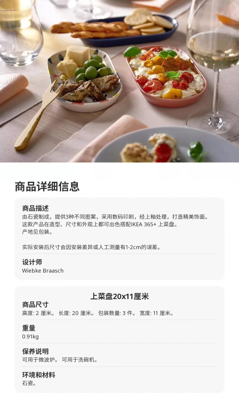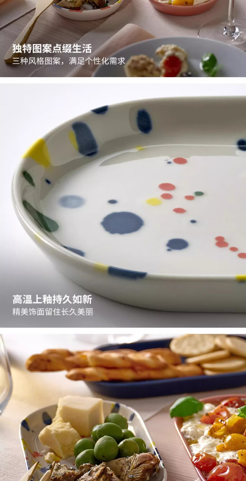 宜家(IKEA)RODSNULTRA 瑞德纳加 上菜盘 20x11 混合图案 3件 上菜盘3件套20x11cm
