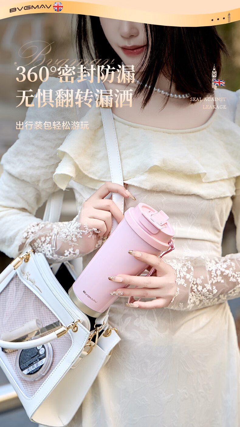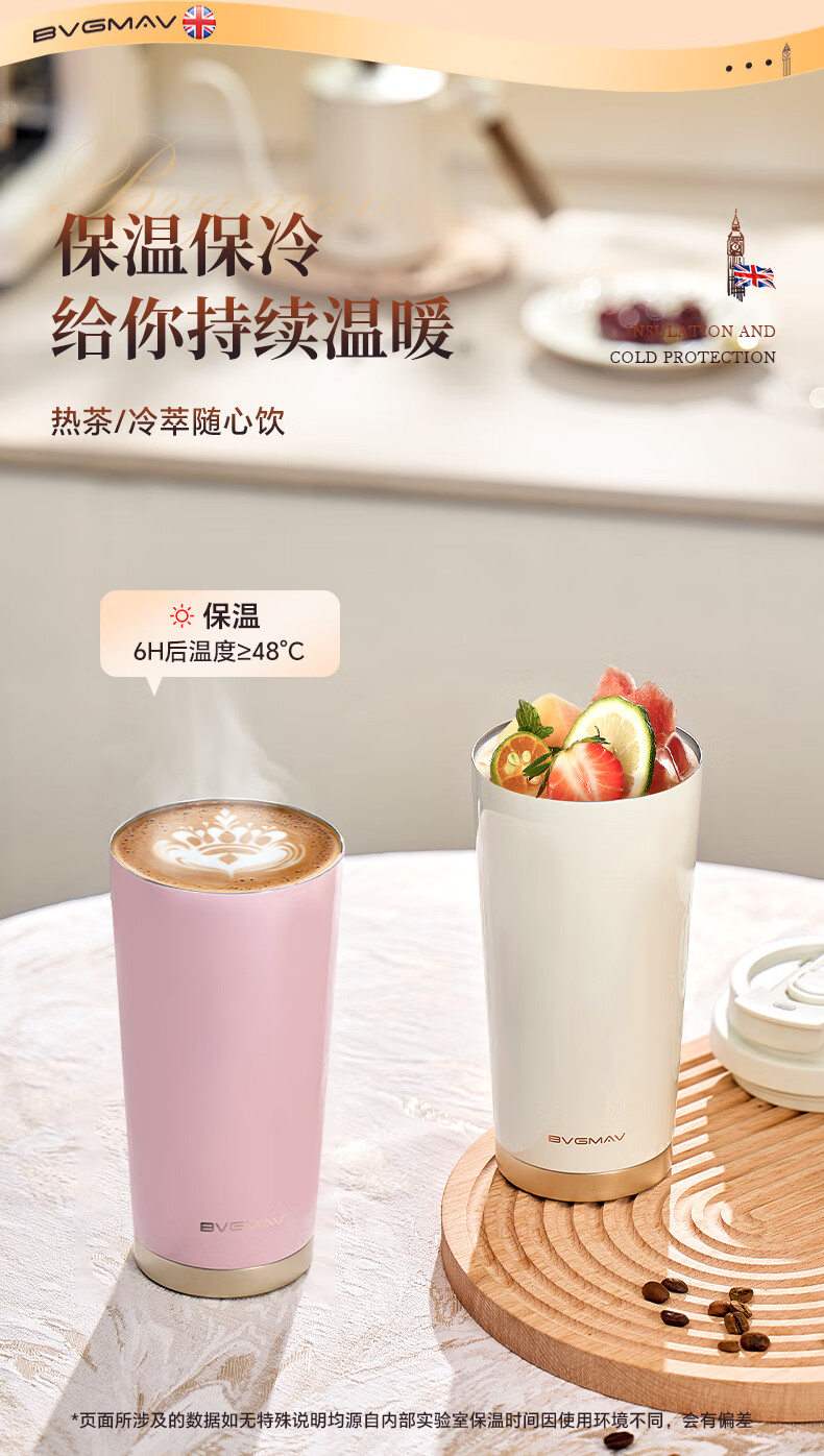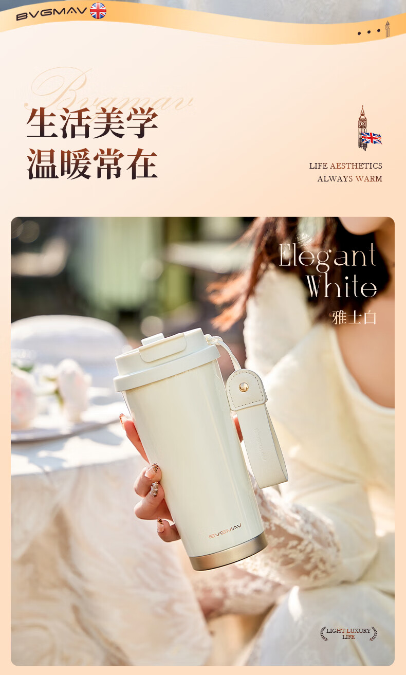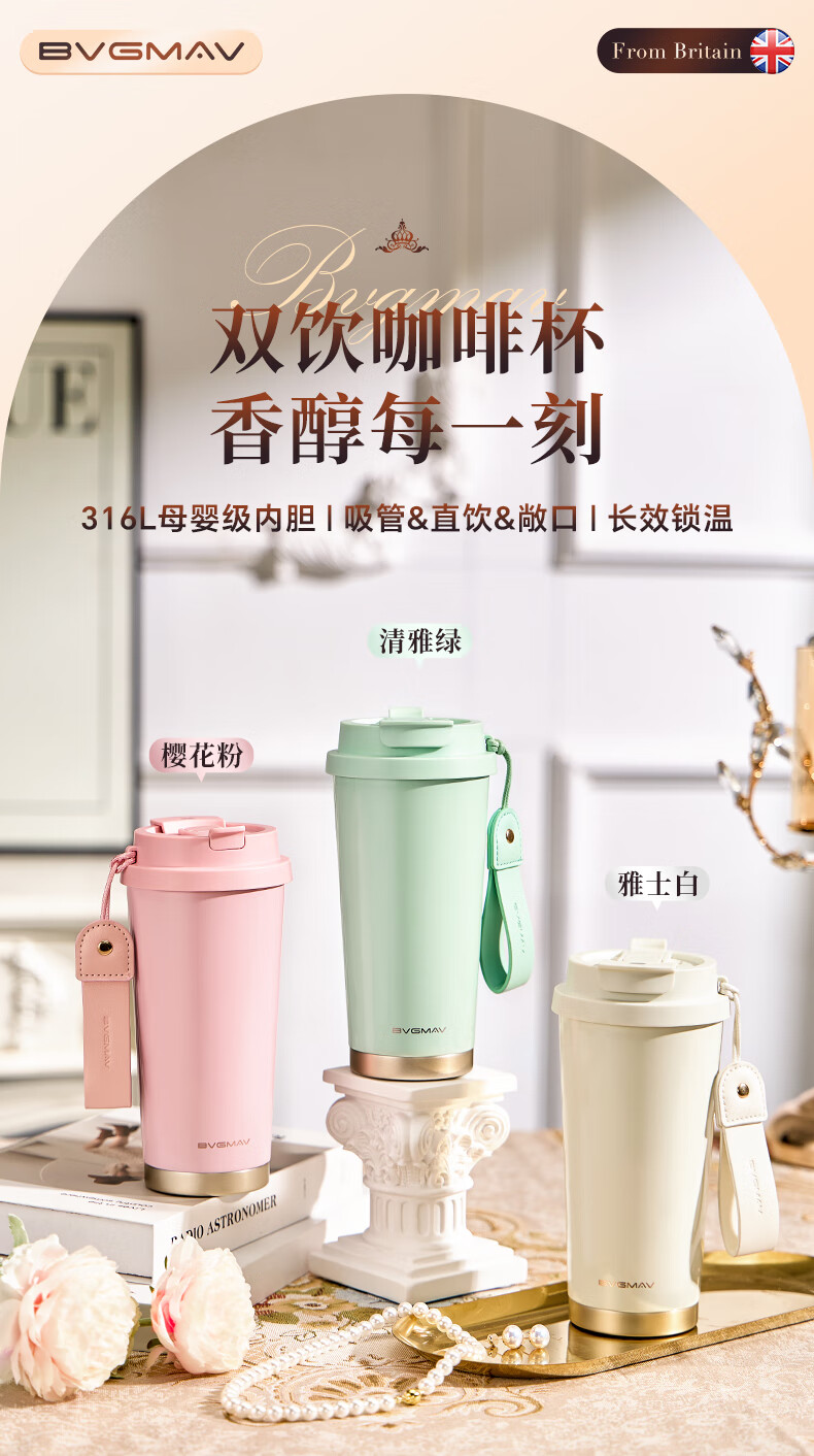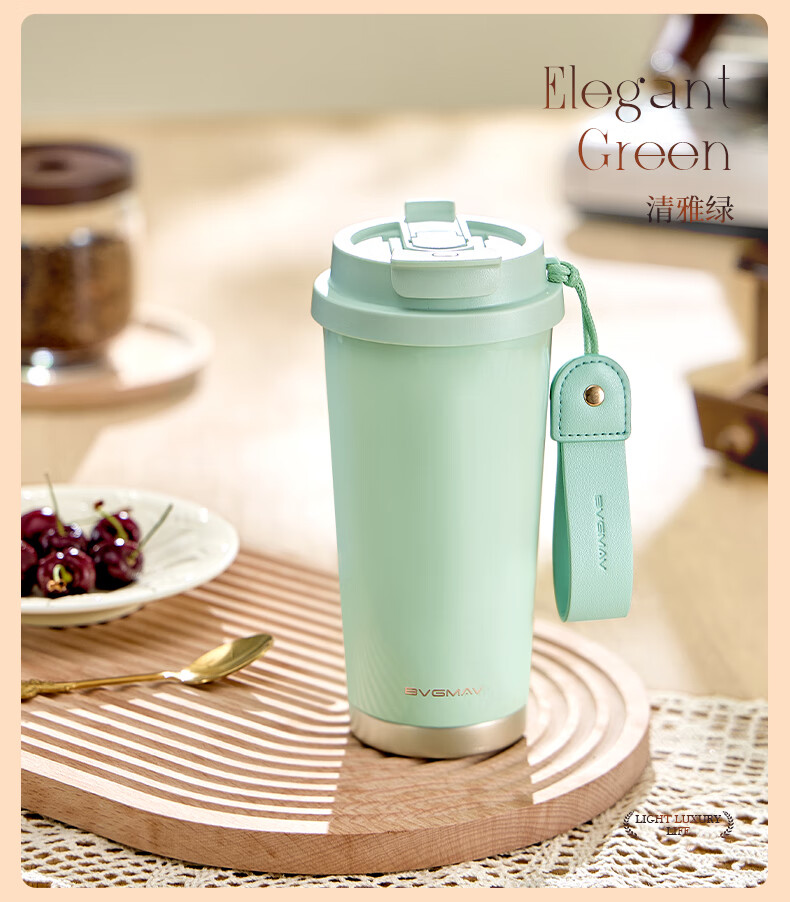 宝威玛(BVGMAV)咖啡杯 便携高颜值316不锈钢保温杯 高档大容量可乐杯 办公室水杯 清雅绿520ml