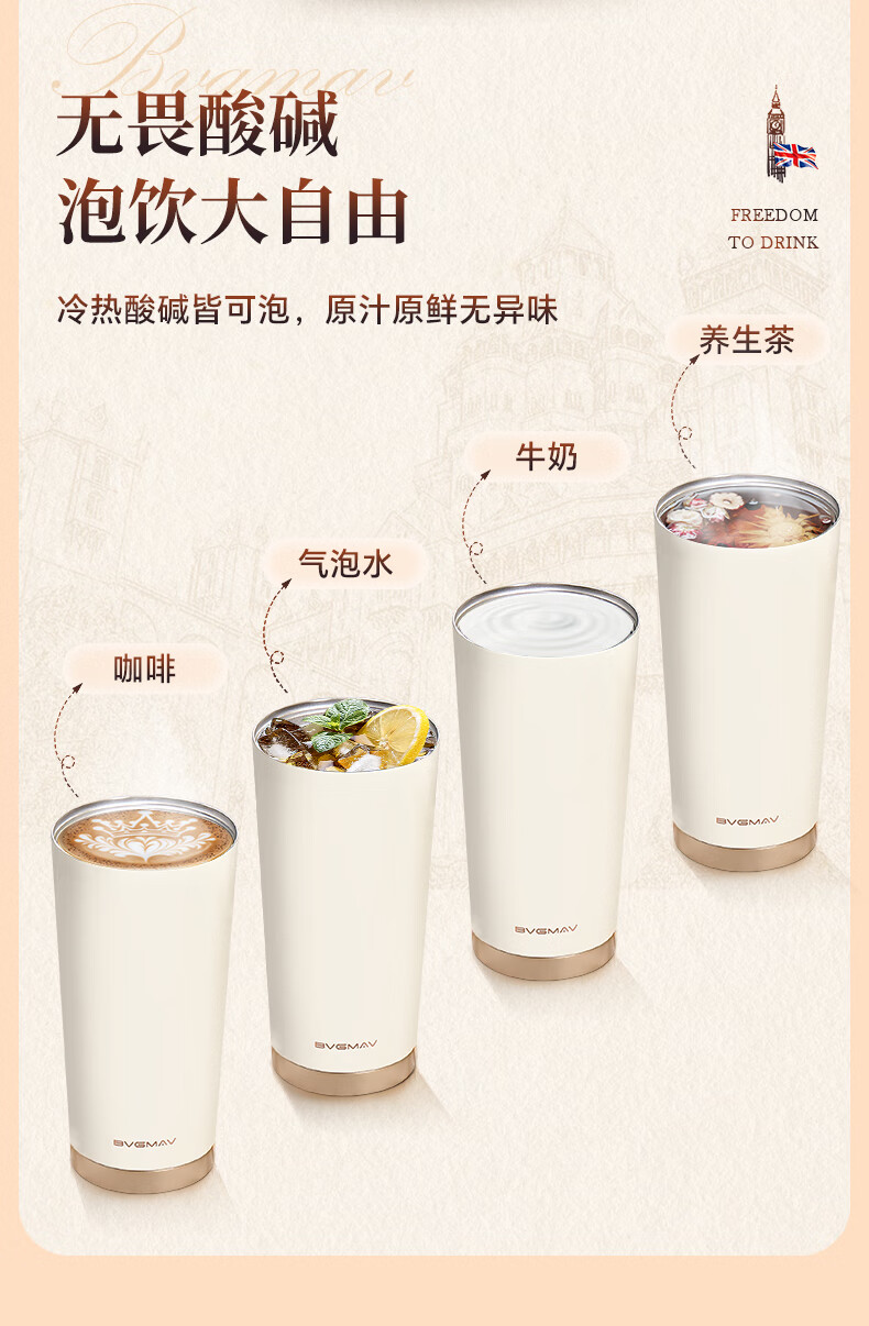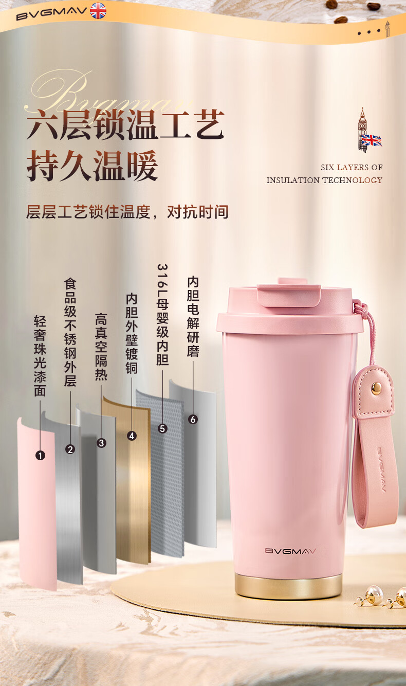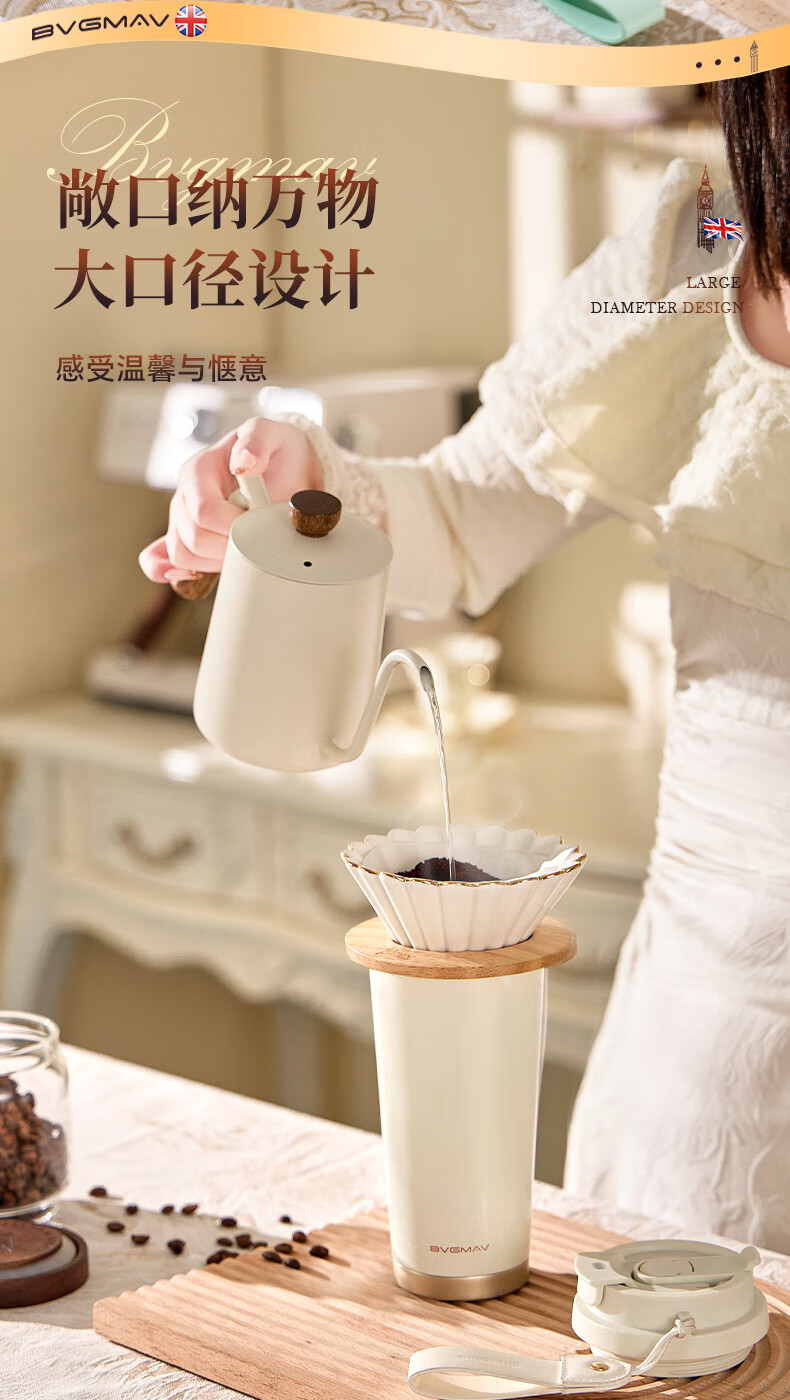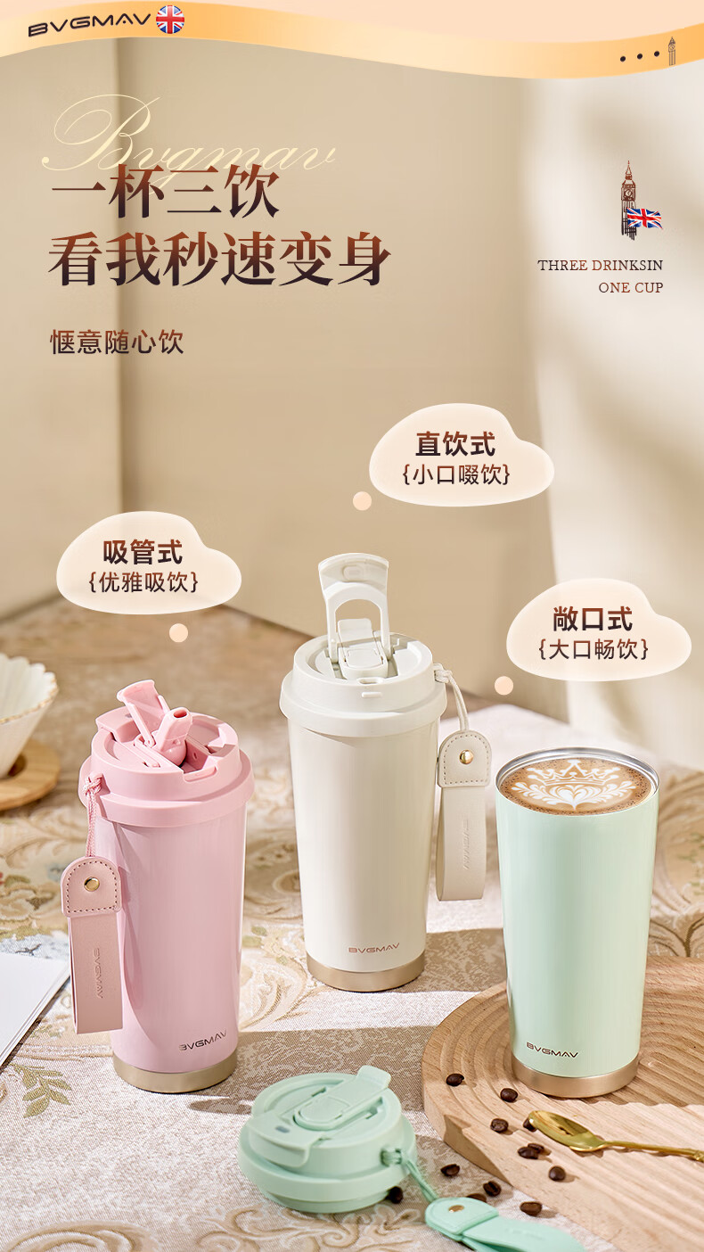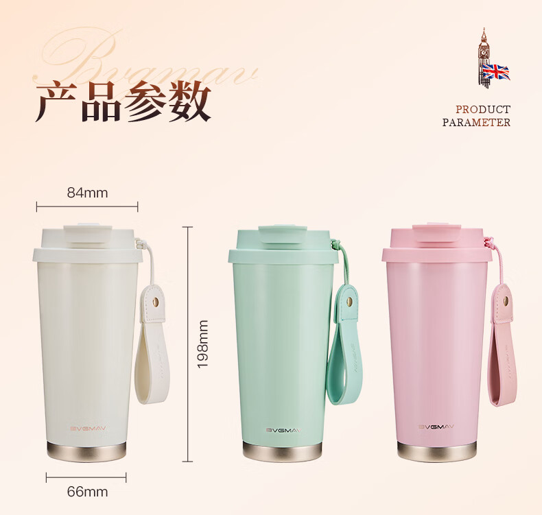宝威玛(BVGMAV)咖啡杯 便携高颜值316不锈钢保温杯 高档大容量可乐杯 办公室水杯 清雅绿520ml