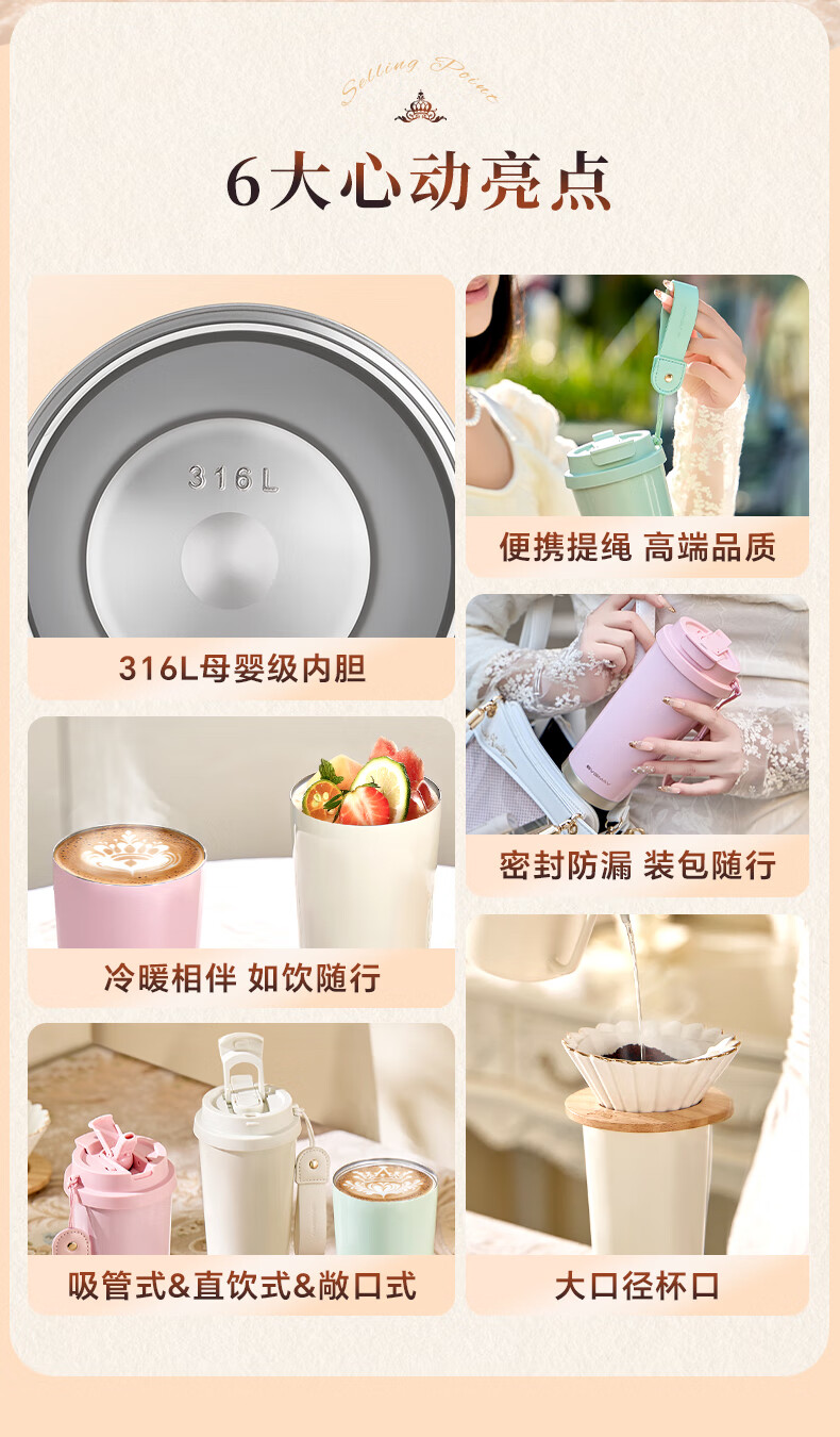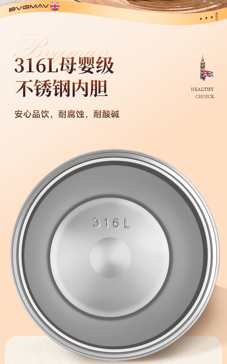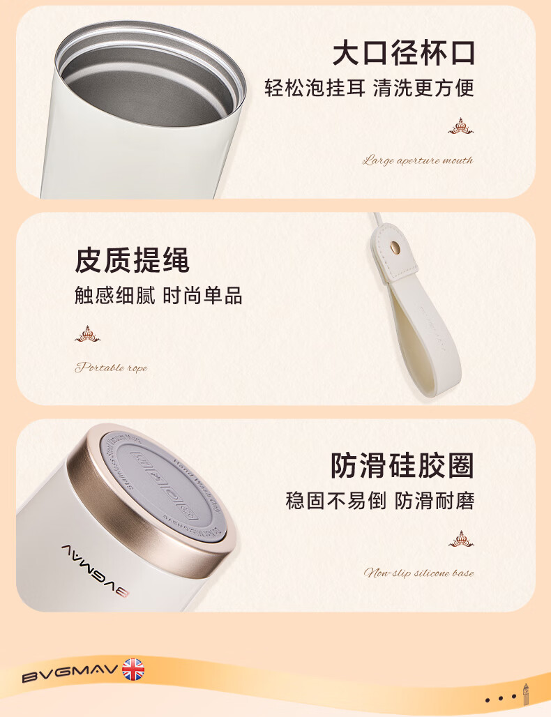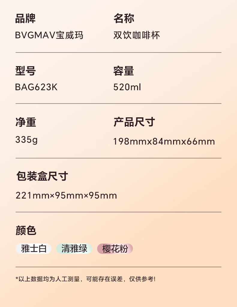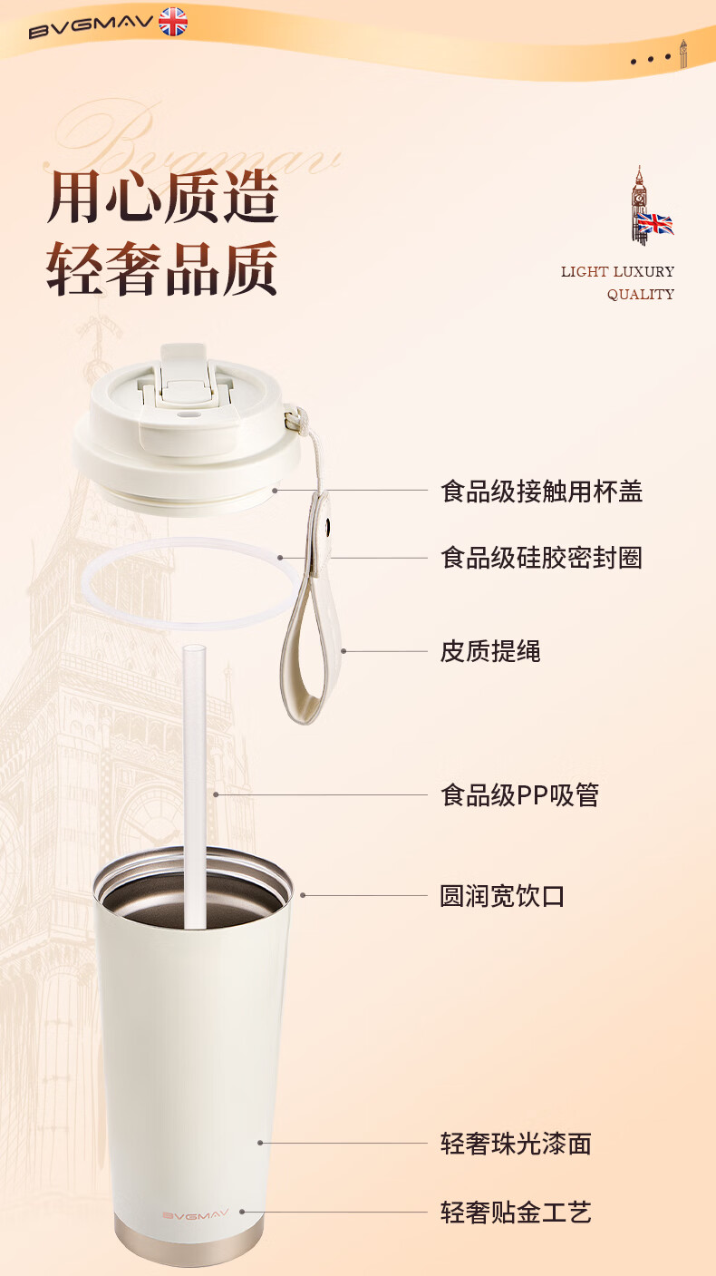 宝威玛(BVGMAV)咖啡杯 便携高颜值316不锈钢保温杯 高档大容量可乐杯 办公室水杯 清雅绿520ml