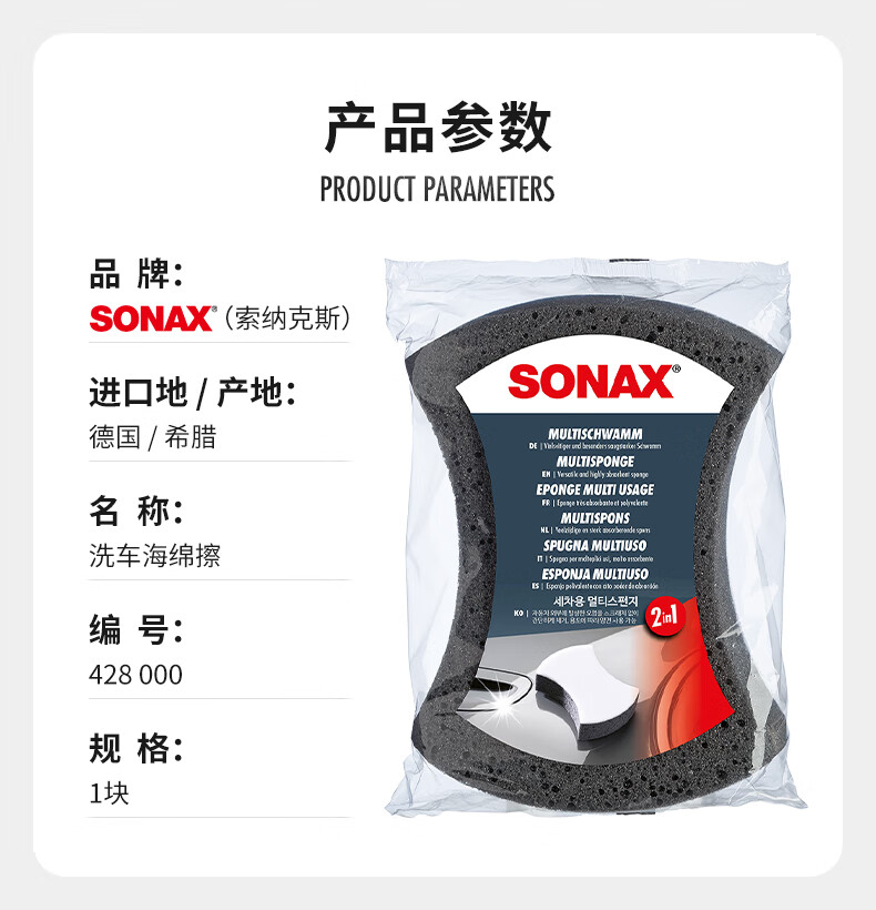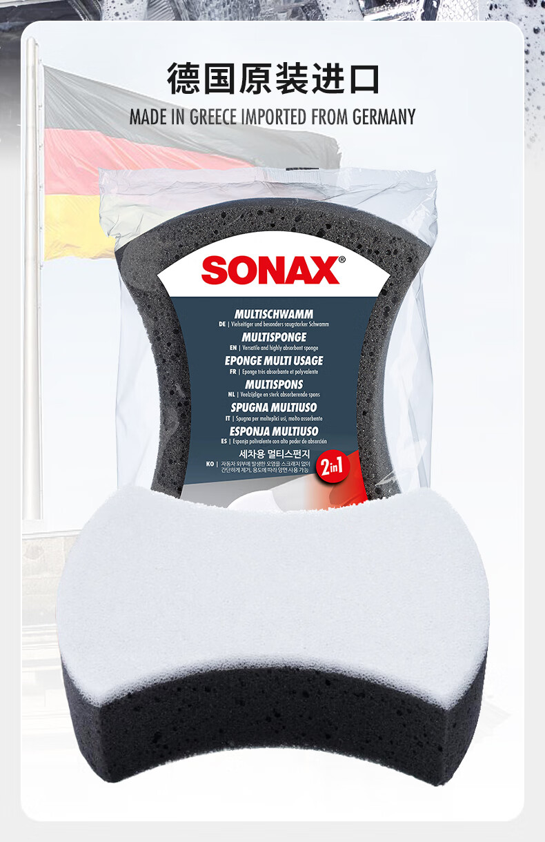 索纳克斯(SONAX)德国进口洗车专用海绵耐用高韧度擦车不伤车海绵吸水泡沫洗车工具 【德国进口】洗车专用海绵