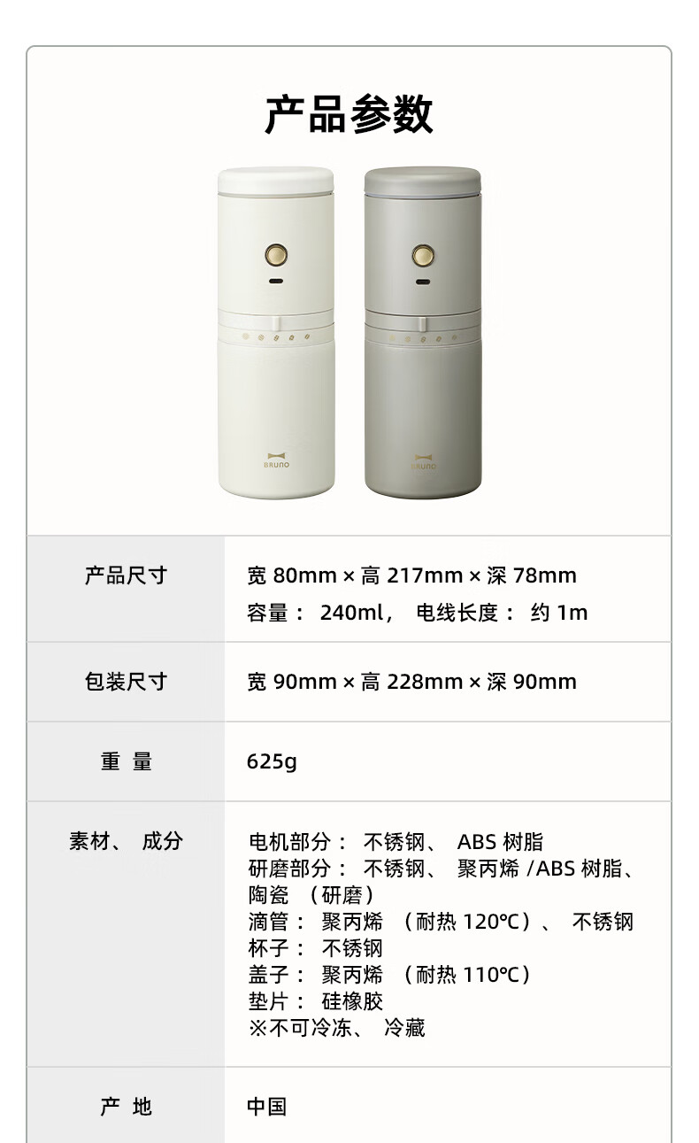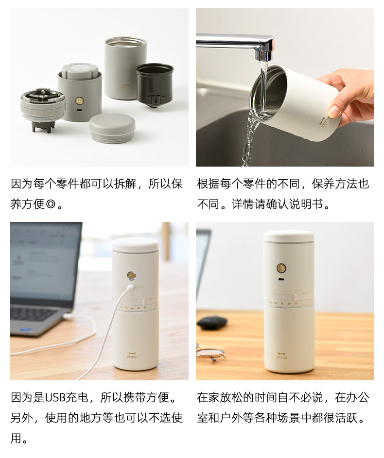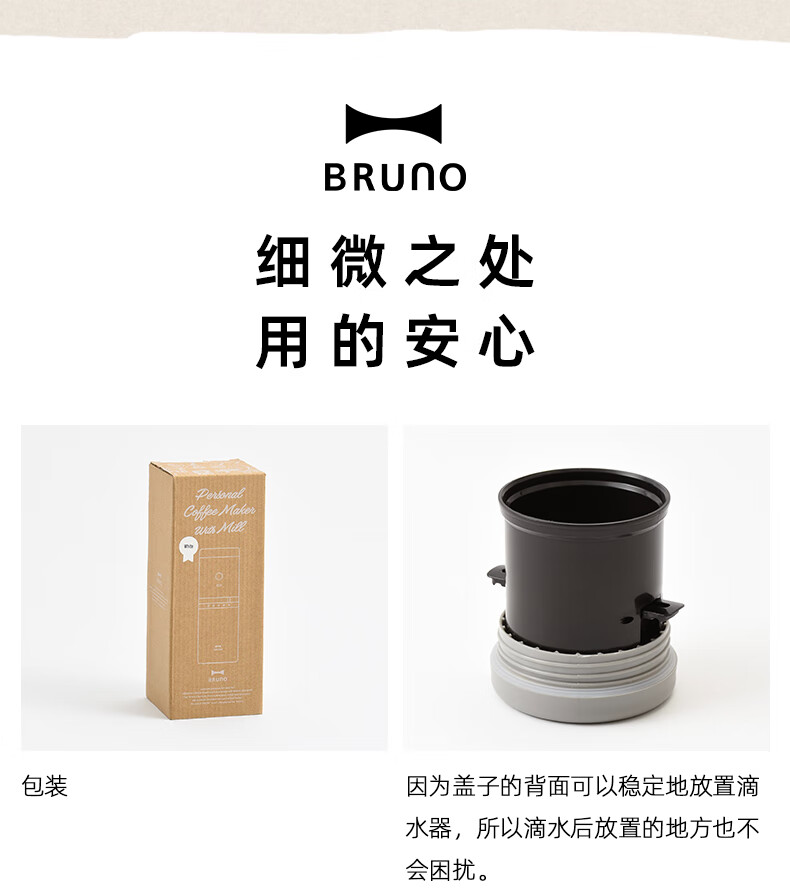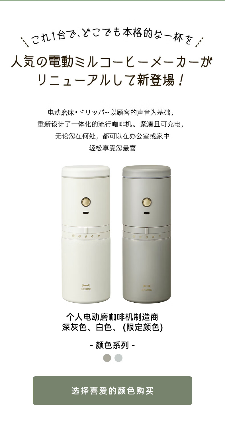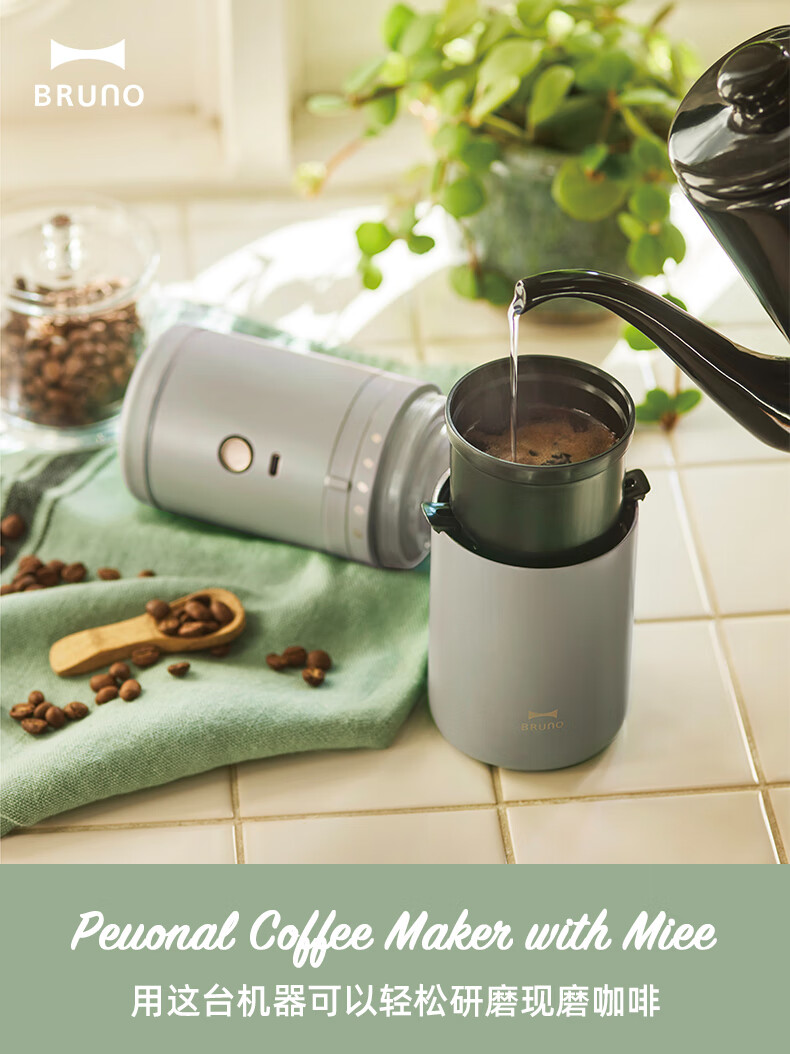 BRUNO二代便携式咖啡机家用小型电动咖啡豆研磨豆机办公室户外旅行迷你美式手动滴滤咖啡机 白色