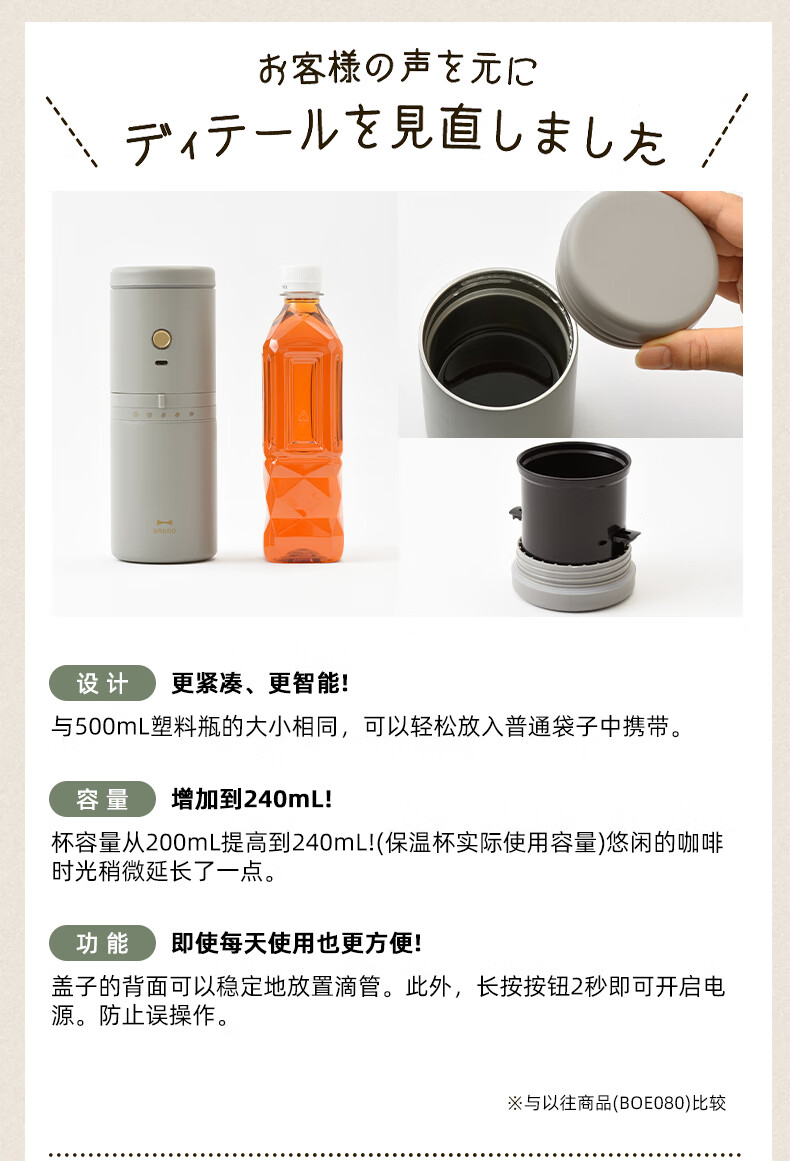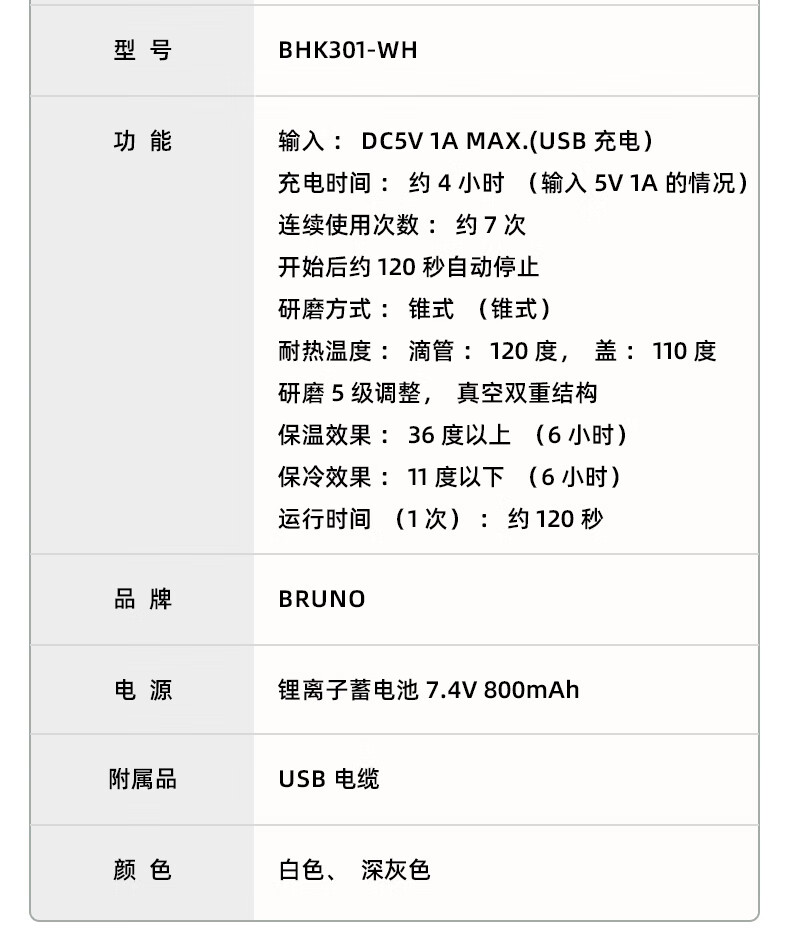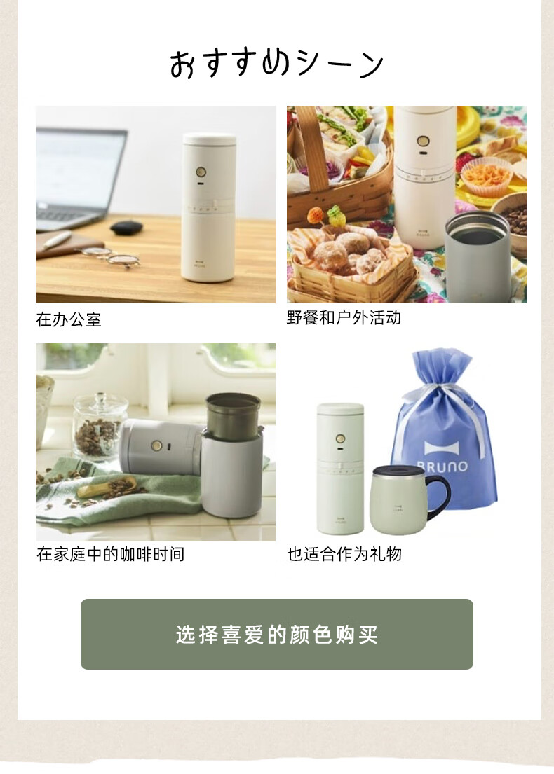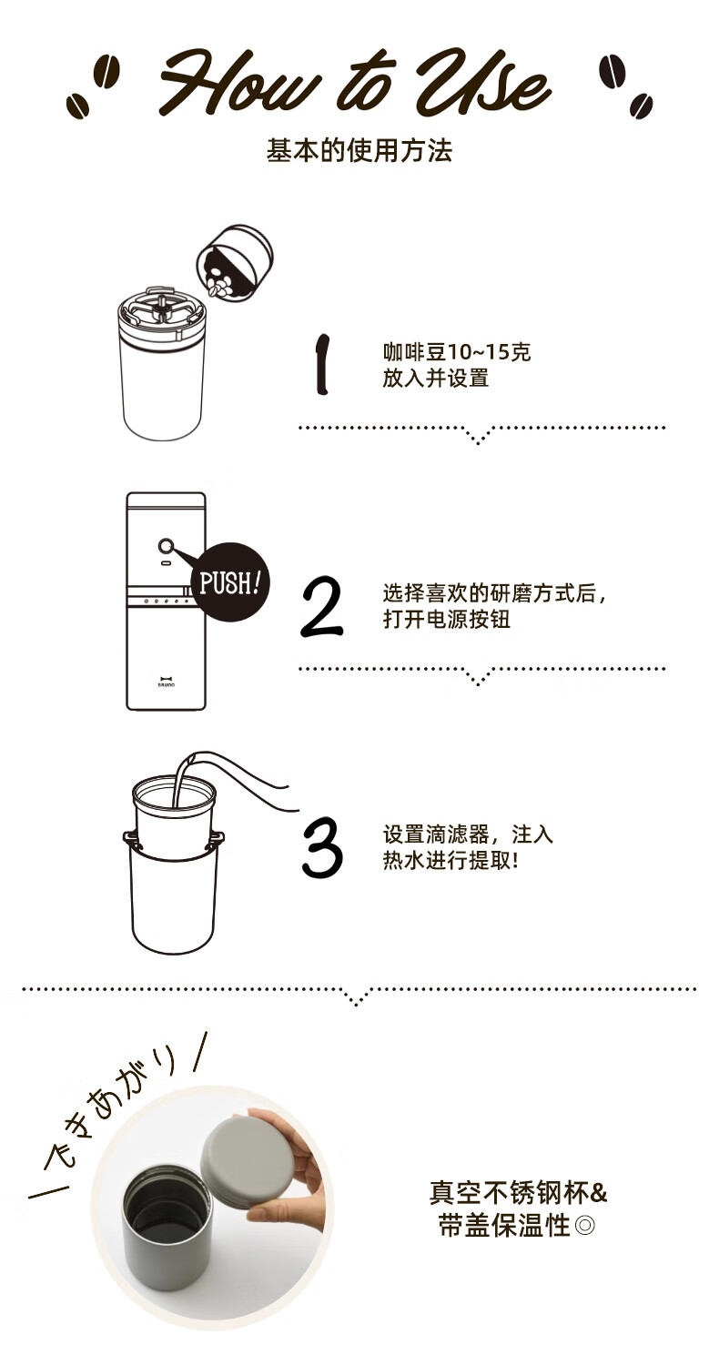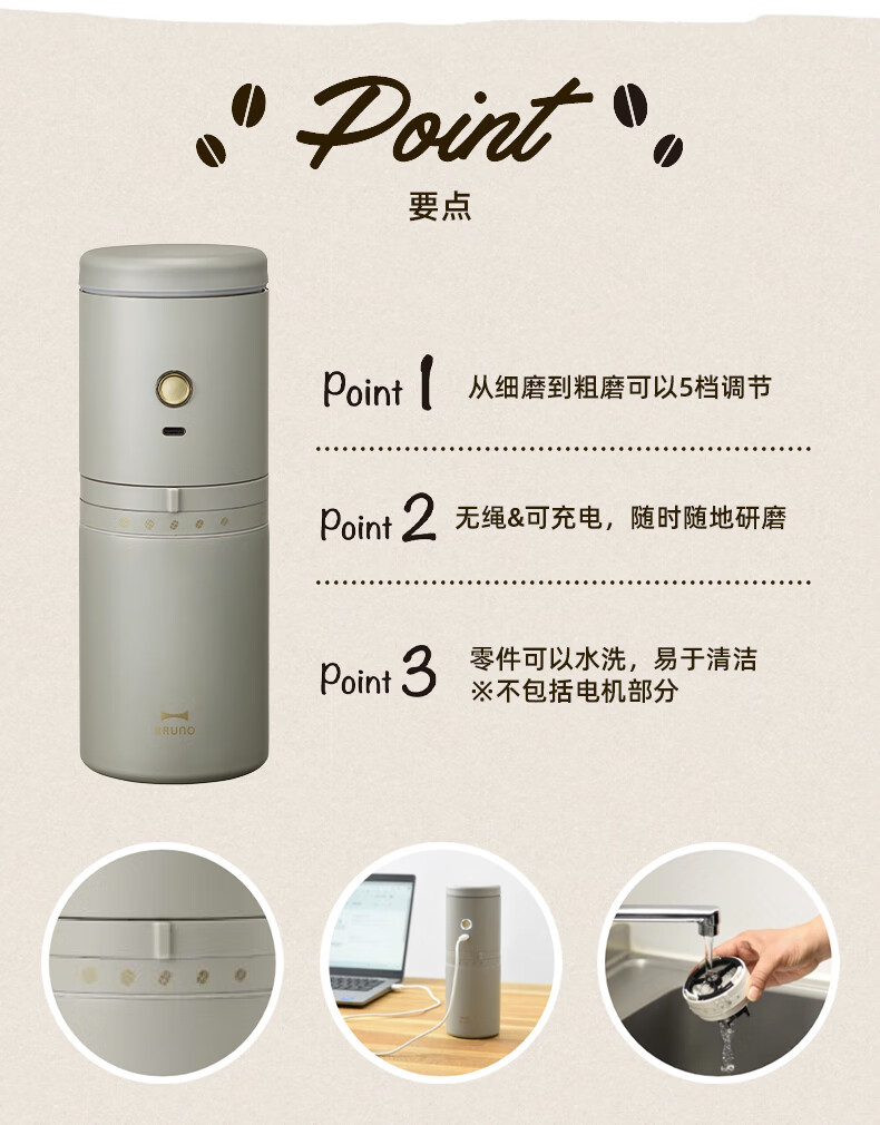 BRUNO二代便携式咖啡机家用小型电动咖啡豆研磨豆机办公室户外旅行迷你美式手动滴滤咖啡机 白色