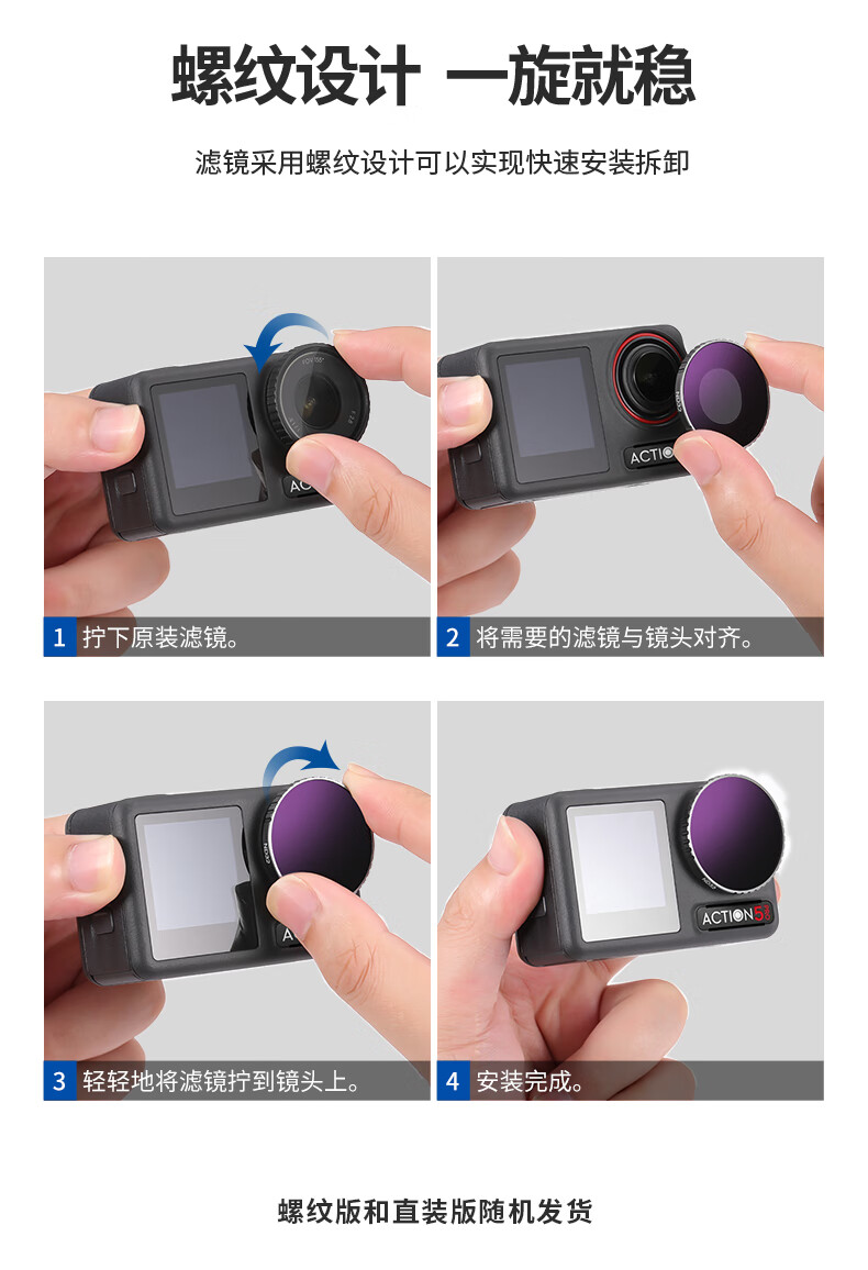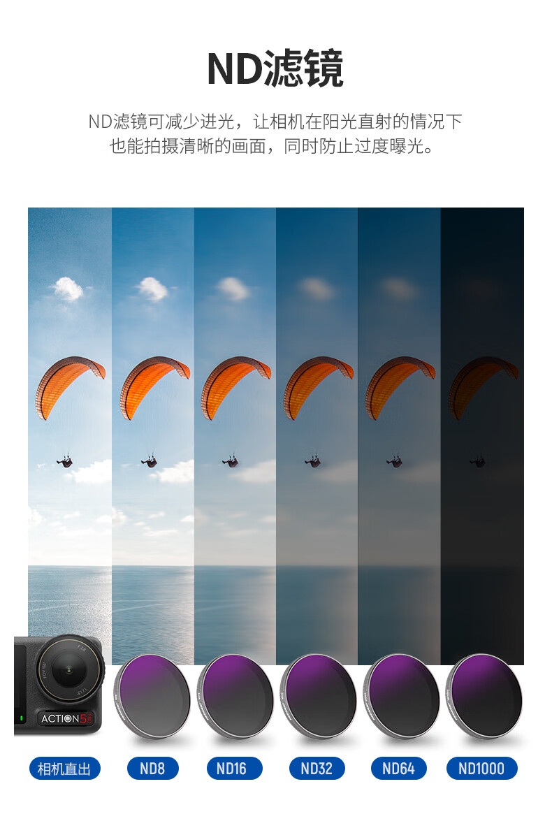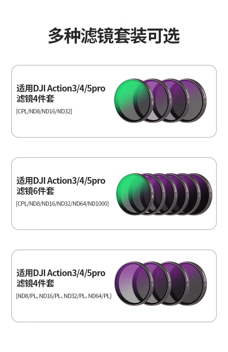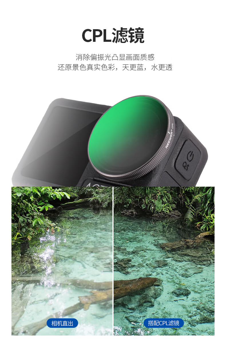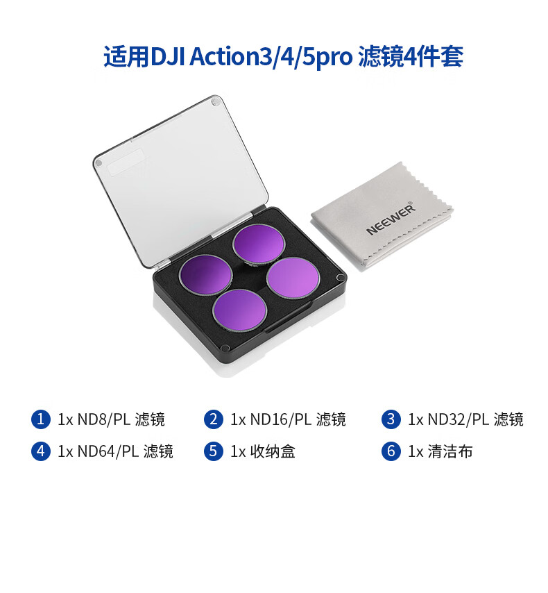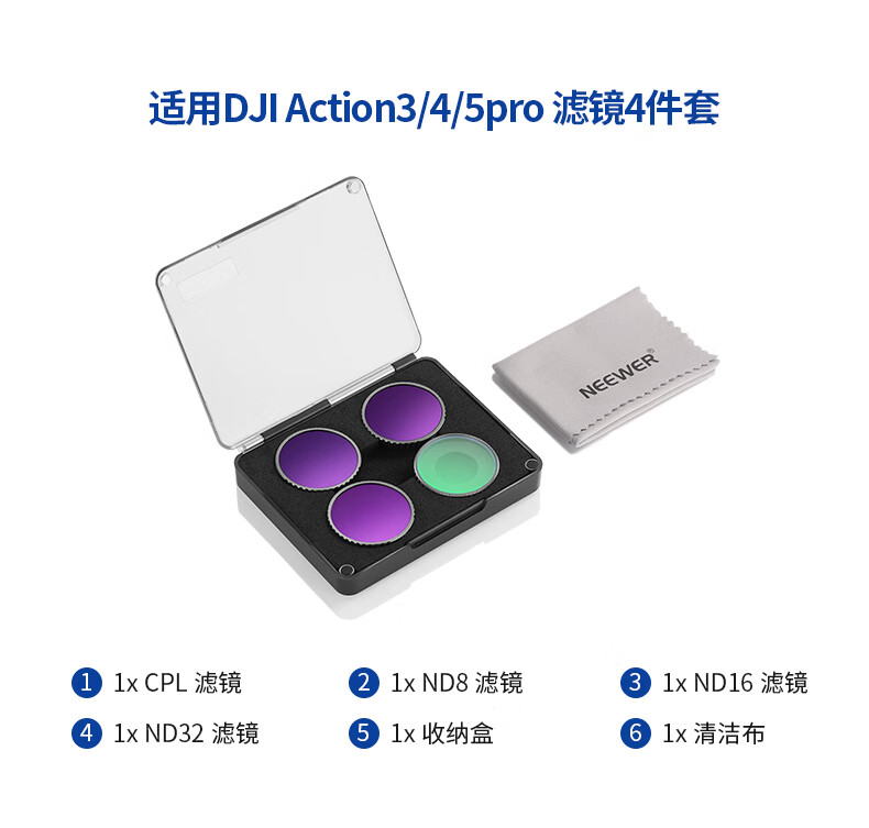 纽尔(NEEWER)适用DJI大疆Action4/5 pro运动相机滤镜6件套CPL/ND8/ND16/ND32/ND64/ND1000减光镜偏振镜ND镜配件