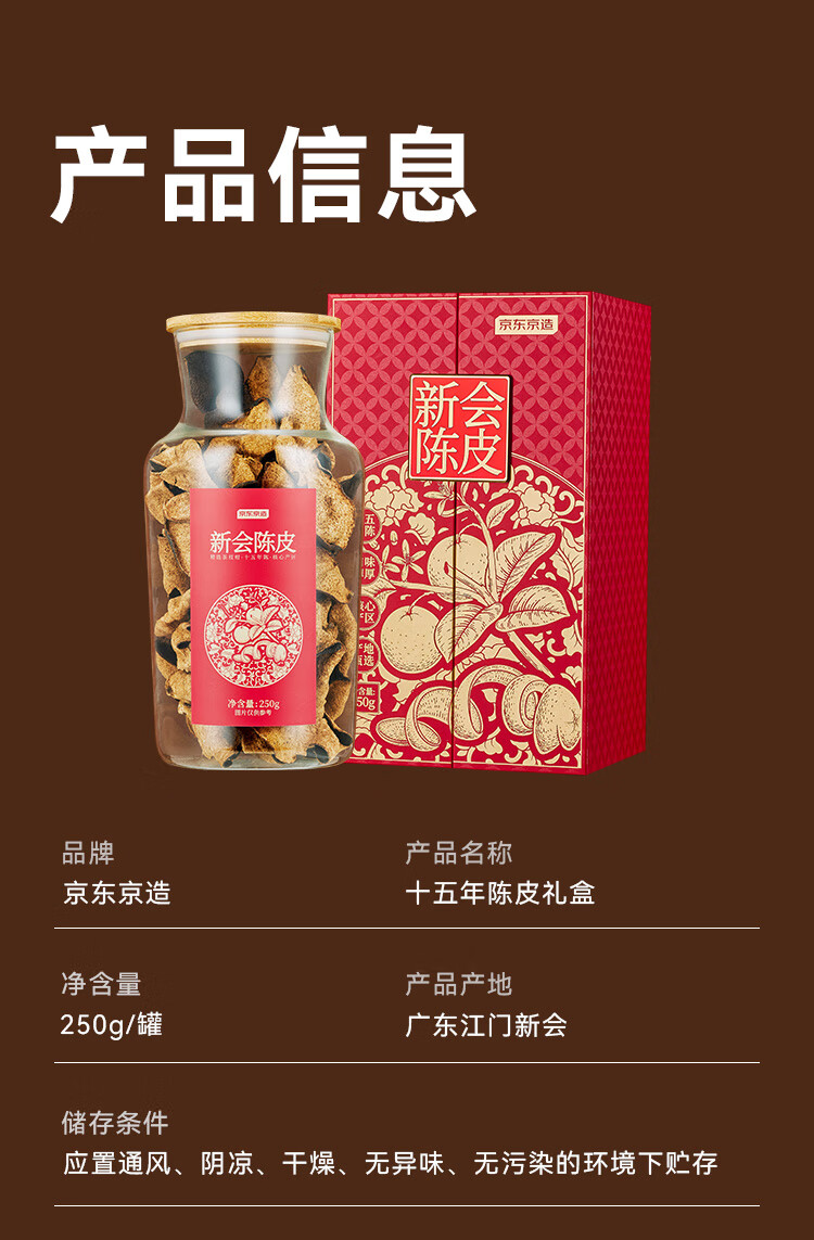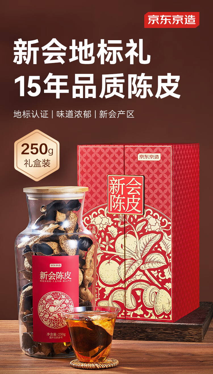 京东京造十五年新会陈皮250g 中秋礼盒正宗新会陈皮大红皮送长辈补品