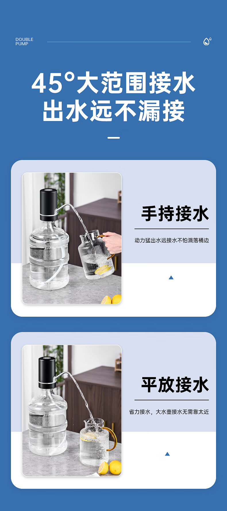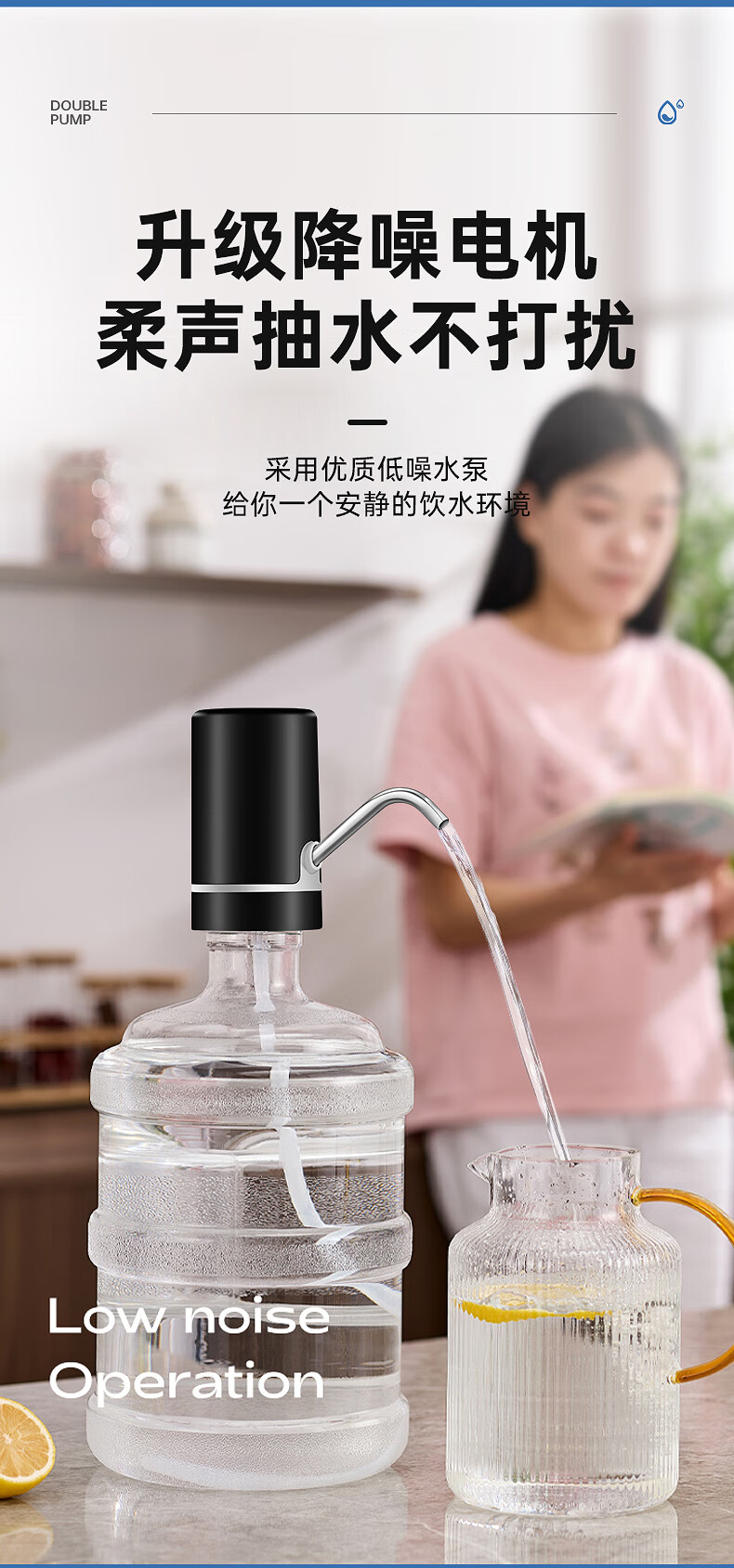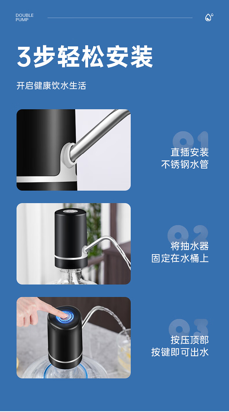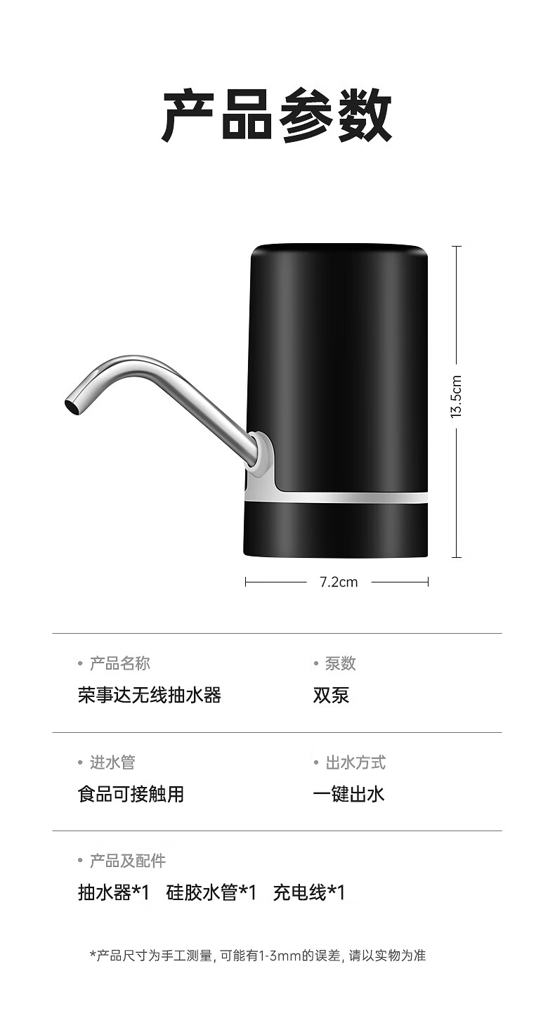 荣事达 桶装水抽水器吸水泵饮水机泵纯净水桶取水器上水器大桶水压水器 双泵黑【双倍出水+几秒一杯】