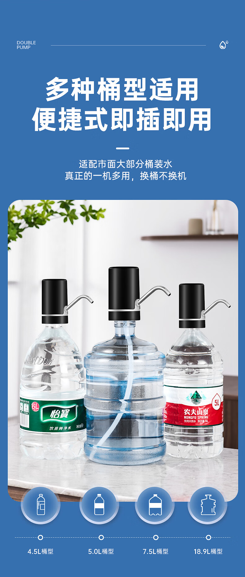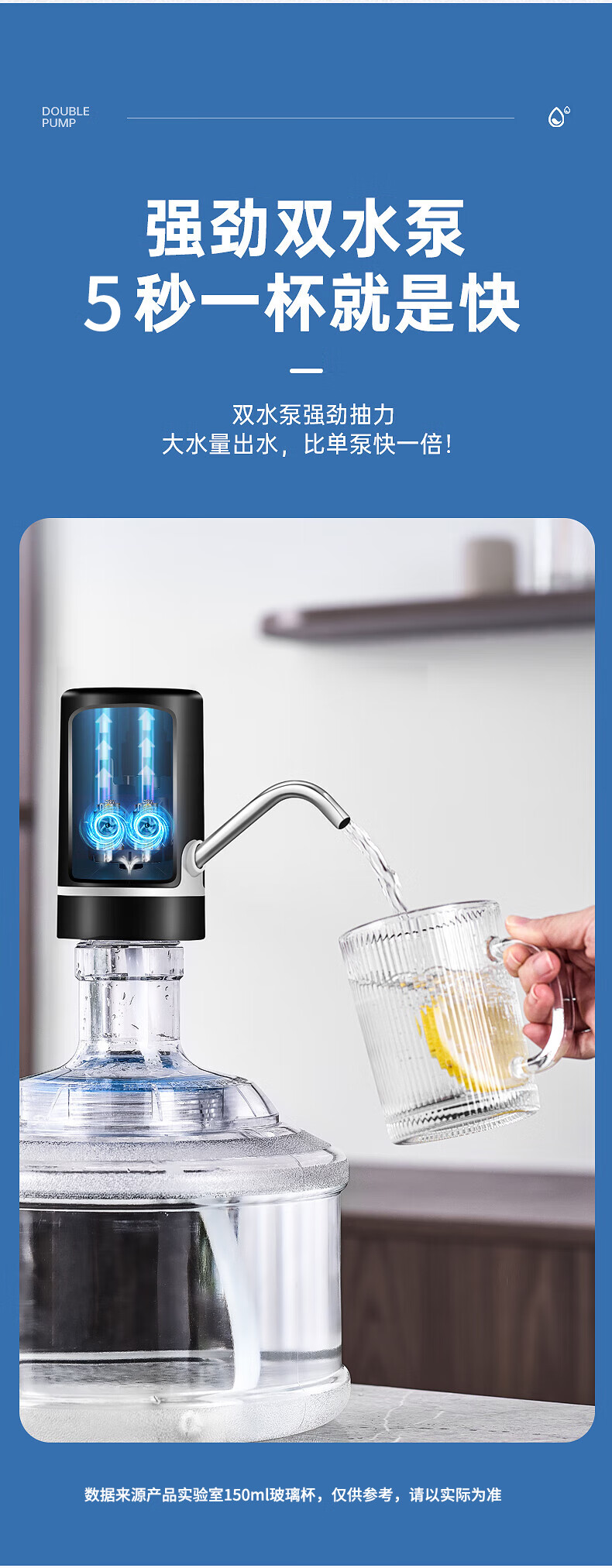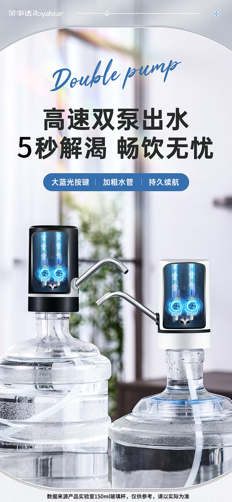 荣事达 桶装水抽水器吸水泵饮水机泵纯净水桶取水器上水器大桶水压水器 双泵黑【双倍出水+几秒一杯】