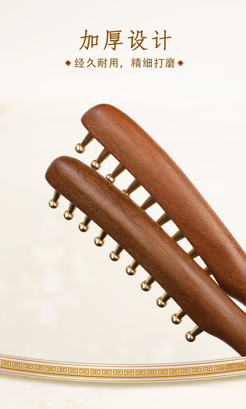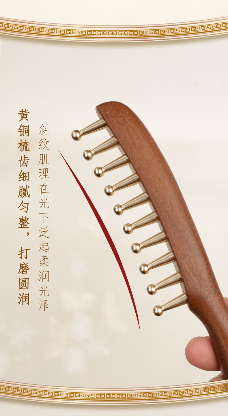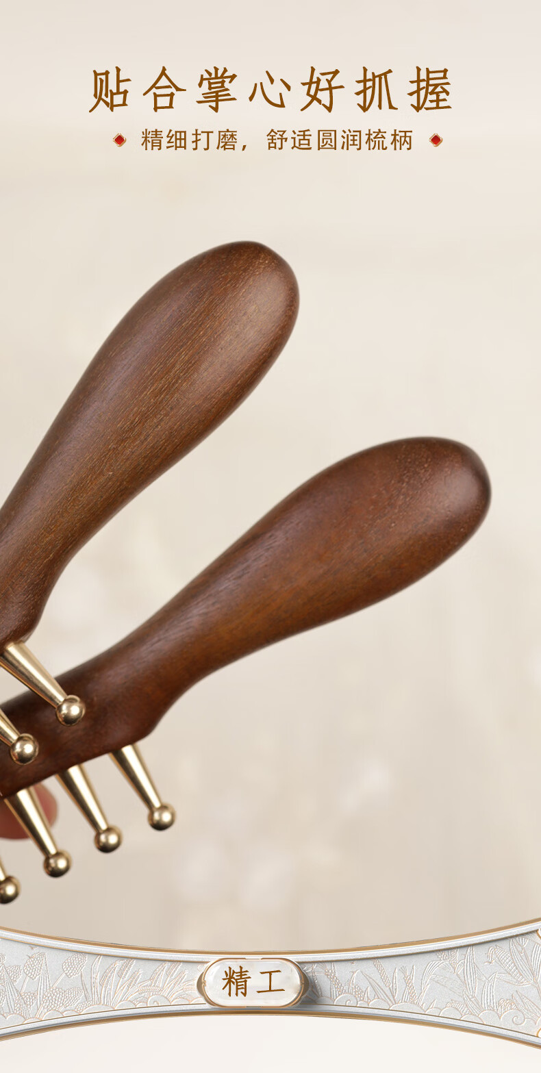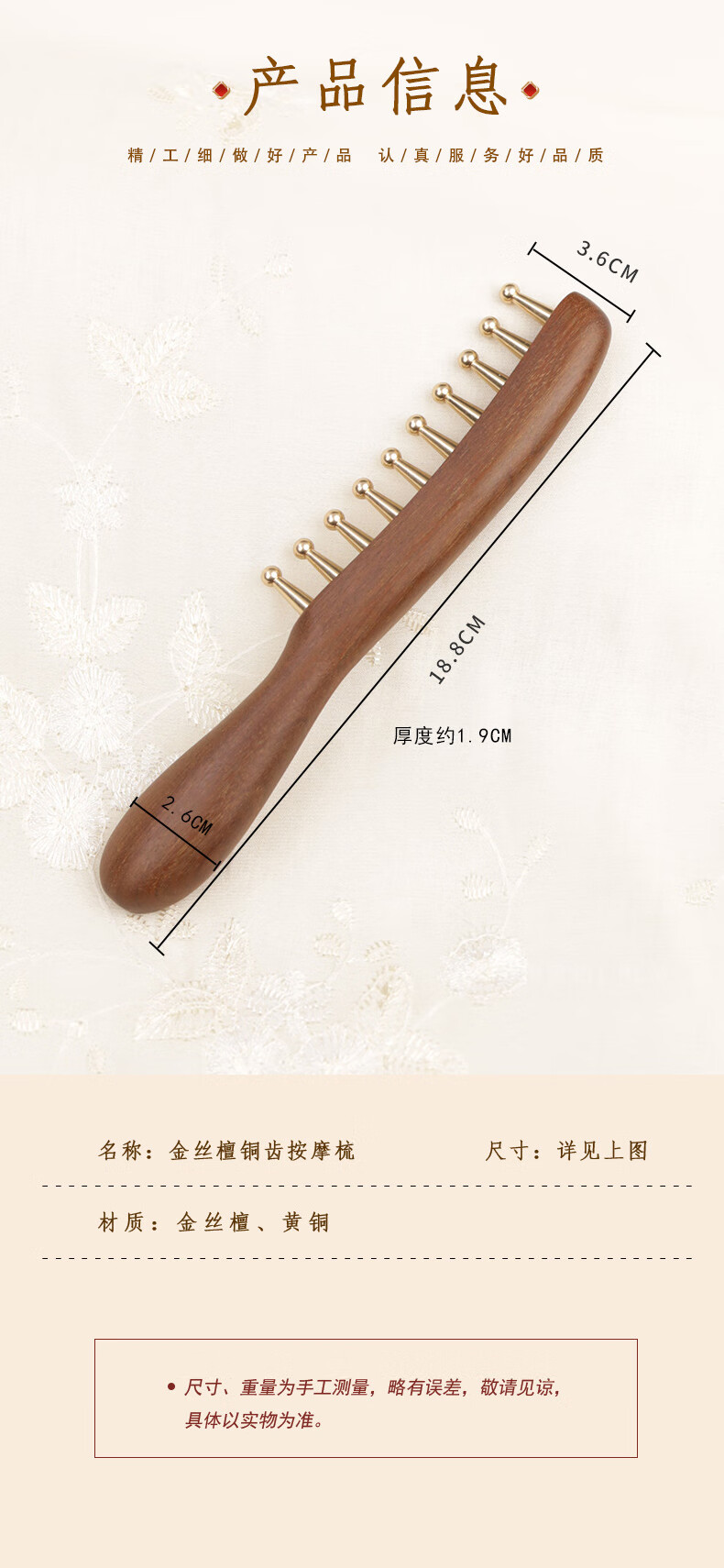 AILUKI日本黄铜头部按摩梳子经络疏通拨筋棒大齿梳子头皮头疗养生刮痧宽 檀木黄铜经络梳-一把