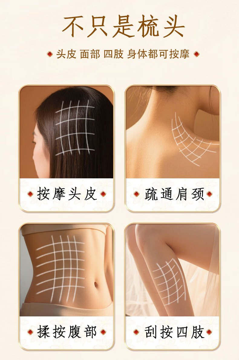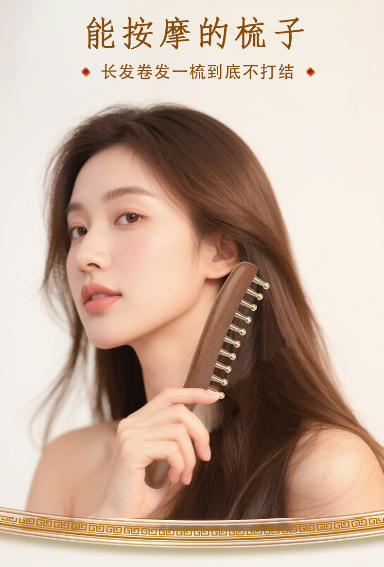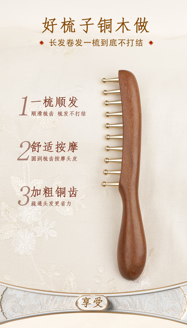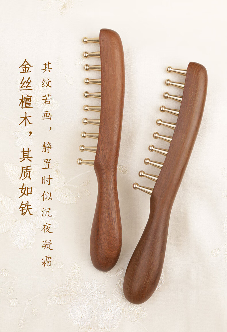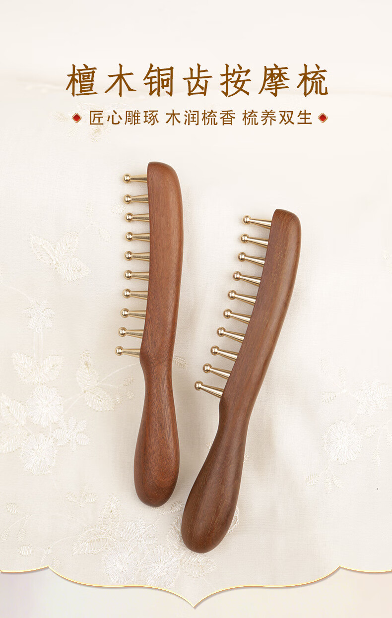 AILUKI日本黄铜头部按摩梳子经络疏通拨筋棒大齿梳子头皮头疗养生刮痧宽 檀木黄铜经络梳-一把