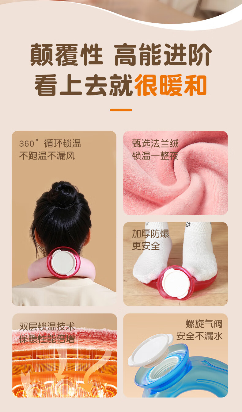 AILUKI长条热水袋注水被窝专用大号灌水颈椎热敷冬天防爆加厚暖手脚水袋 加长款2500ML【小熊咖色】-送防兔绒布套/长久 1个装