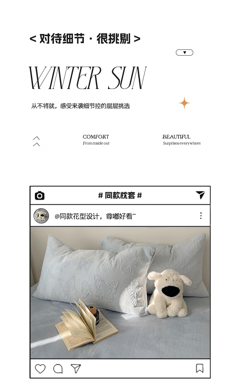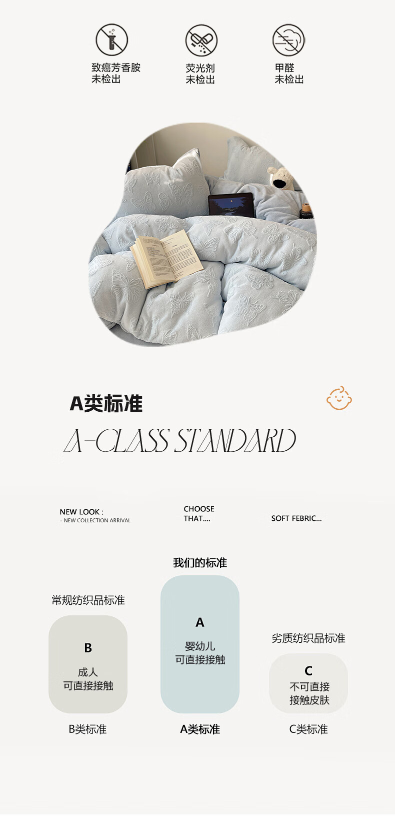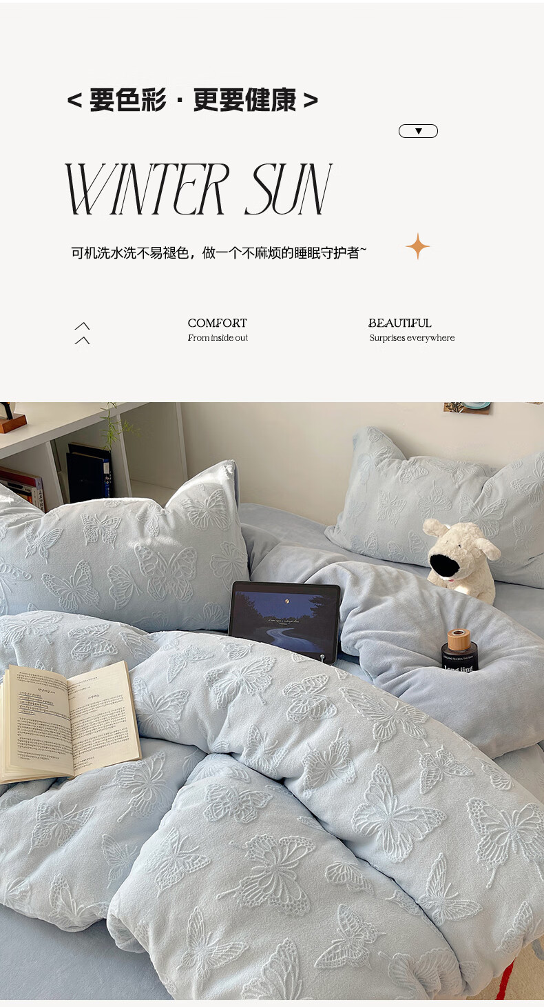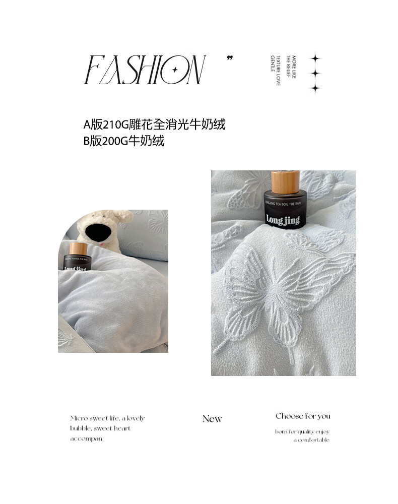 苏萱ins秋冬雕花牛奶绒四件套加厚珊瑚绒被套双面绒床单床笠床上用品4 雕花绒-蝴蝶蓝 1.8m 床单款 四件套-被套200x230cm