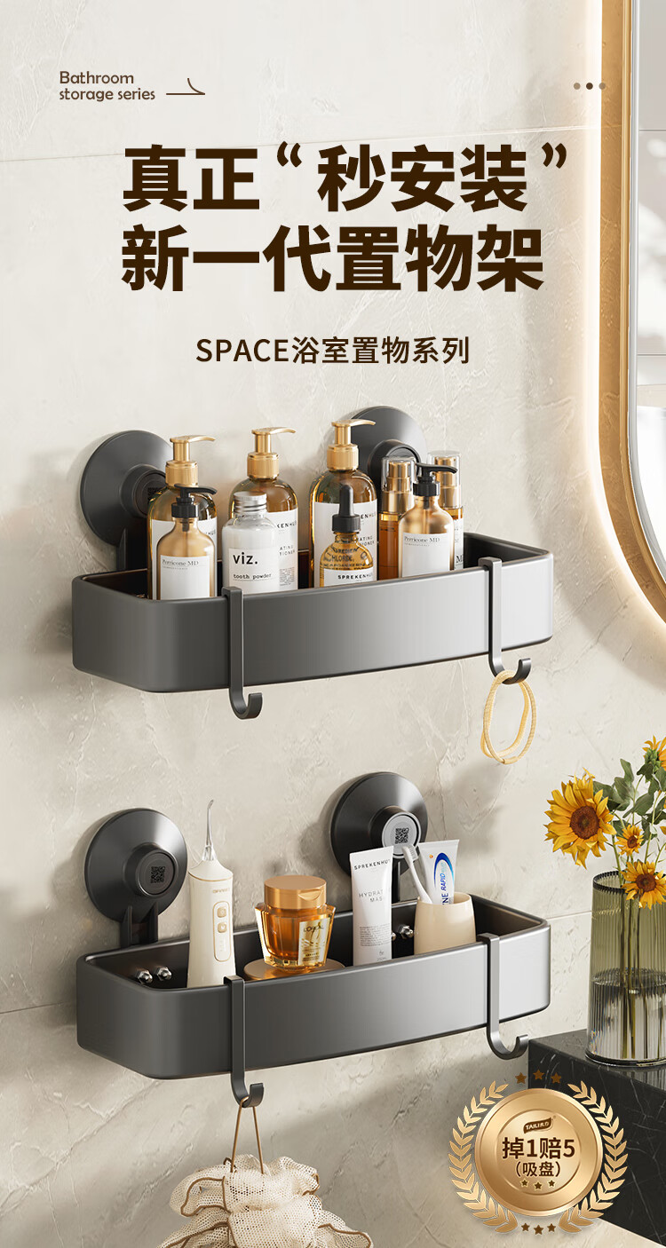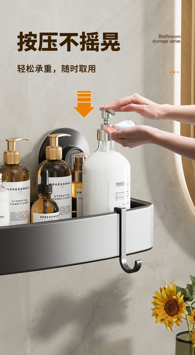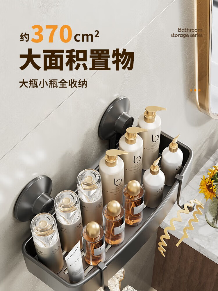 WCZ德国吸盘式浴室置物架卫生间厕所洗漱台洗手台壁挂墙上收纳沐浴露 枪灰40公分带钩带杆-隐藏吸盘置物架