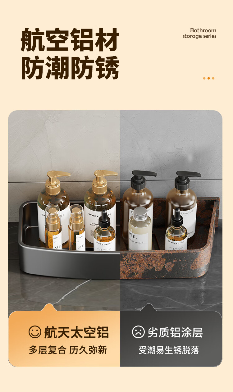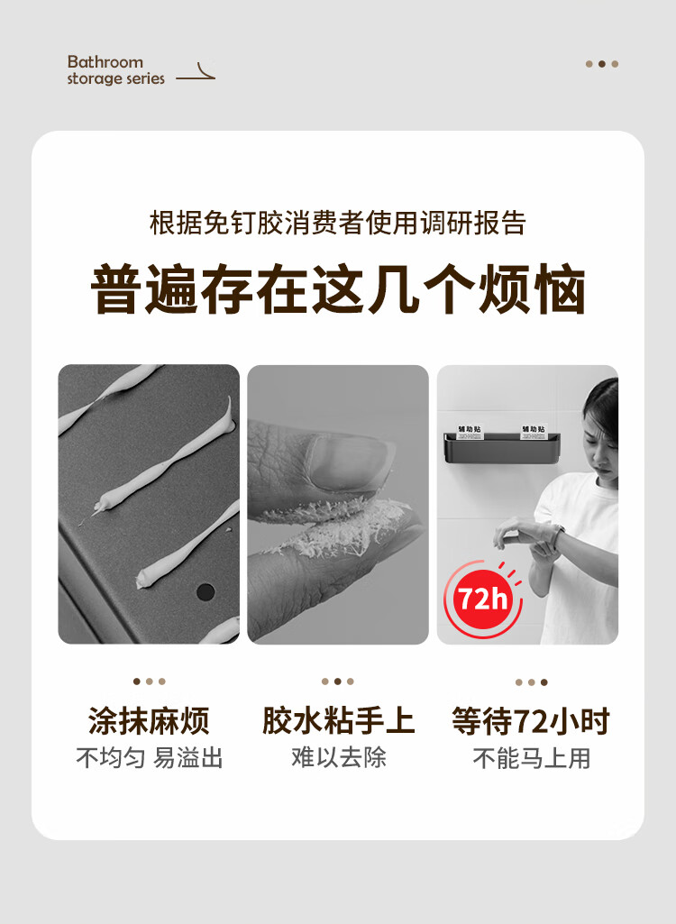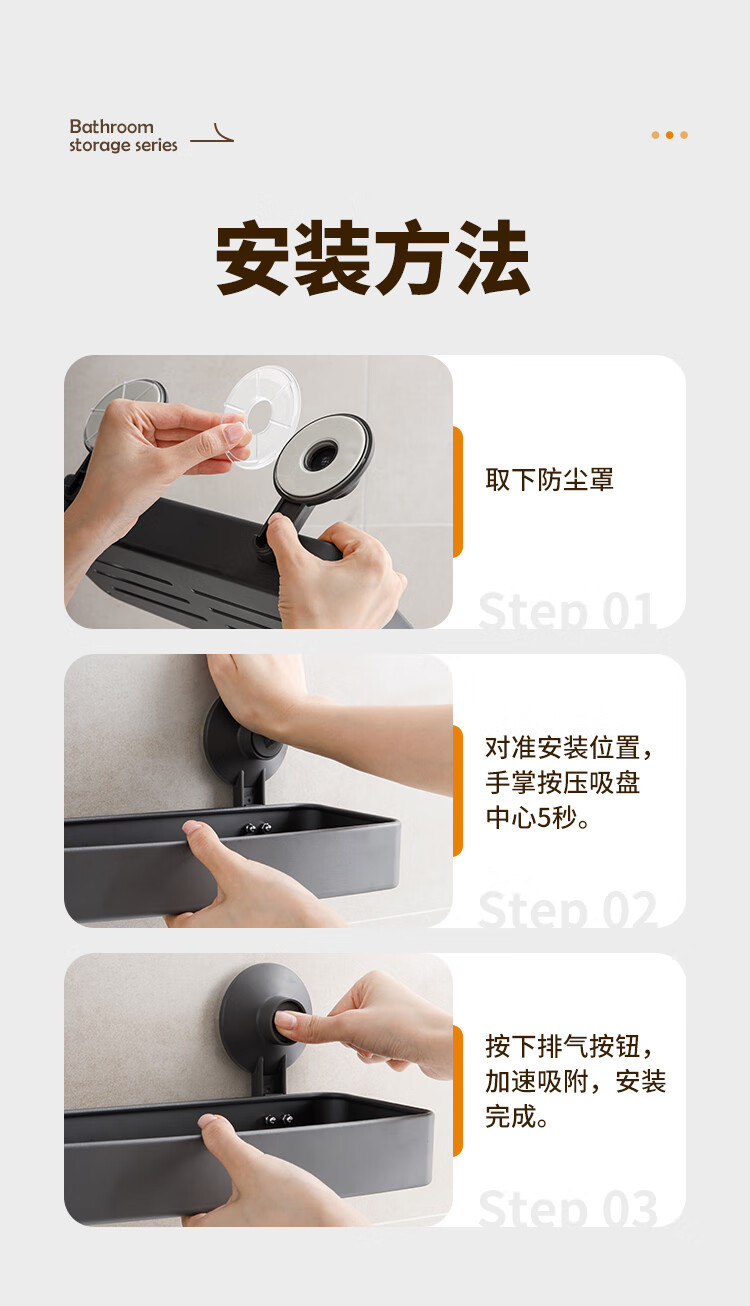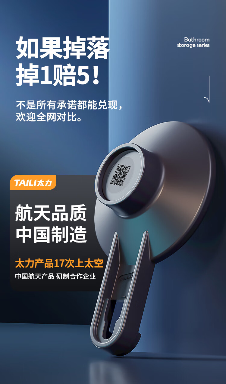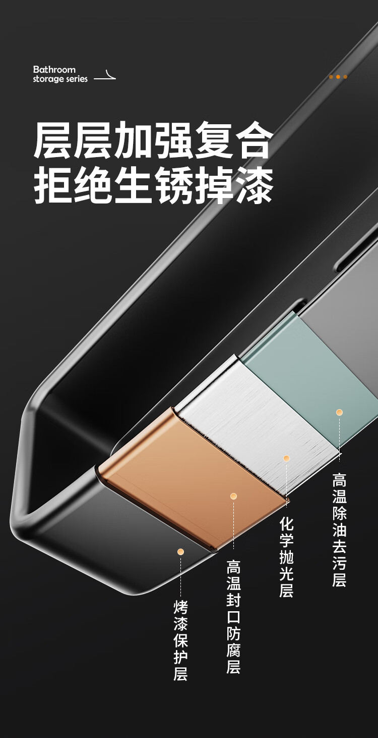 太力吸盘挂式卫生间置物架免打孔浴室墙上厕所马桶洗漱台厨房壁挂架 方形置物架【枪灰色1个装】