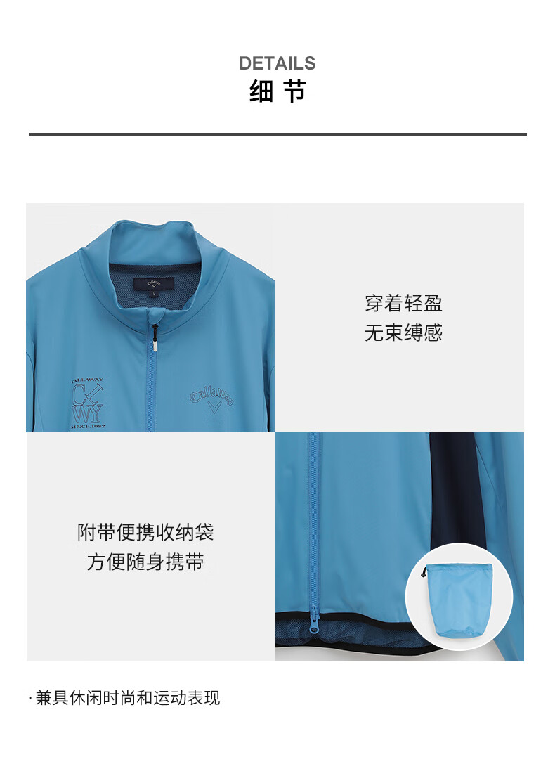 卡拉威(Callaway)高尔夫服装男装外套25秋冬新品轻盈运动防风保暖立领高尔夫风衣 黑色 M