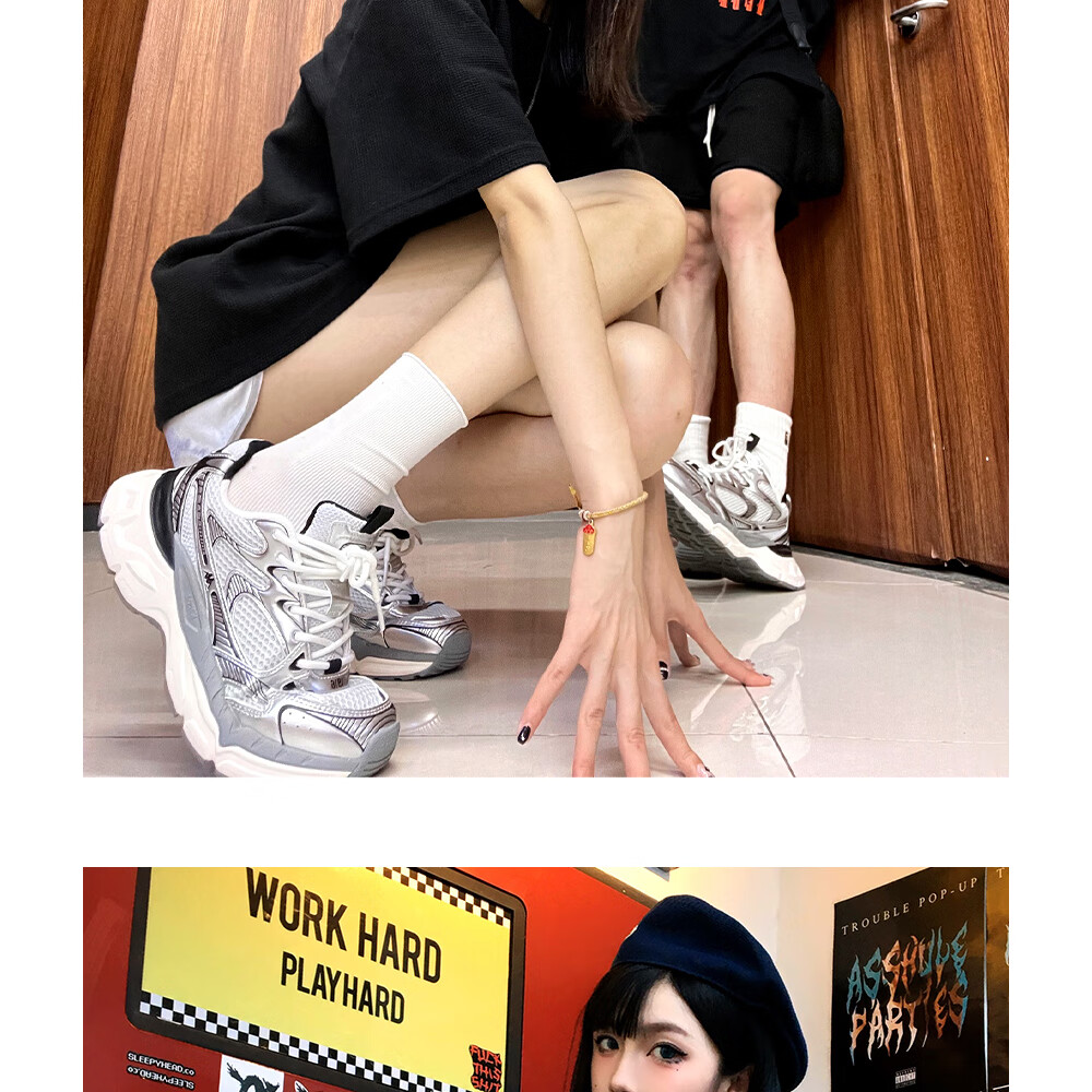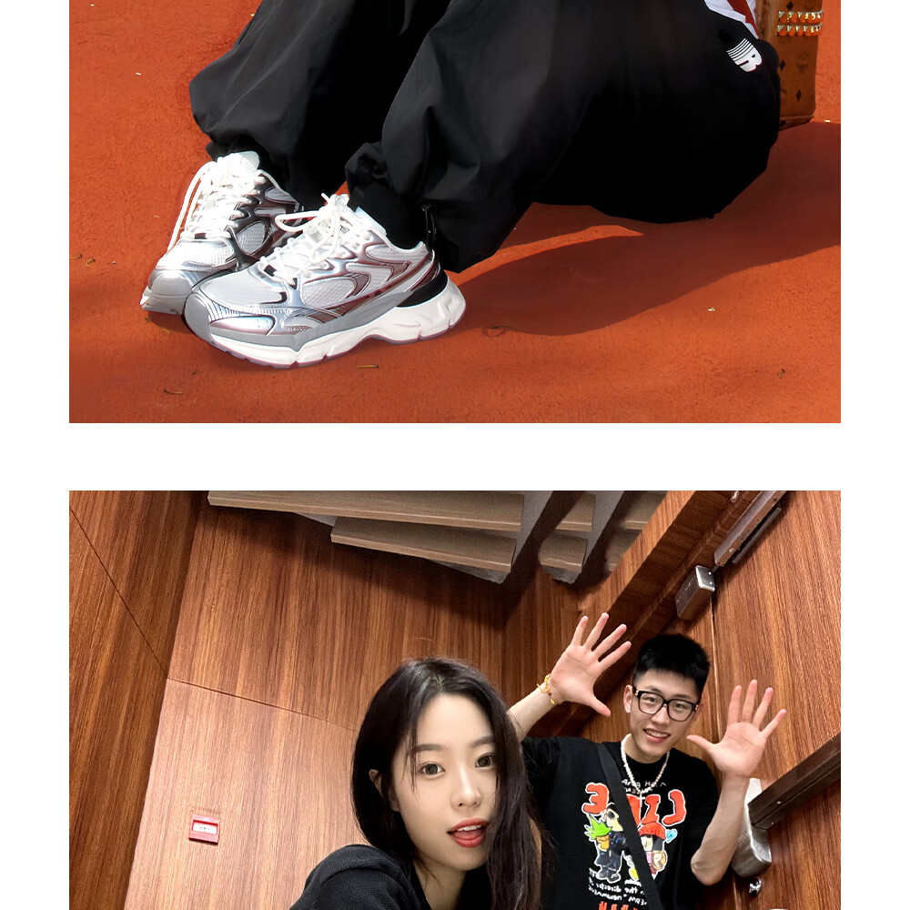 他她厚底休闲老爹鞋女鞋机能加绒休闲运动鞋GEA01CM4黑/白(绒里) 39