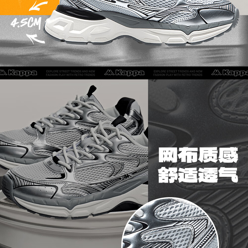卡帕(Kappa)男鞋秋季运动鞋子男款厚底增高老爹鞋休闲跑步鞋男 仙人掌棕 42