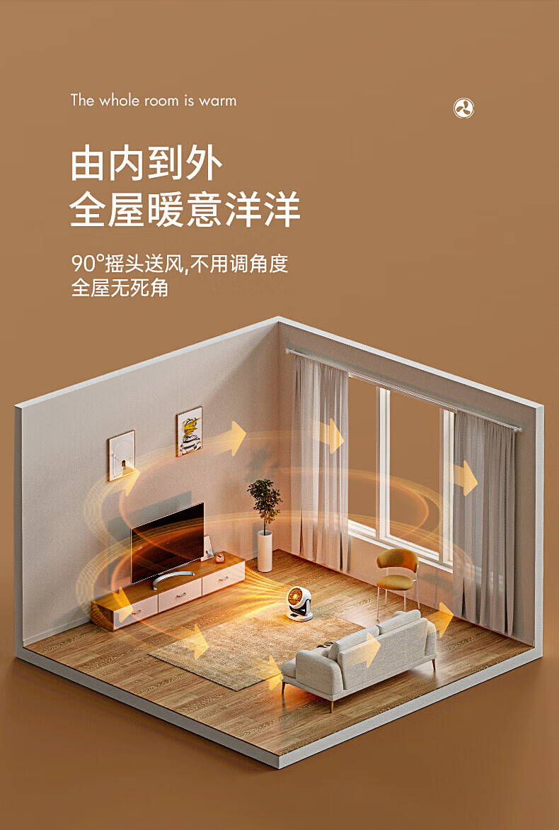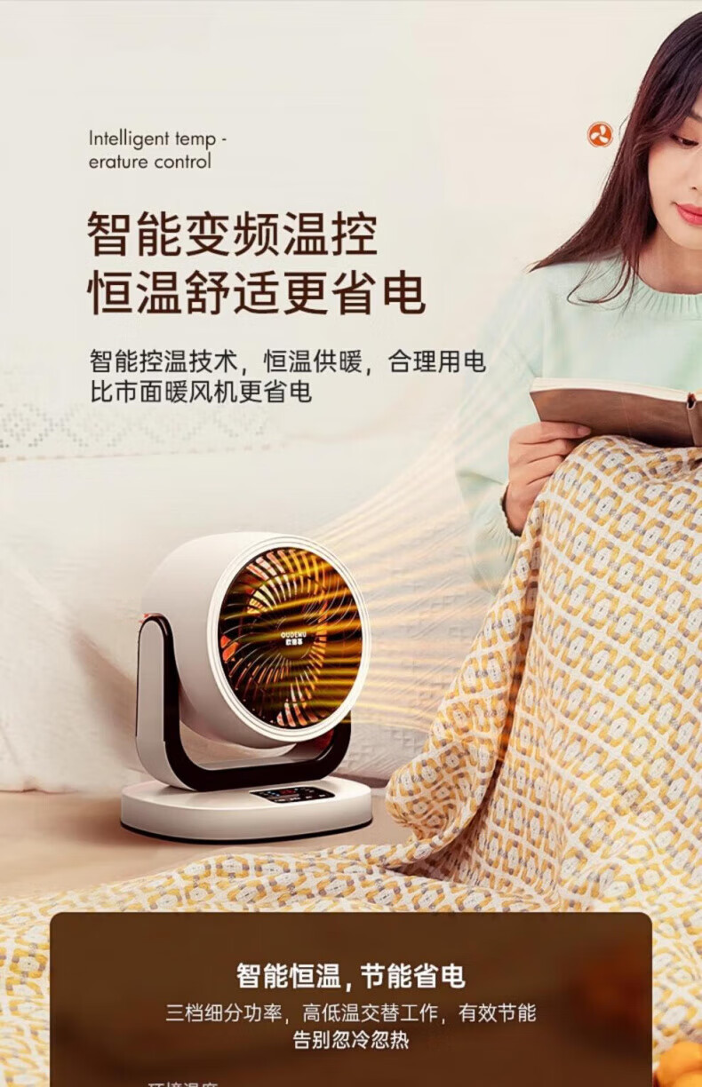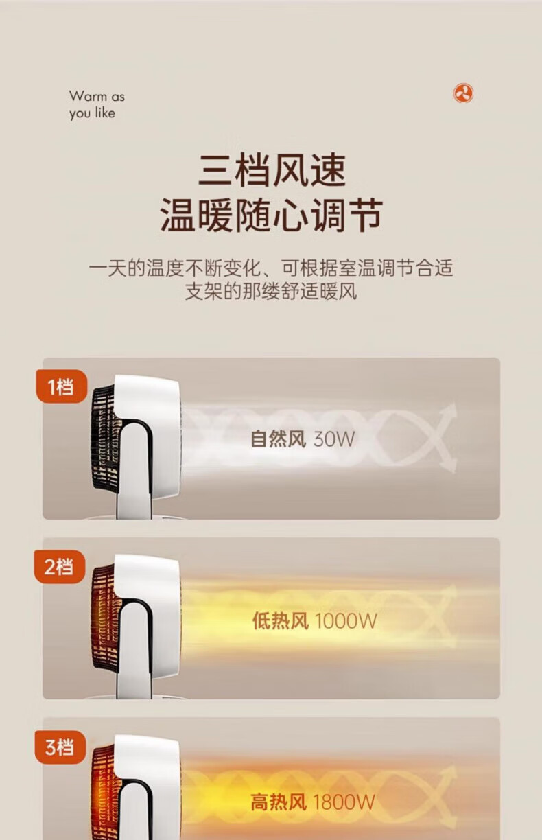 DEATKN【德国高端】暖风机电热取暖器小型电暖气石墨烯节能省电全屋 标准款1800W[3档调节+冷暖可用]