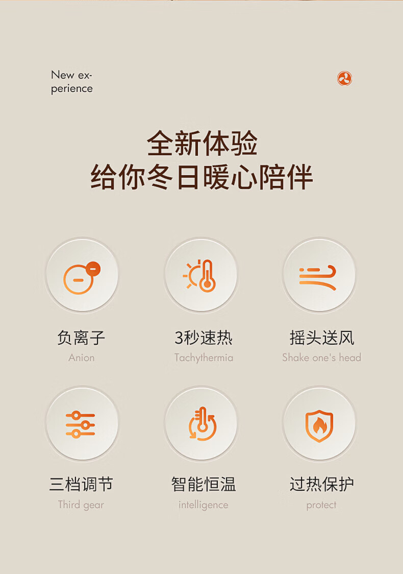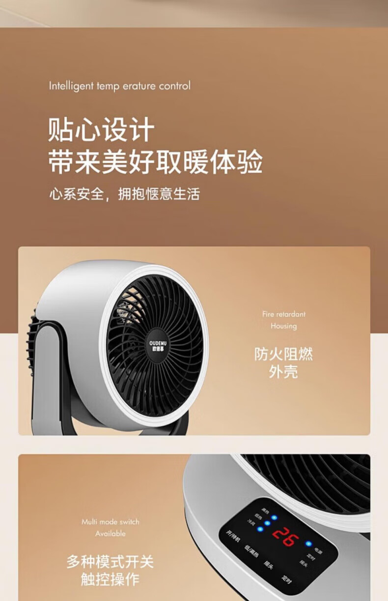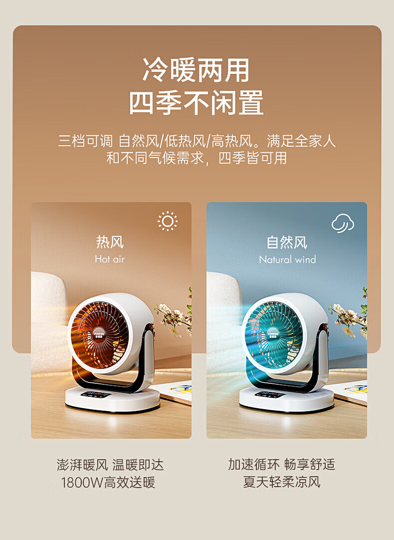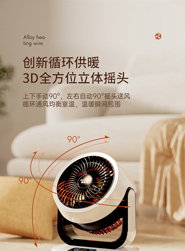 DEATKN【德国高端】暖风机电热取暖器小型电暖气石墨烯节能省电全屋 标准款1800W[3档调节+冷暖可用]
