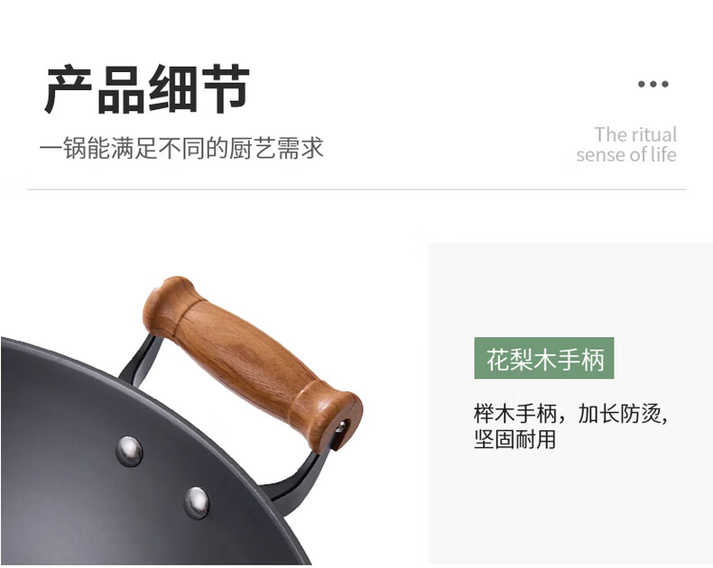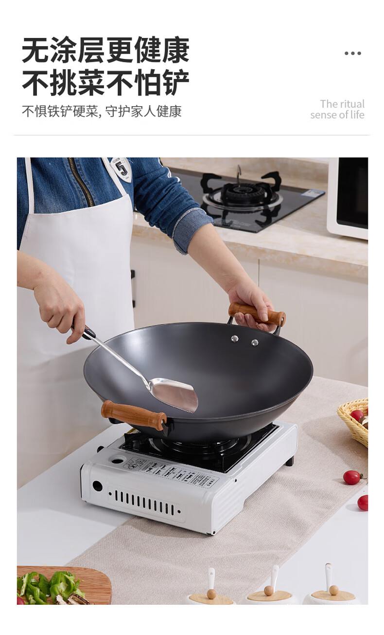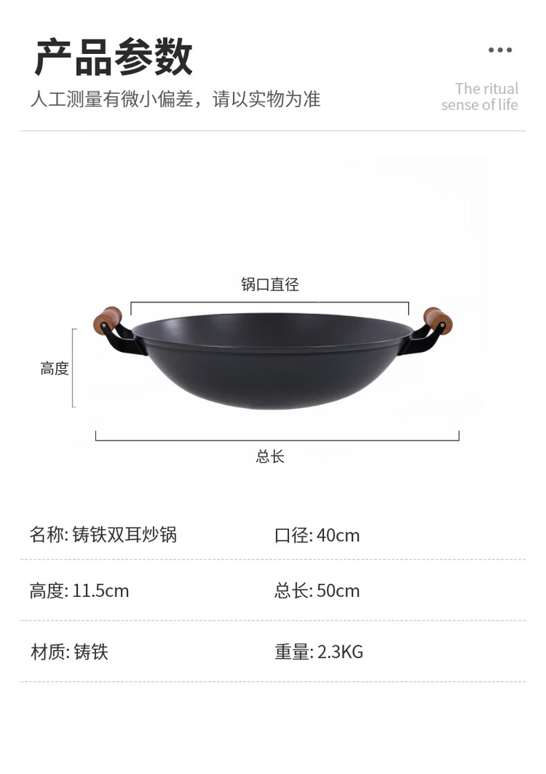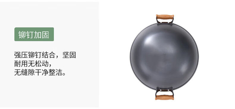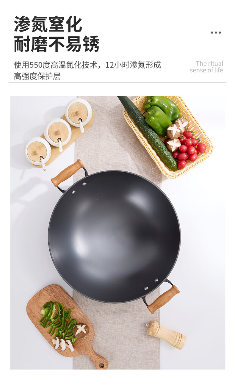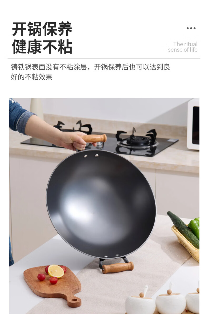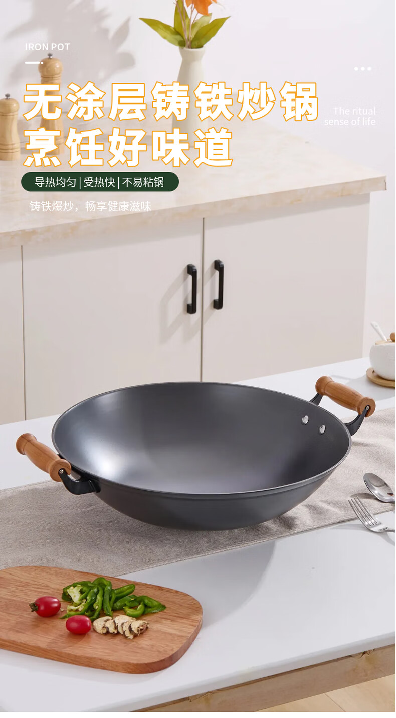 铁仕达(Telssida)双耳铁锅炒菜锅家用铸铁锅圆底炒锅无涂层老式生铁大号炒锅40cm
