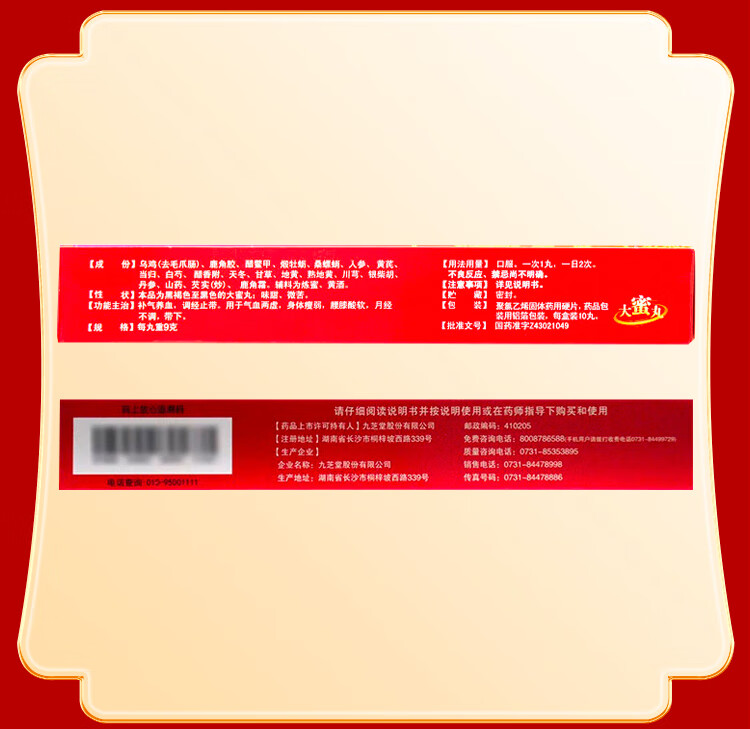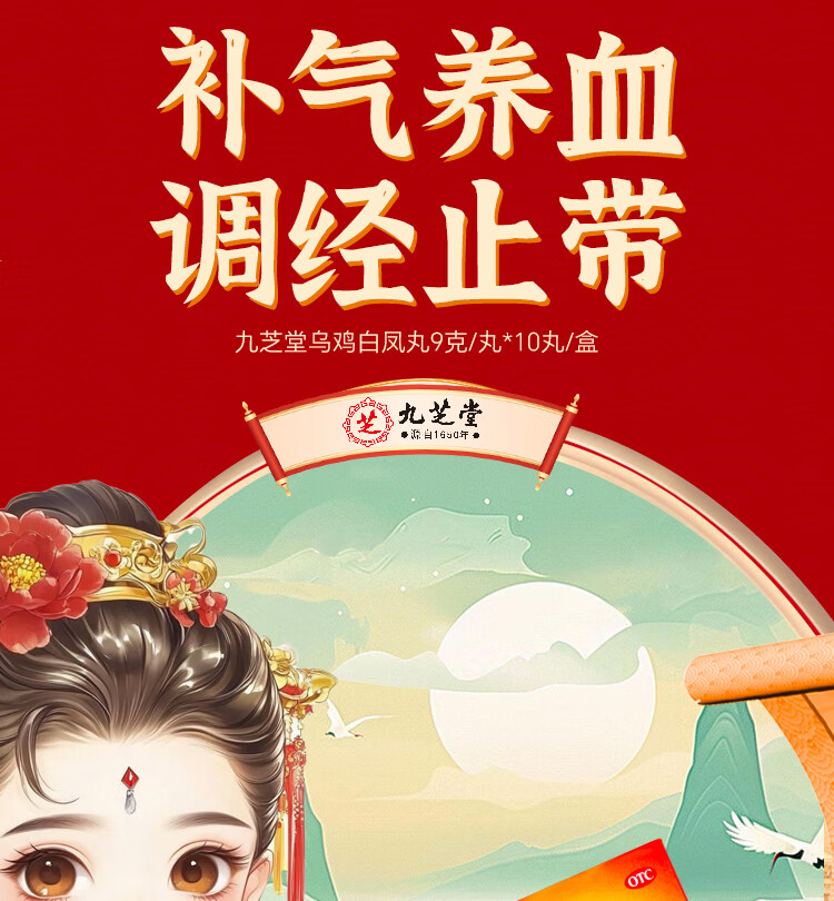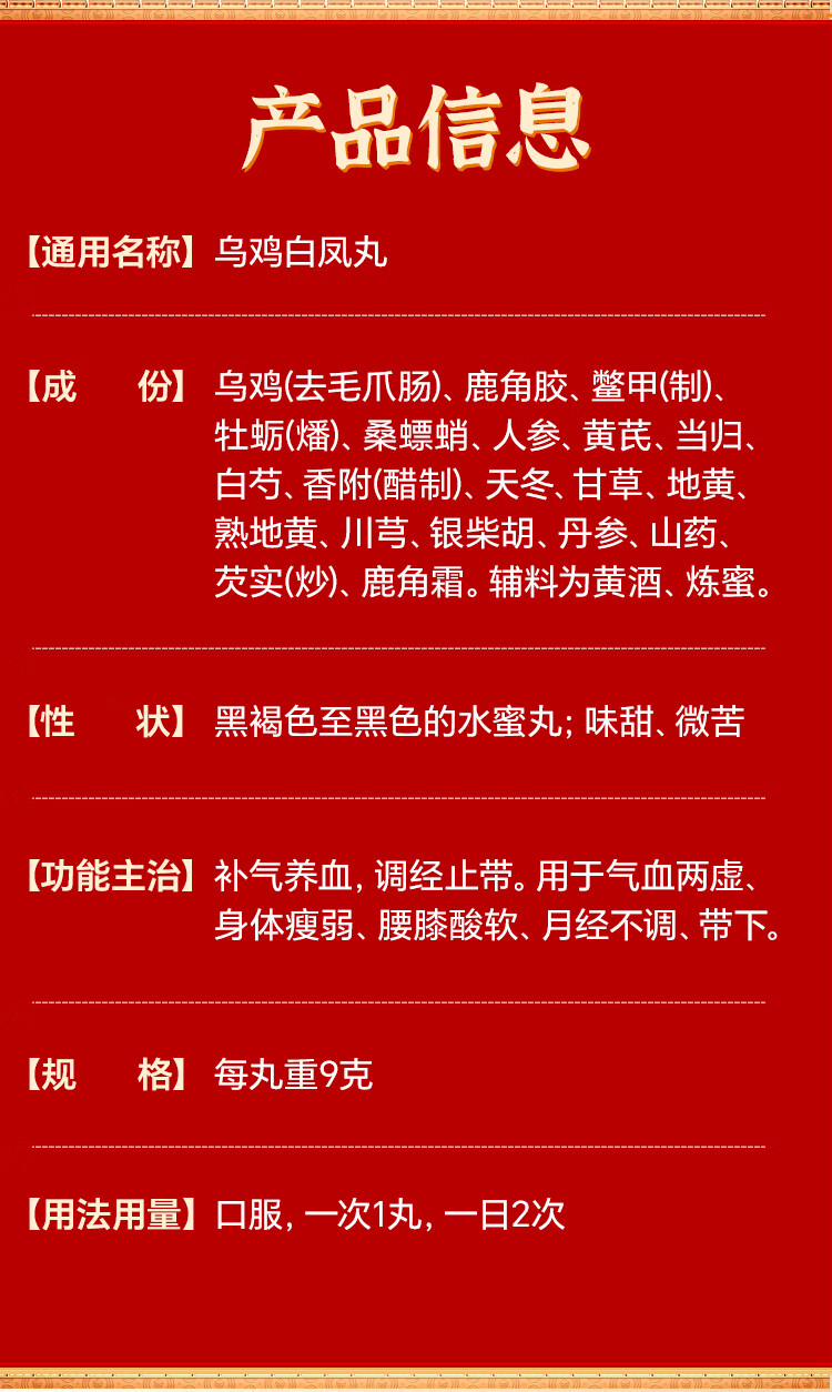九芝堂 乌鸡白凤丸(大蜜丸) 9g*10丸 补气养血 调经止带 身体瘦弱 腰膝酸软 月经不调 带下