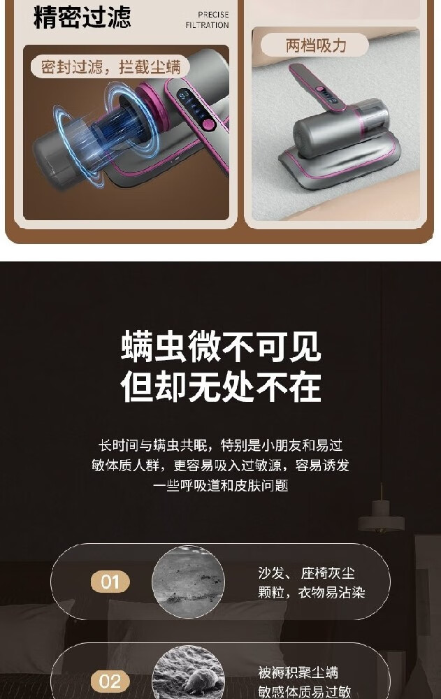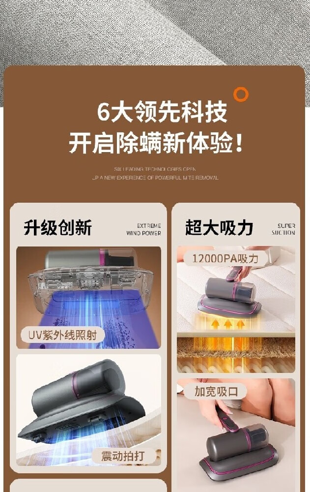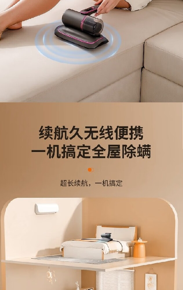 【戴森平替】除螨仪床品除螨仪吸尘器除螨神器强吸力家用吸尘器清洁机床单紫外线杀菌无线充电款 【高配双倍吸力】升级强拍打