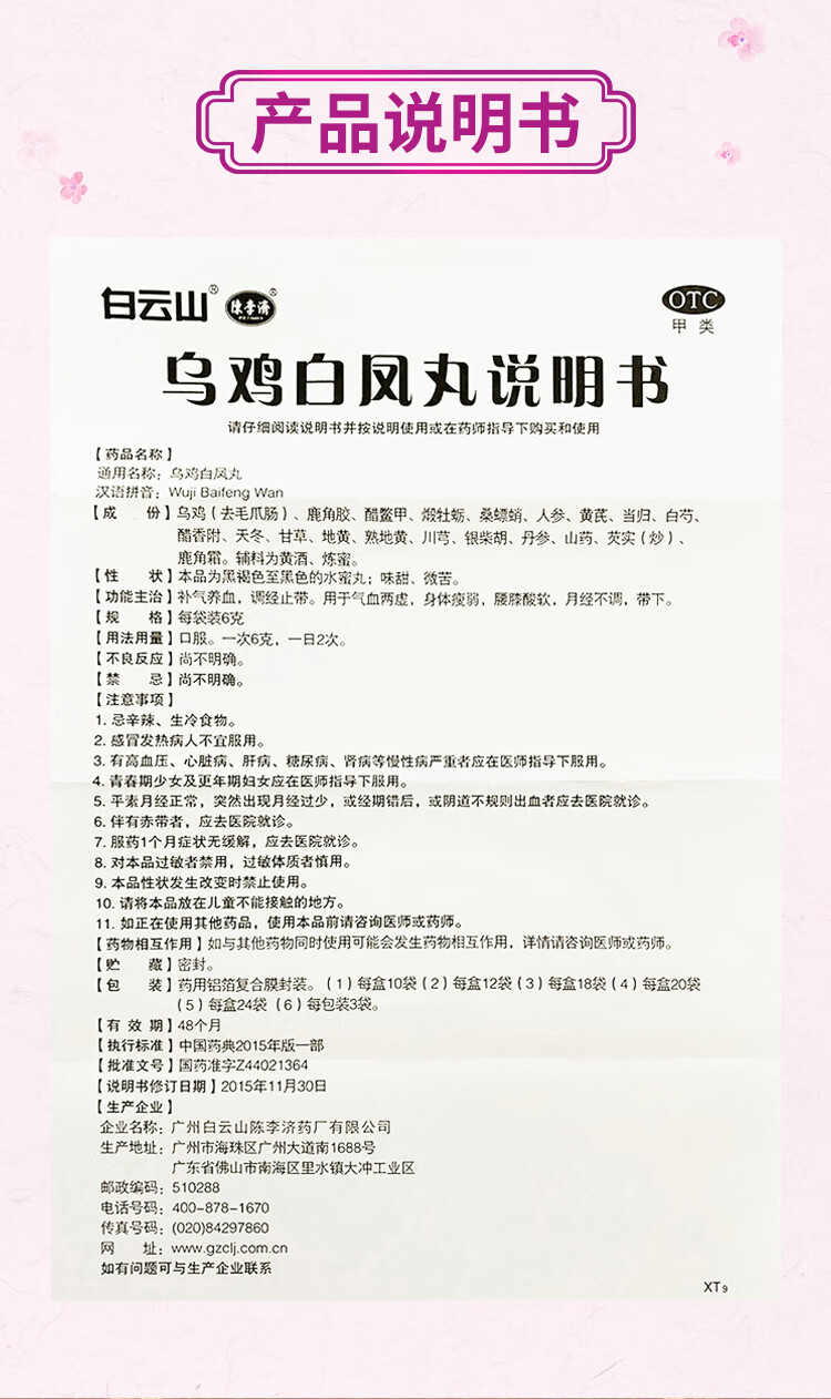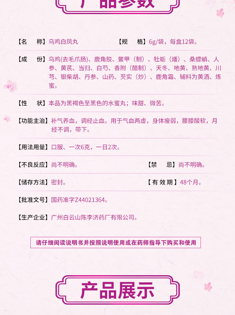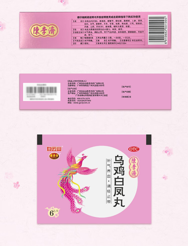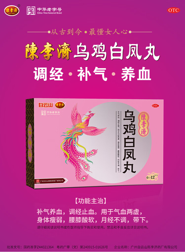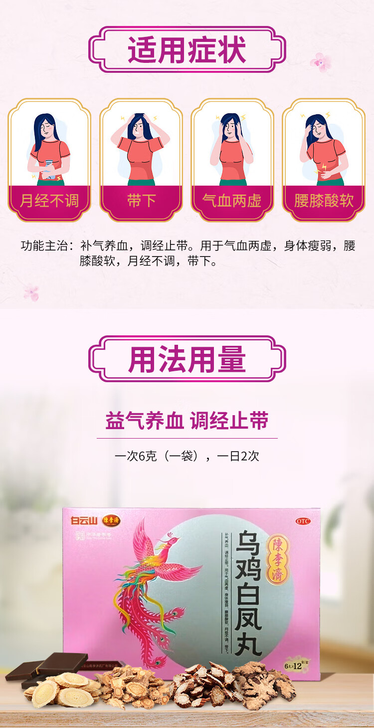 白云山 陈李济 乌鸡白凤丸6g*12袋补气养血调经止带用于气血两虚身体瘦弱腰膝酸软月经不调带下