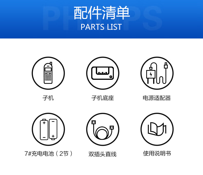 飞利浦(PHILIPS)无绳电话机 无线座机 子母机 办公家用 屏幕白色背光 持久待机 DCTG186黑色