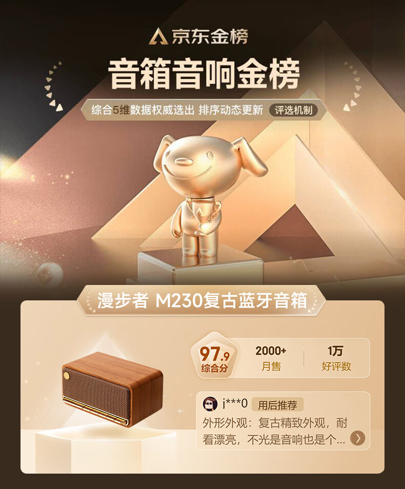 漫步者(EDIFIER)M230 高保真复古蓝牙便携音箱 桌面木质音响 立体声环绕 超长续航 木纹色 礼物