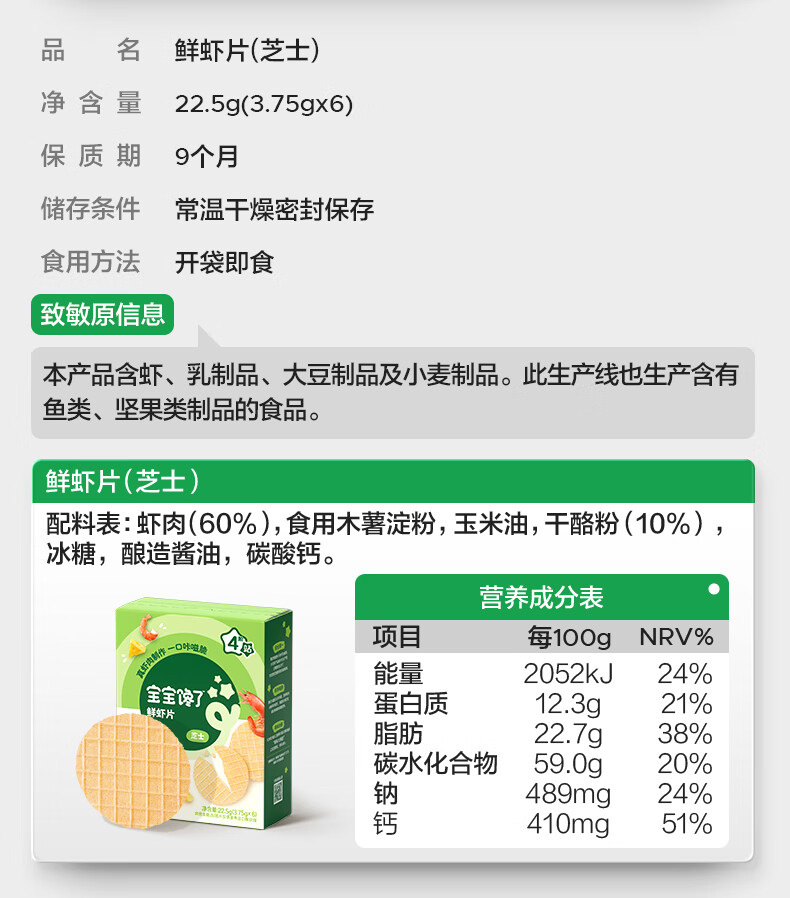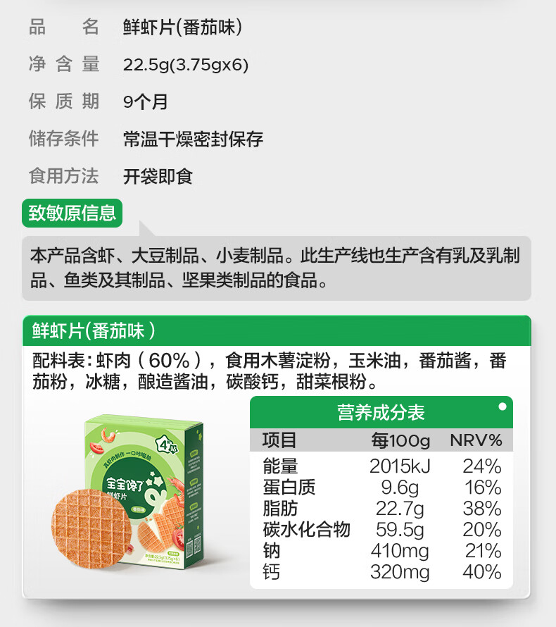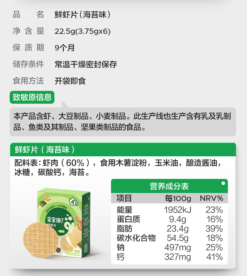 宝宝馋了高钙鲜虾片虾饼 宝宝儿童零食无添加色素22.5g