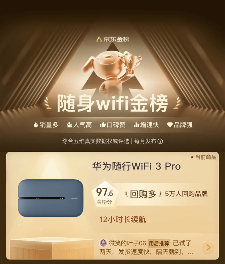 华为随身wifi3pro移动无线wifi免插卡随行4g携带无线网车载非wifi6三网通全国无限流量2025款5g AX15B 随行WiFi3 Pro 三网版 蓝色