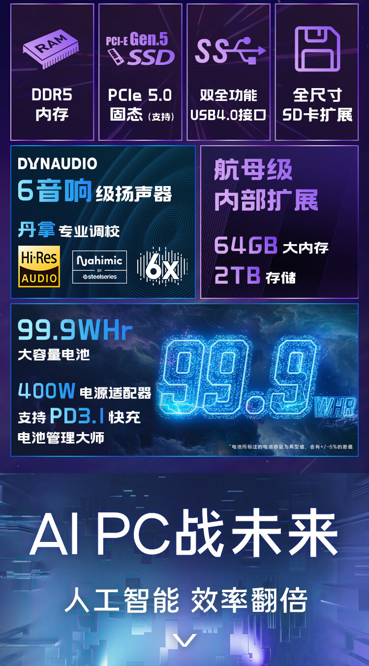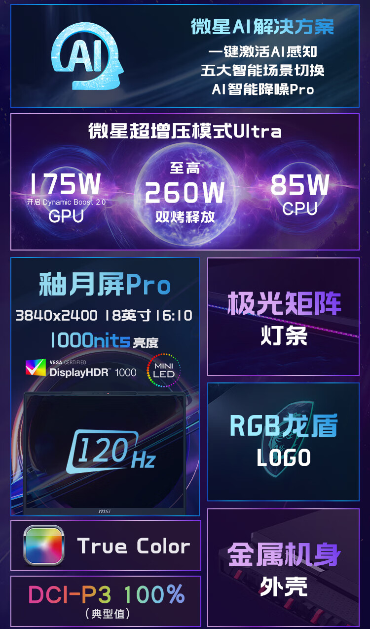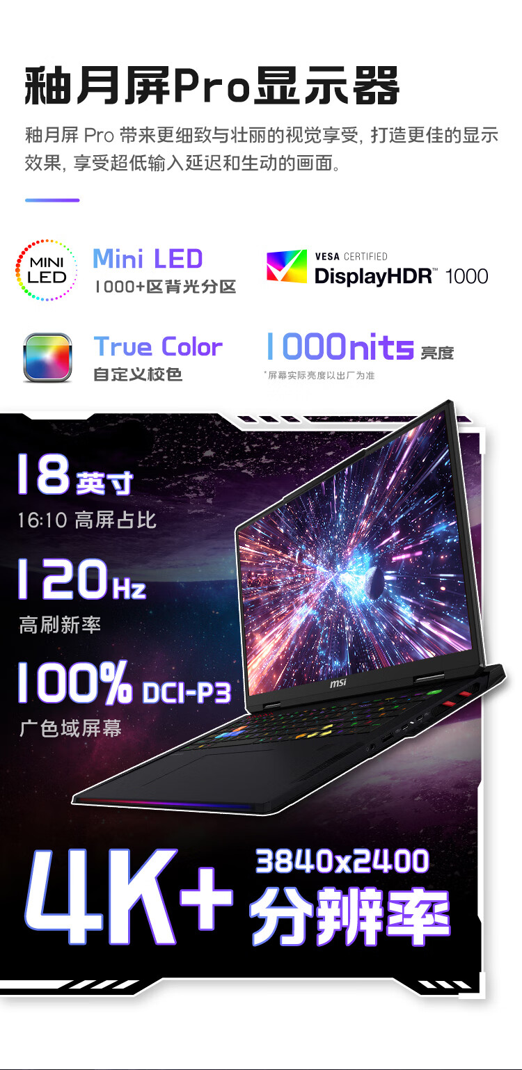 微星(MSI)泰坦18Pro 锐龙版 2025 18英寸游戏笔记本电脑(R9-9955HX3D RTX5080 64G 2TB 4K/MiniLED)国家补贴