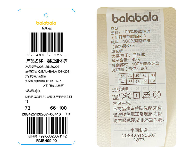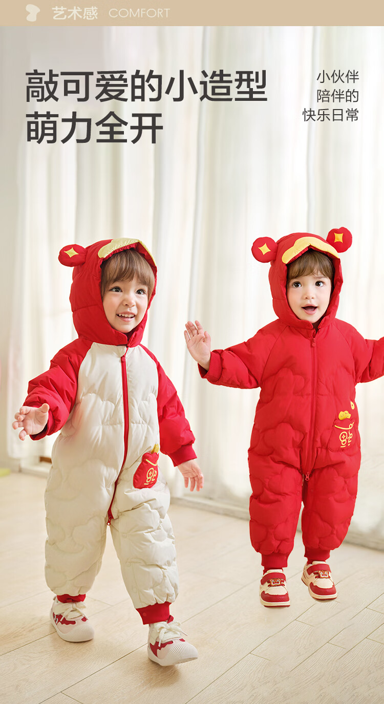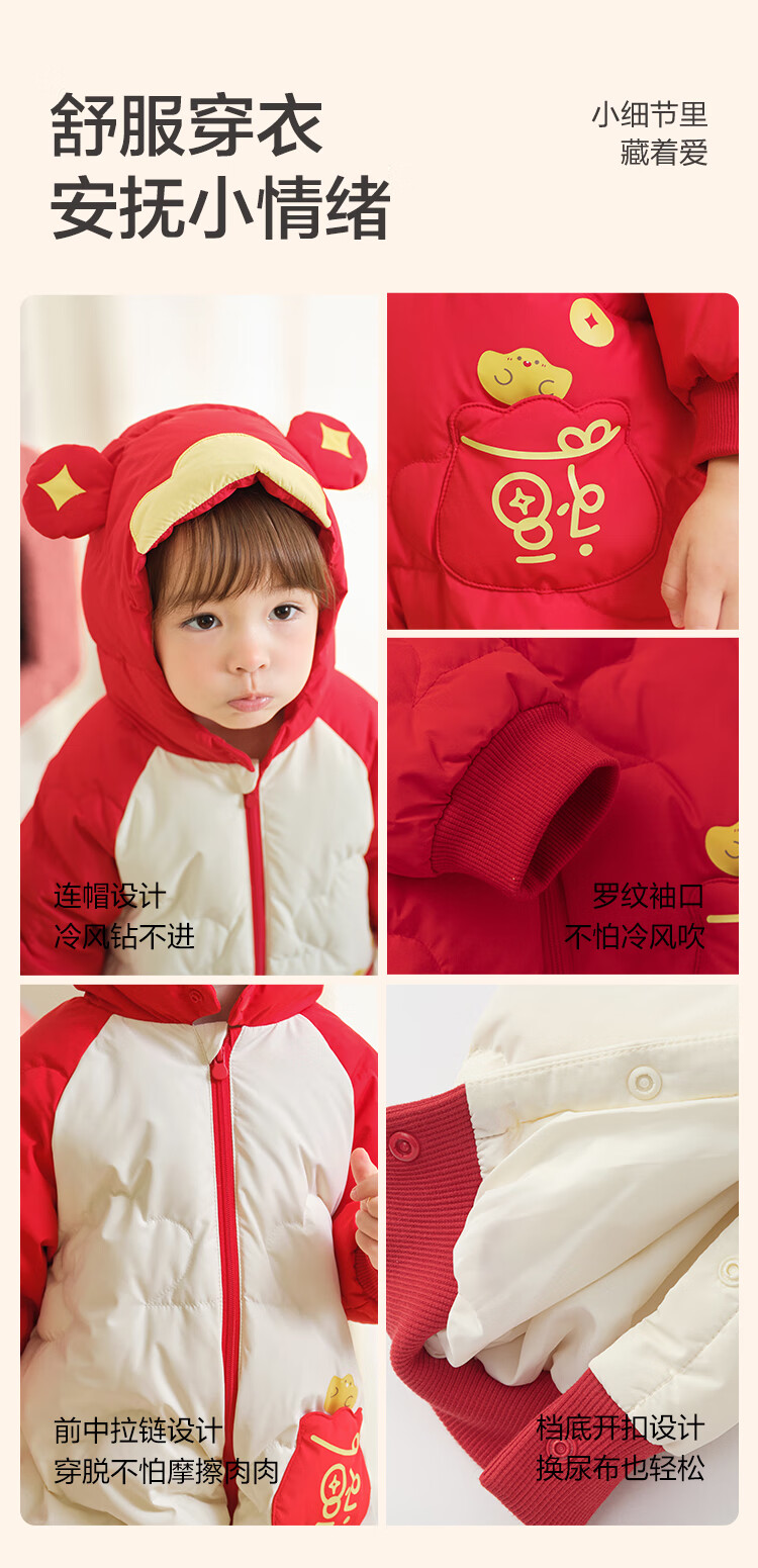 巴拉巴拉童装婴儿连体衣羽绒服男女童2025冬装哈衣国风造型萌208425120207