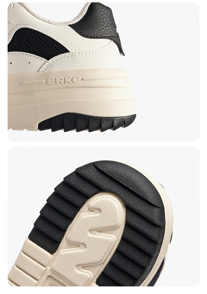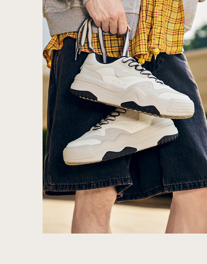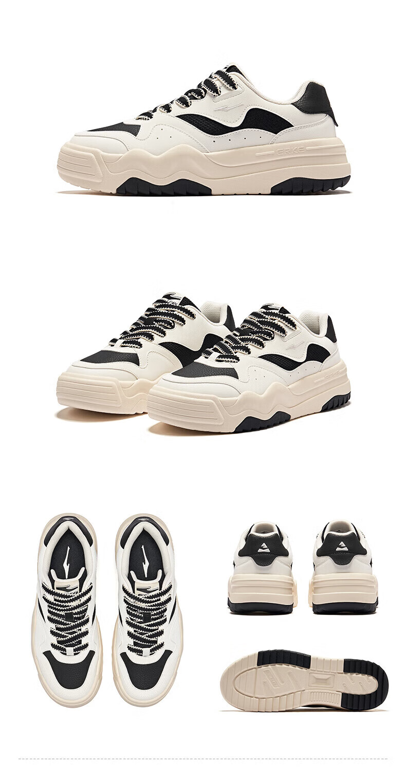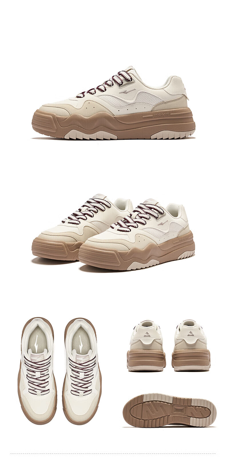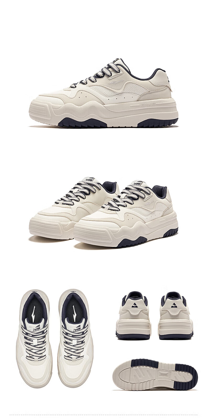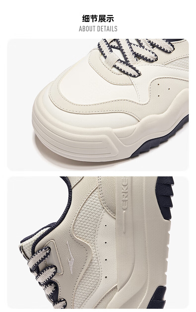 鸿星尔克板鞋男鞋子2025秋季新款悠然拼接个性百搭休闲厚底运动鞋 蛋奶灰/微晶白 44