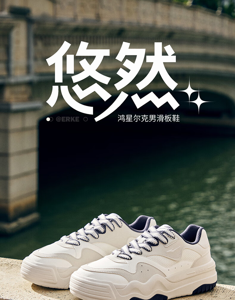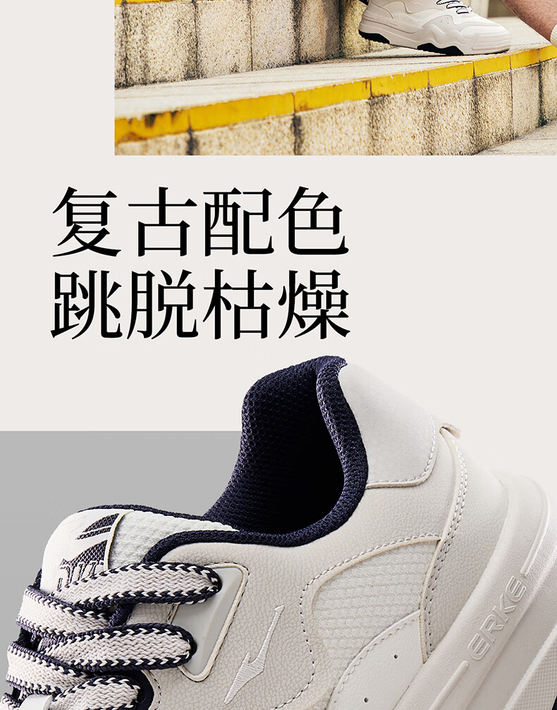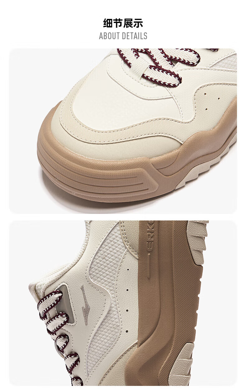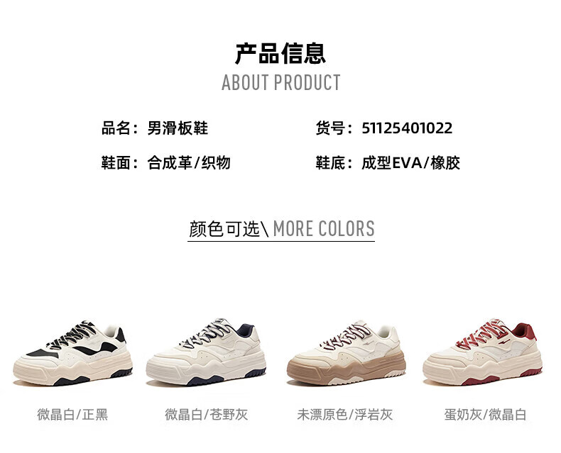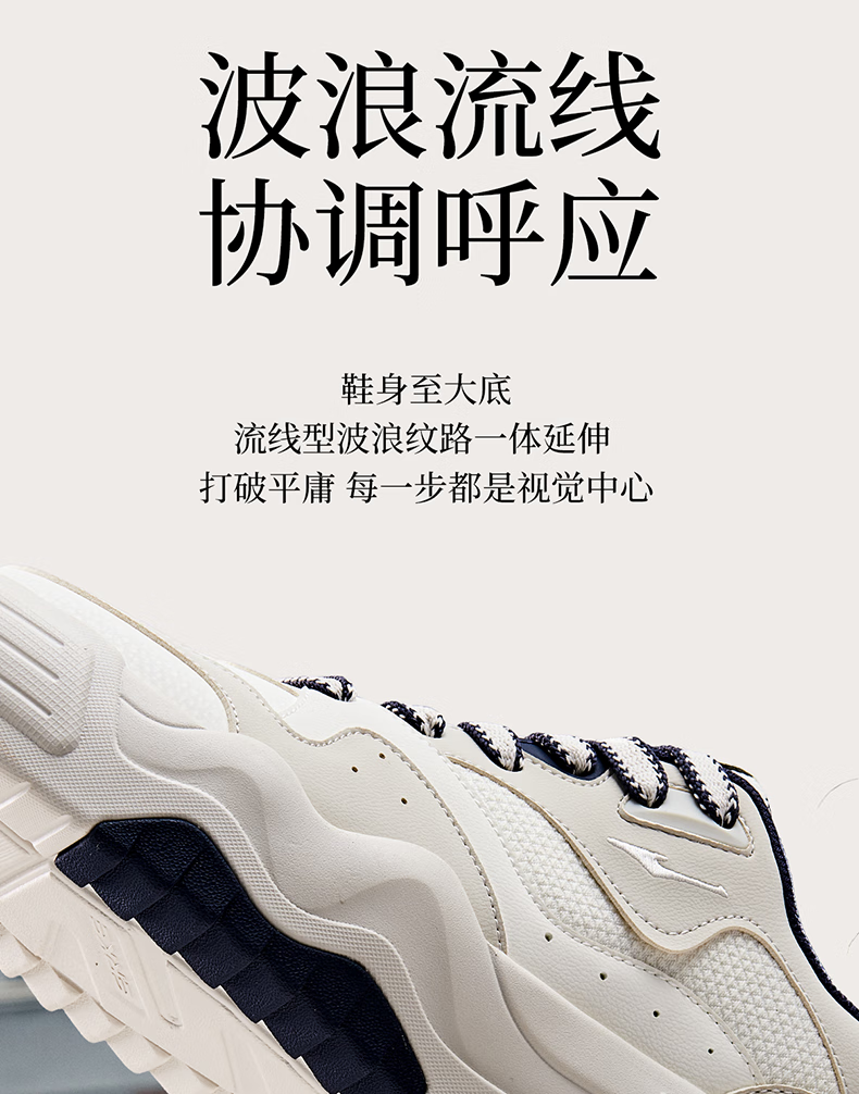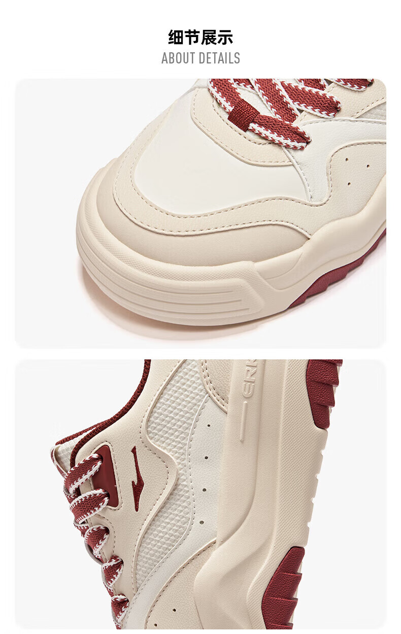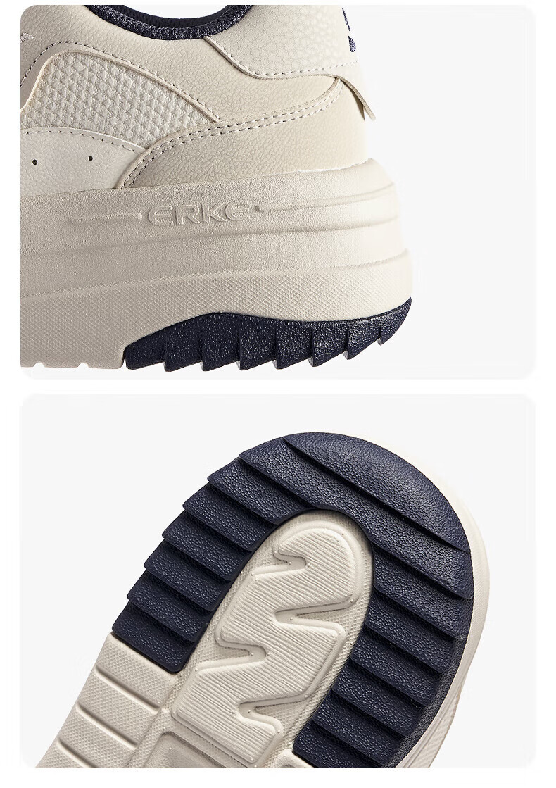 鸿星尔克板鞋男鞋子2025秋季新款悠然拼接个性百搭休闲厚底运动鞋 蛋奶灰/微晶白 44