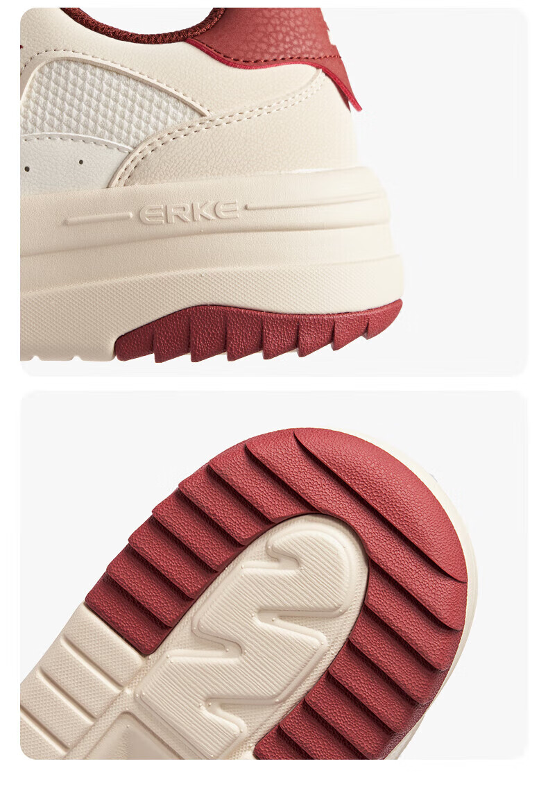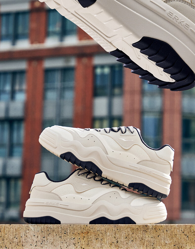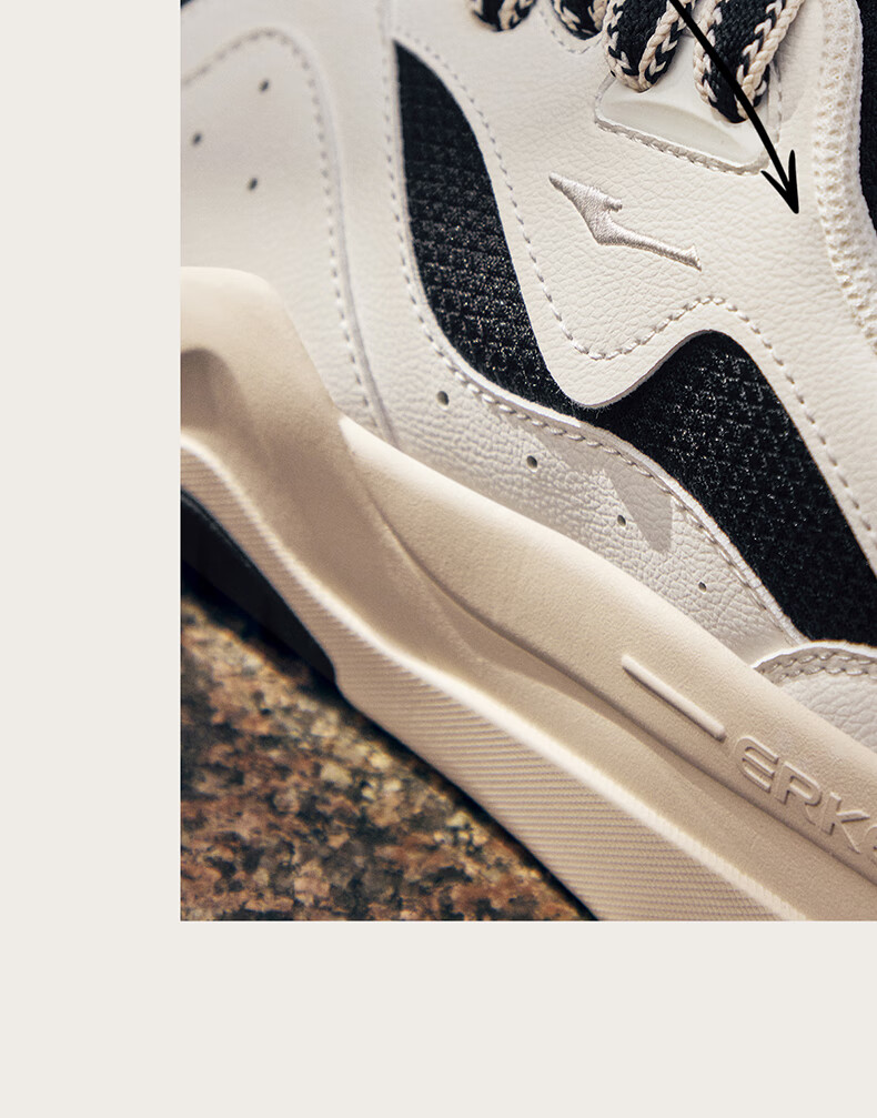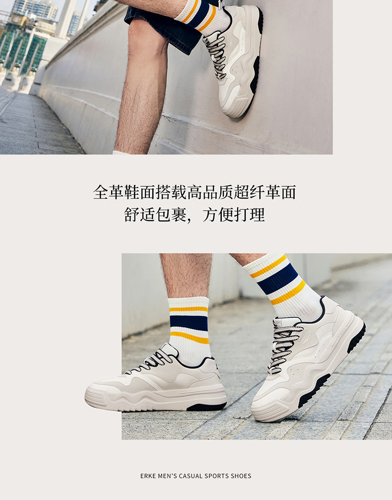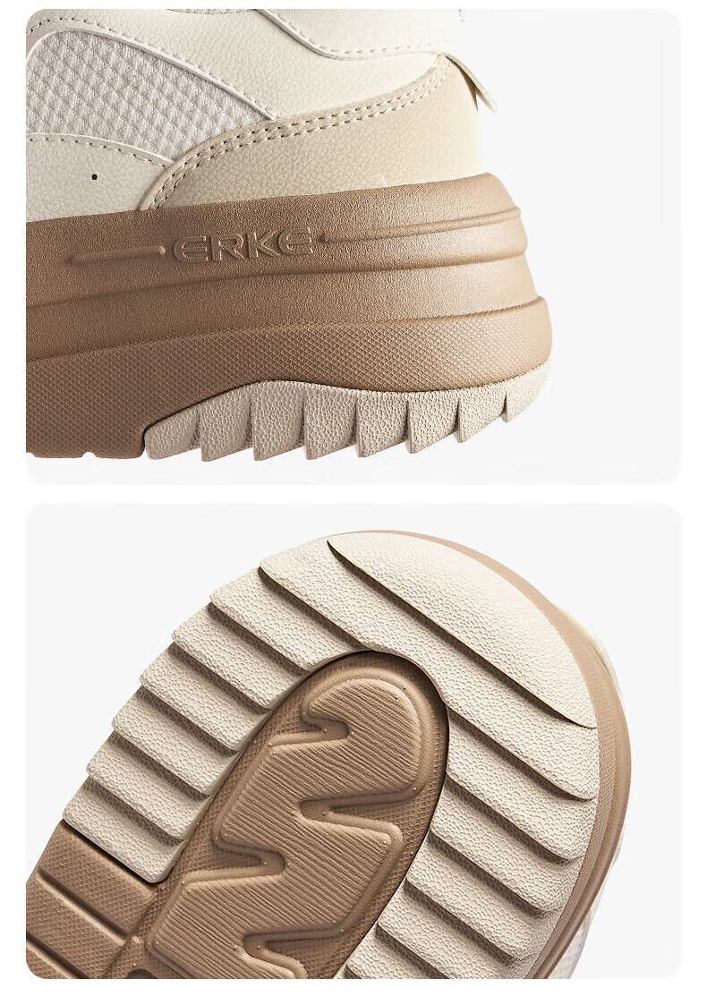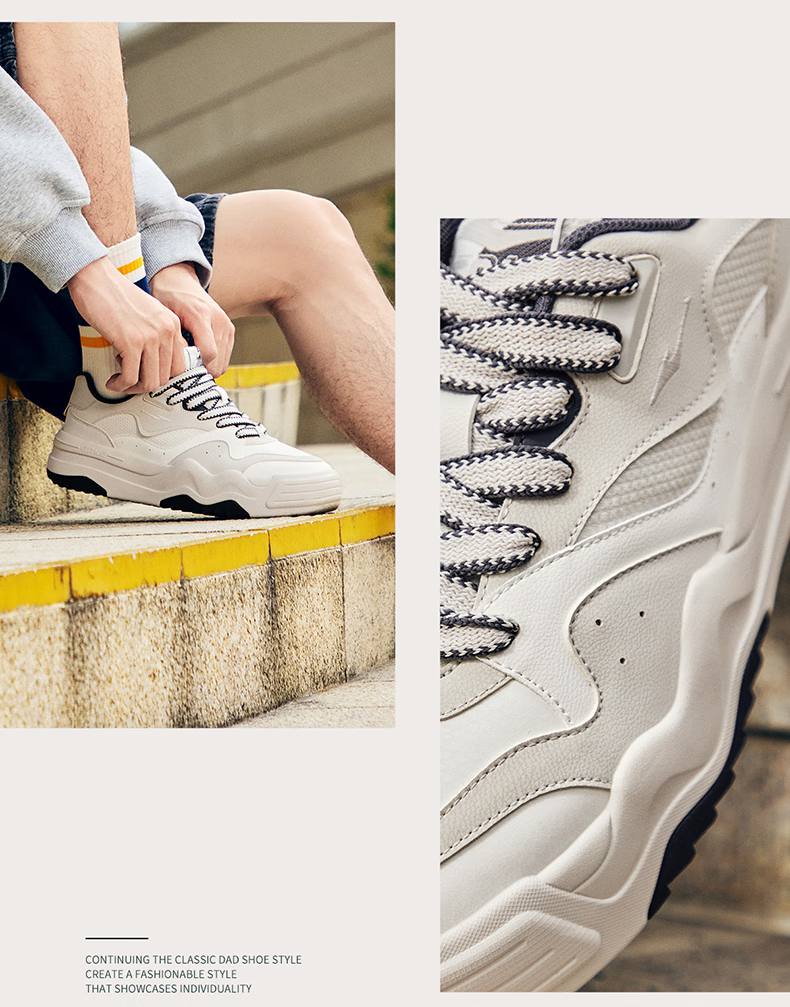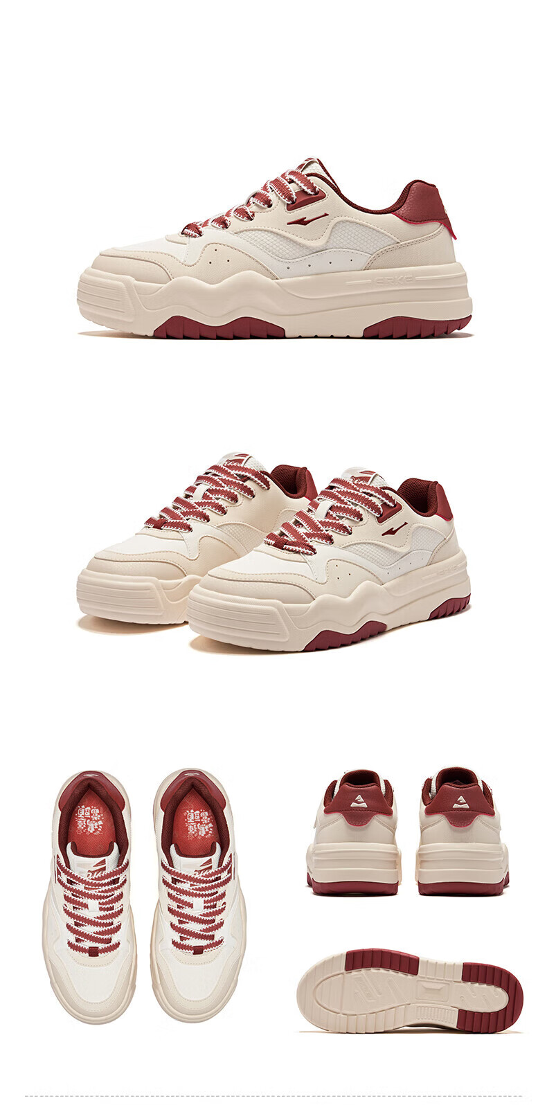 鸿星尔克板鞋男鞋子2025秋季新款悠然拼接个性百搭休闲厚底运动鞋 蛋奶灰/微晶白 44