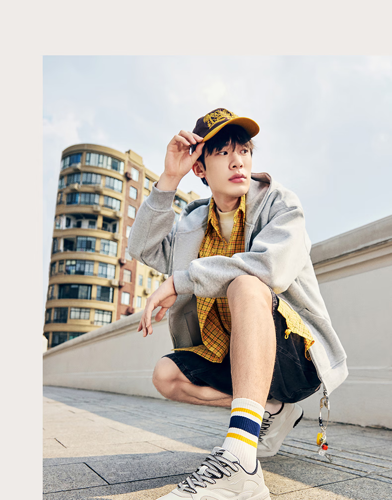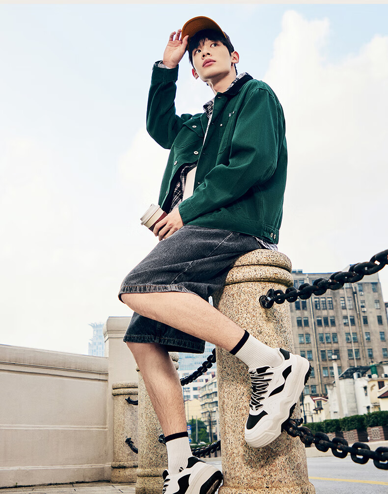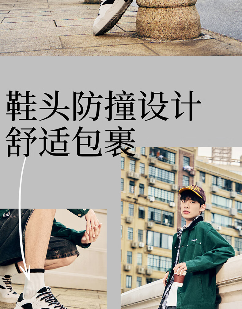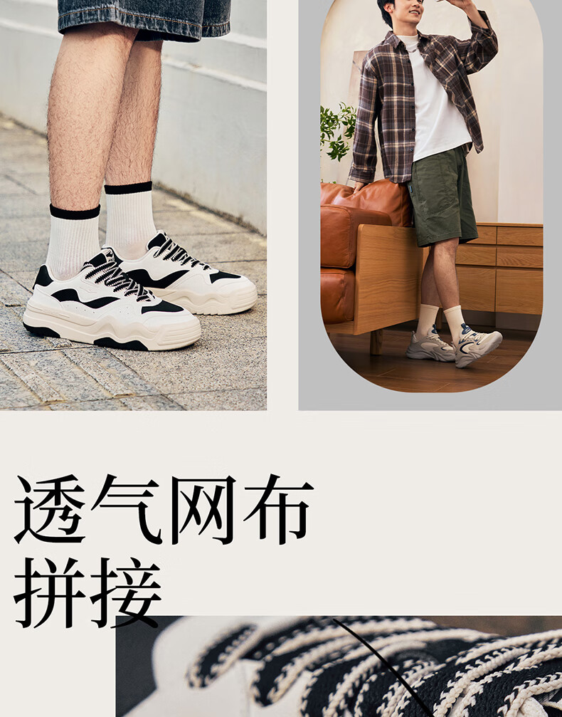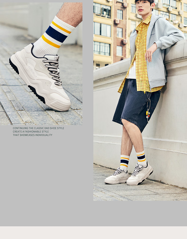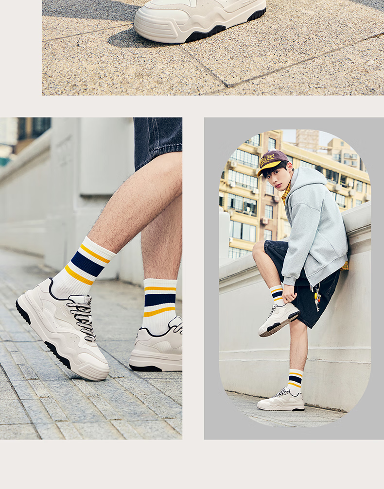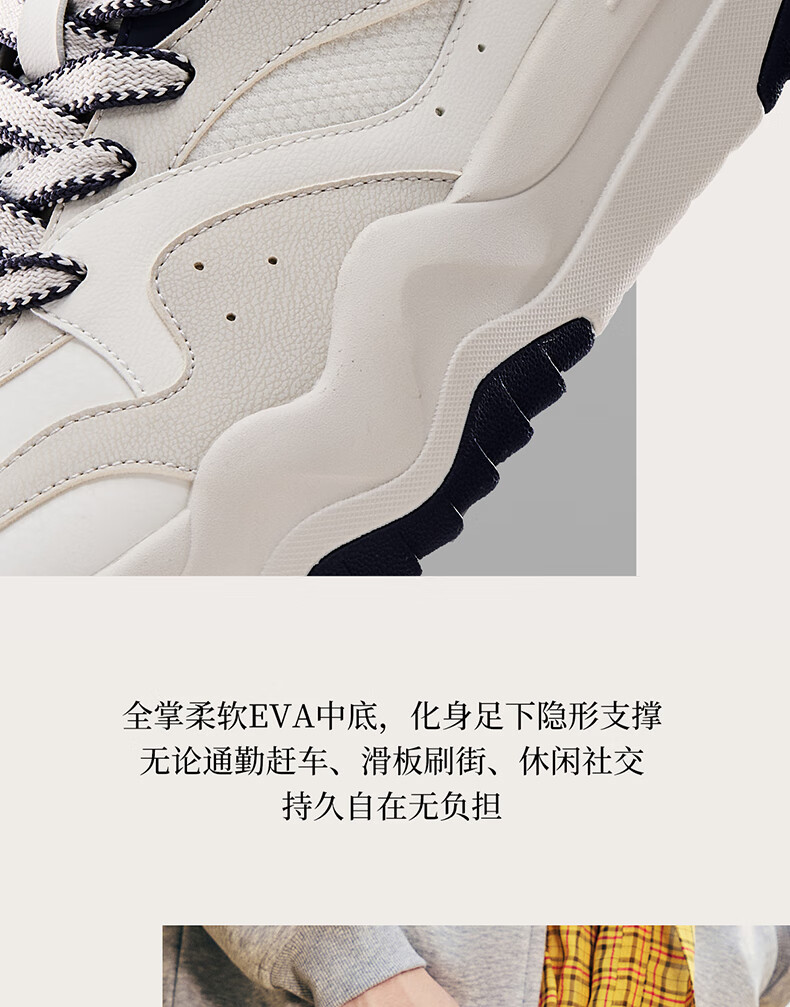 鸿星尔克板鞋男鞋子2025秋季新款悠然拼接个性百搭休闲厚底运动鞋 蛋奶灰/微晶白 44