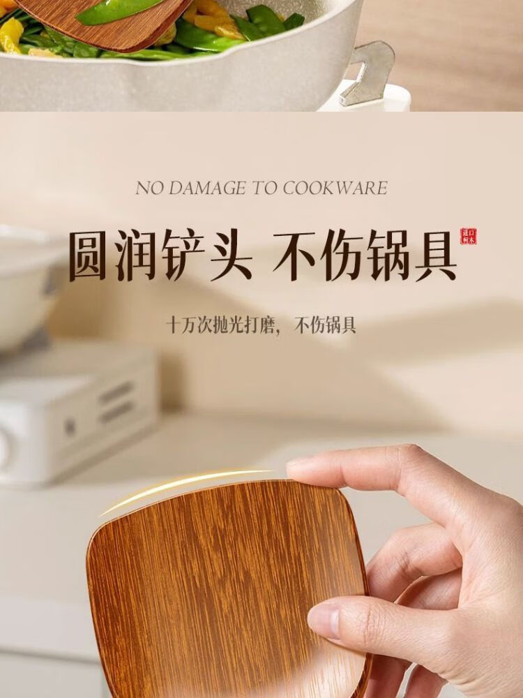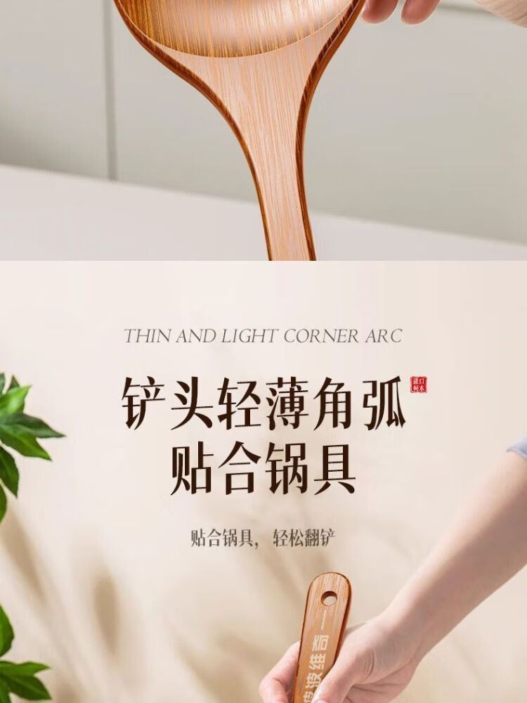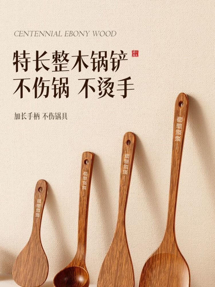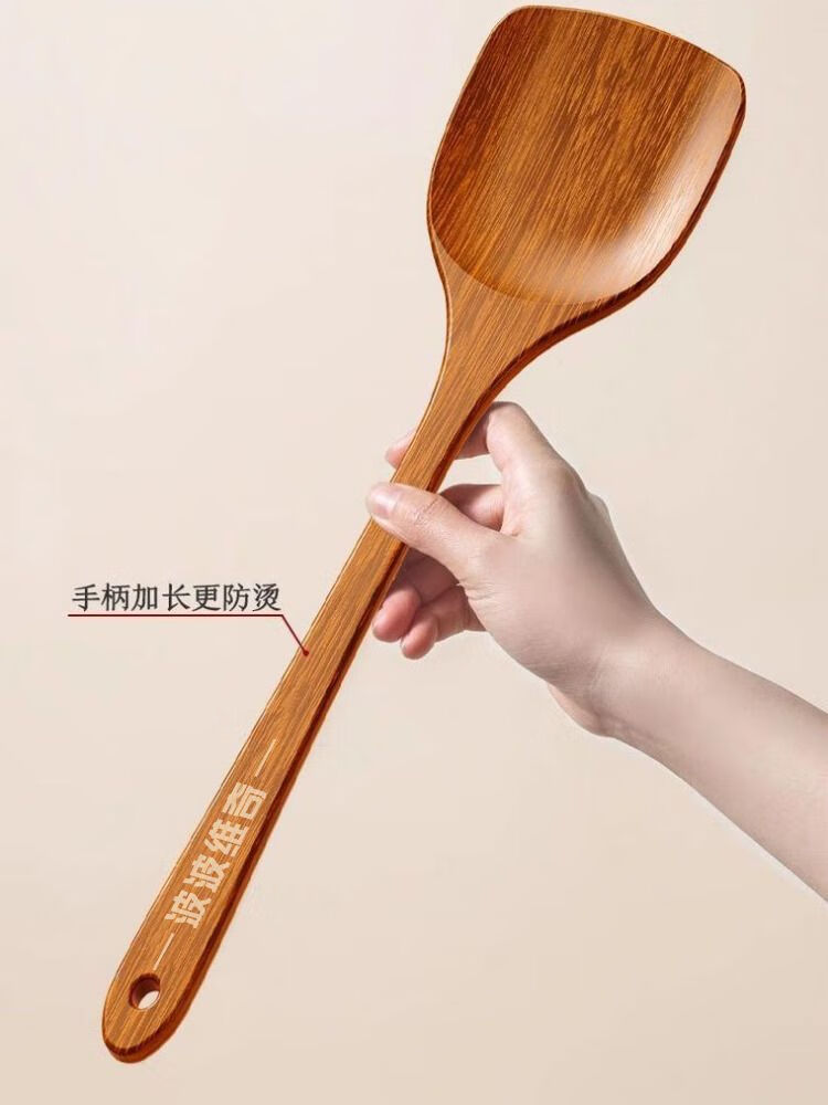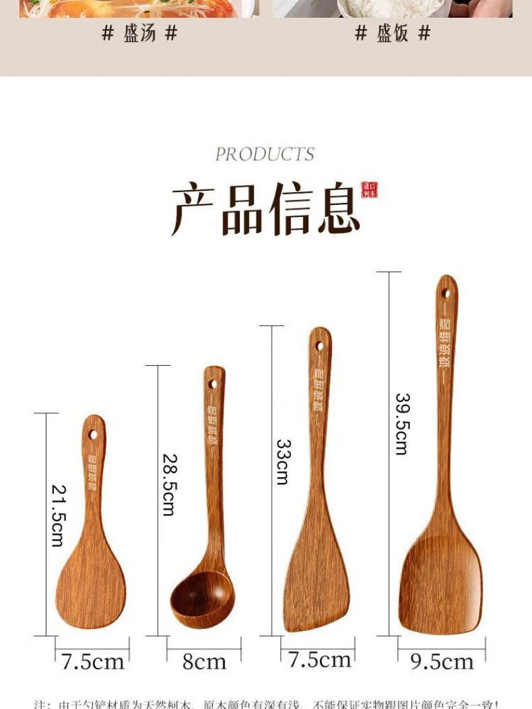 DEATKN锅铲木铲不粘锅专用锅铲木质锅铲家用耐高温炒菜全套勺铲 (天然柯木-不伤锅具-特长锅铲) 21cm标准(饭勺)