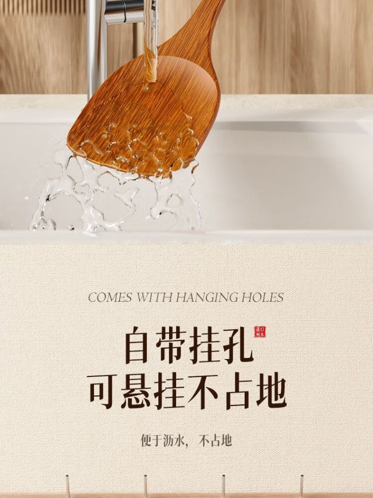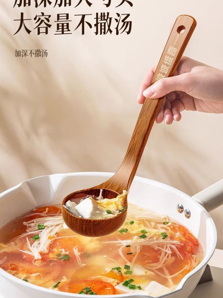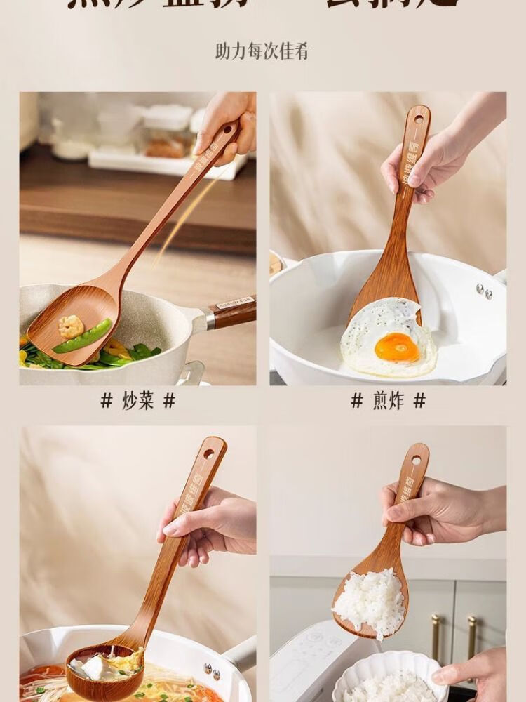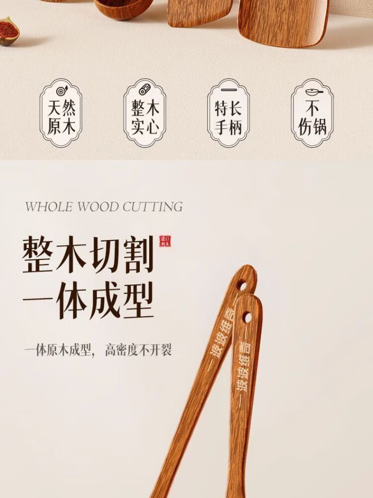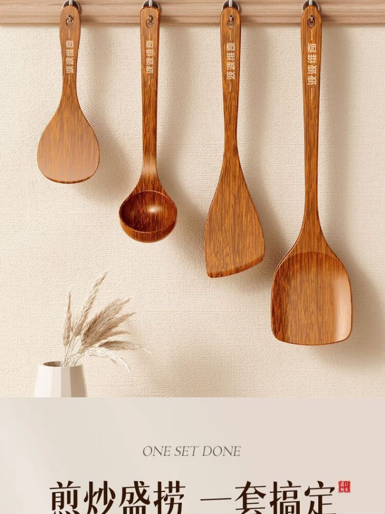 DEATKN锅铲木铲不粘锅专用锅铲木质锅铲家用耐高温炒菜全套勺铲 (天然柯木-不伤锅具-特长锅铲) 21cm标准(饭勺)
