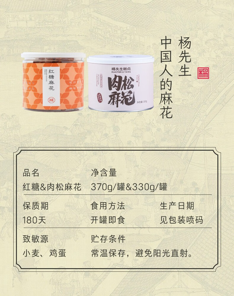 杨先生 海苔肉松麻花红糖麻花升级版休闲零食小麻花大麻花糕点点心 肉松麻花 330g/罐