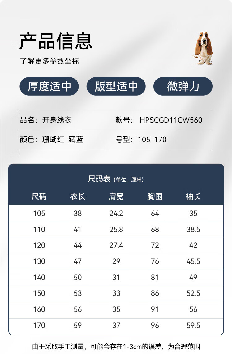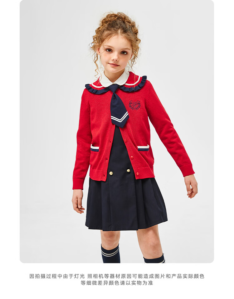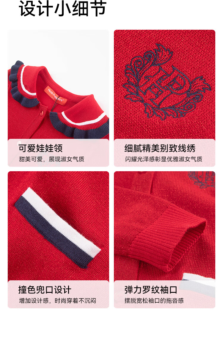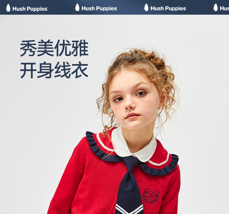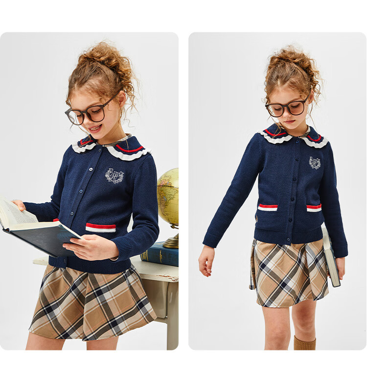 暇步士(Hush Puppies)童装儿童女大童春季优雅甜美柔软舒适百搭开身线衣 藏蓝 140 cm