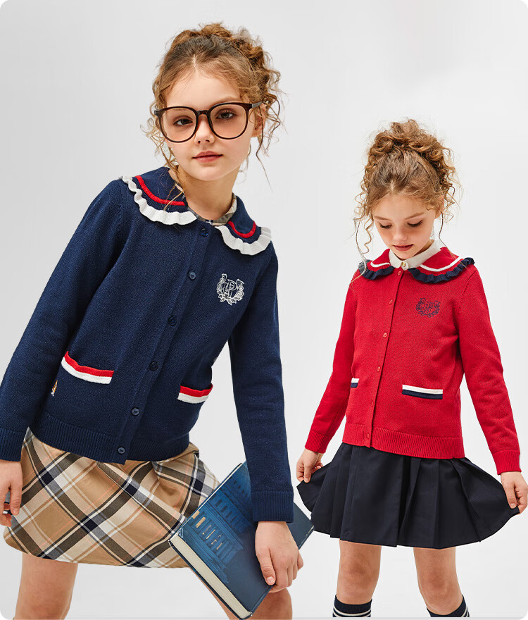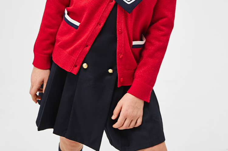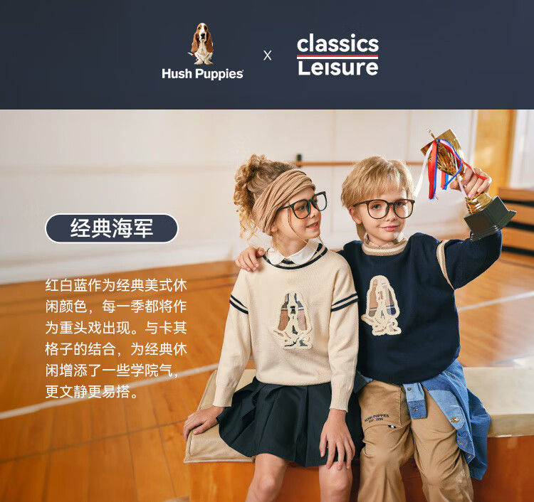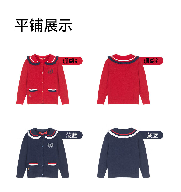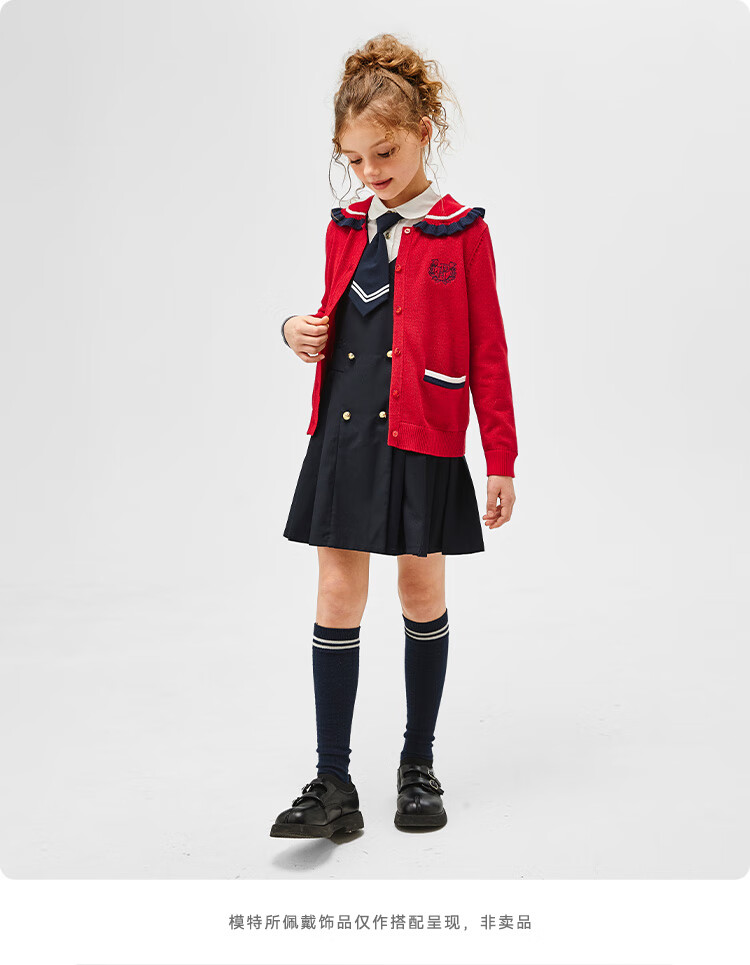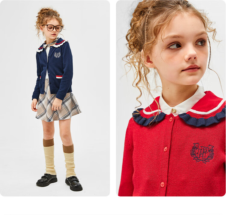 暇步士(Hush Puppies)童装儿童女大童春季优雅甜美柔软舒适百搭开身线衣 藏蓝 140 cm