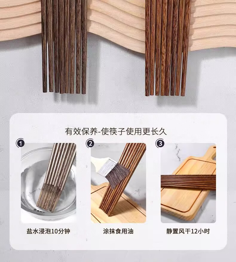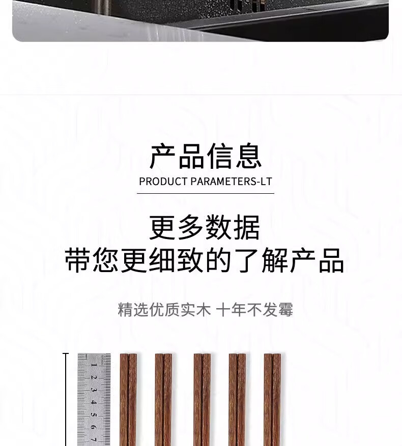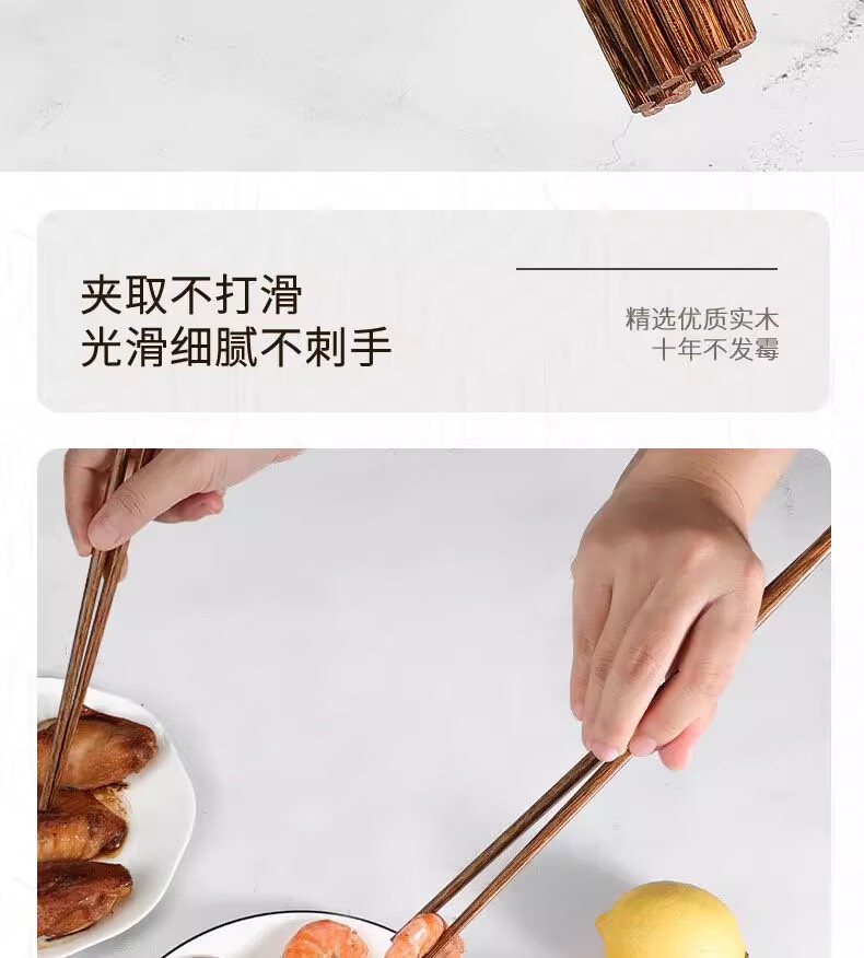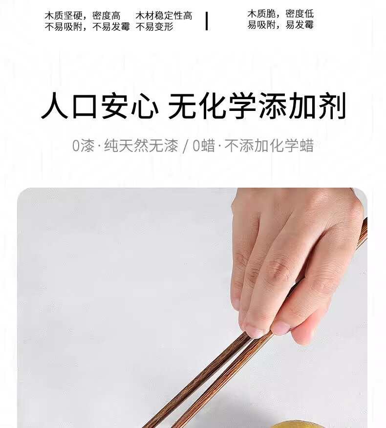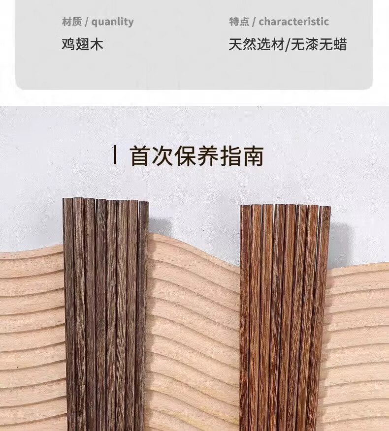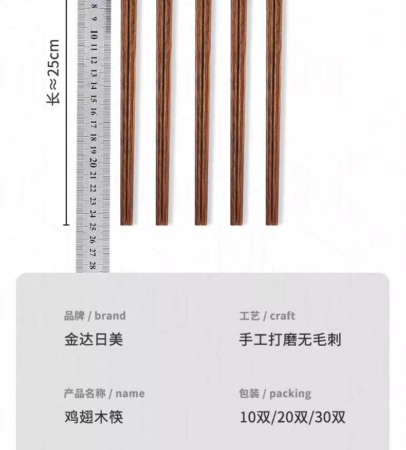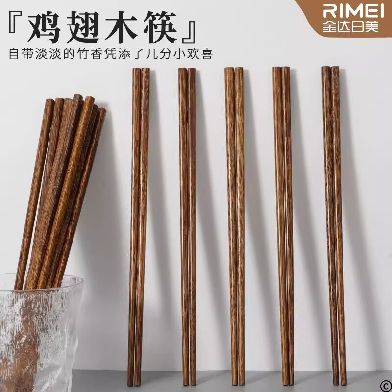 金达日美天然实木筷子家用耐高温易清洗不变形鸡翅木无漆无蜡抗菌原木筷子 无漆鸡翅木筷(10双)