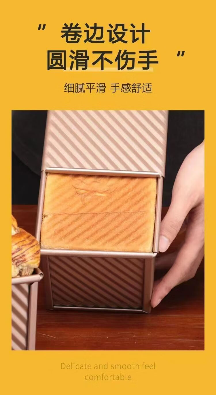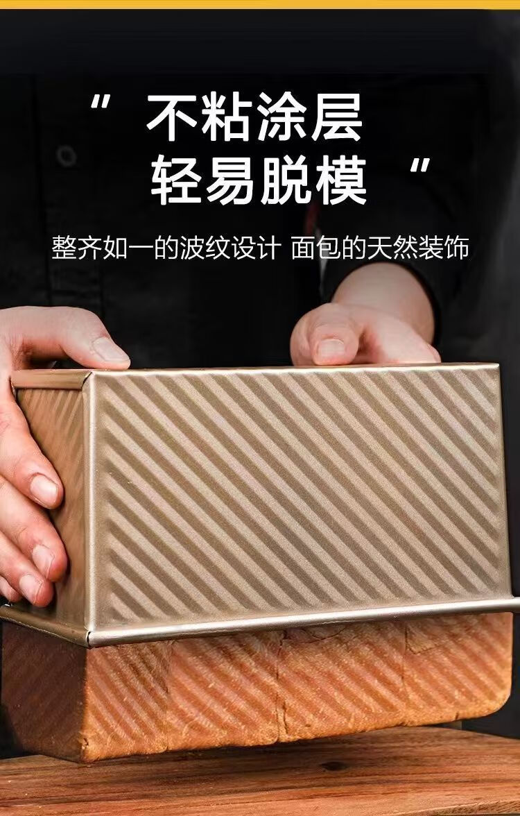 简漾食品级面包450吐司模具带盖工具盒子烘焙家用烤箱烤面包蛋糕 斜纹+排气孔(250g)吐司盒+无盖