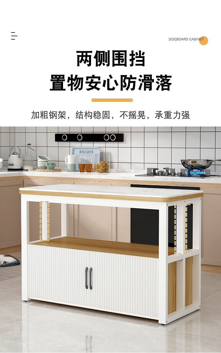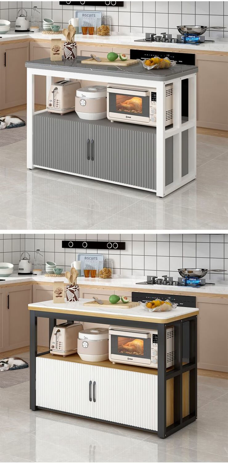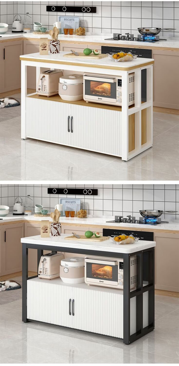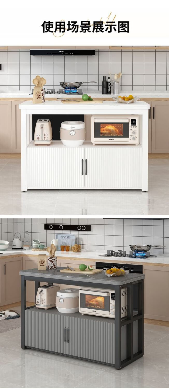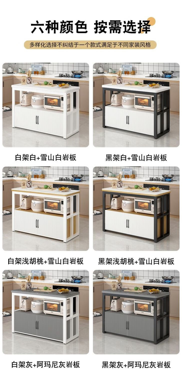弘星隆厨房置物柜岩板切菜台桌落地多层厨房岛台多功能收纳架微波炉橱柜 黑架+灰色【2.5*5钢架】岩板款 长60宽30高80【加厚承重】