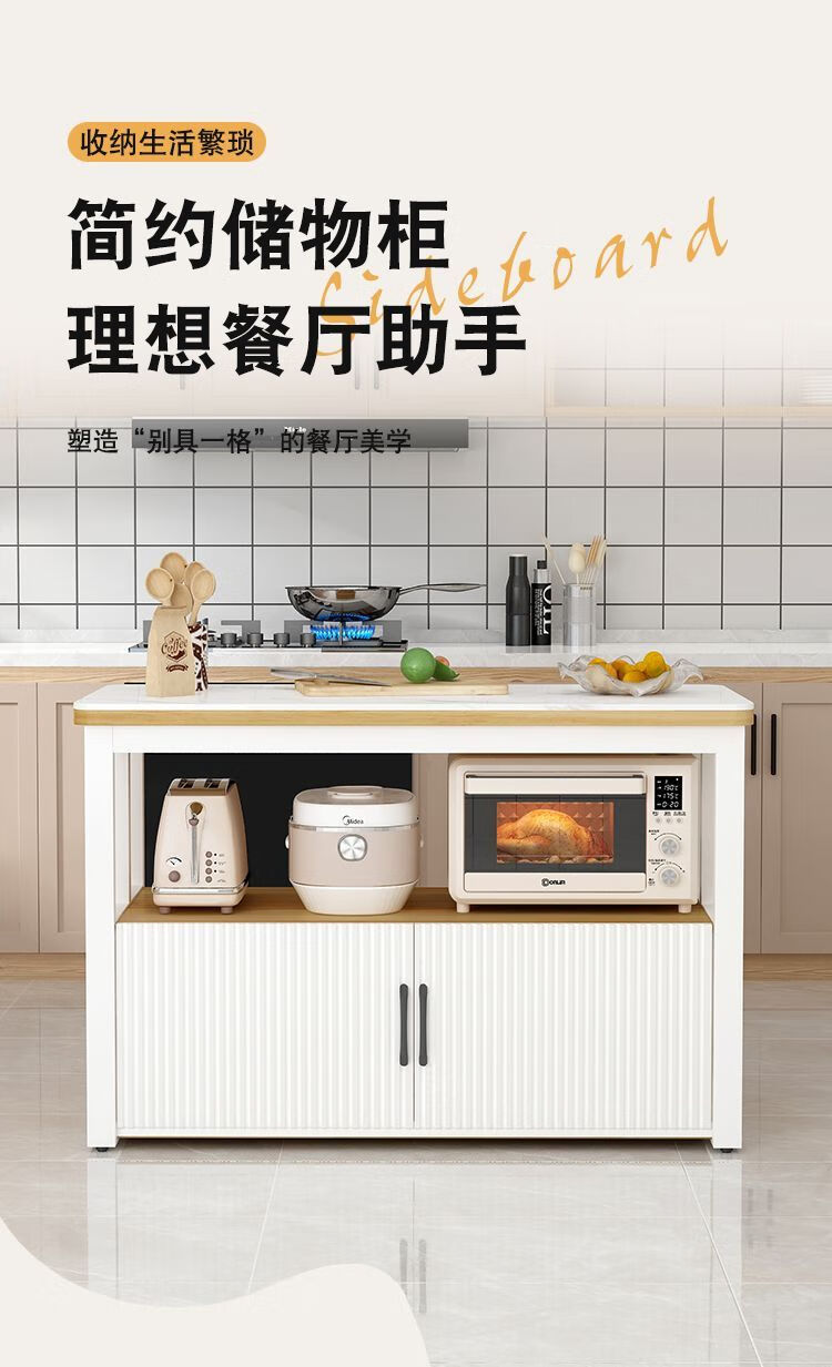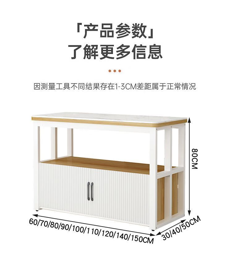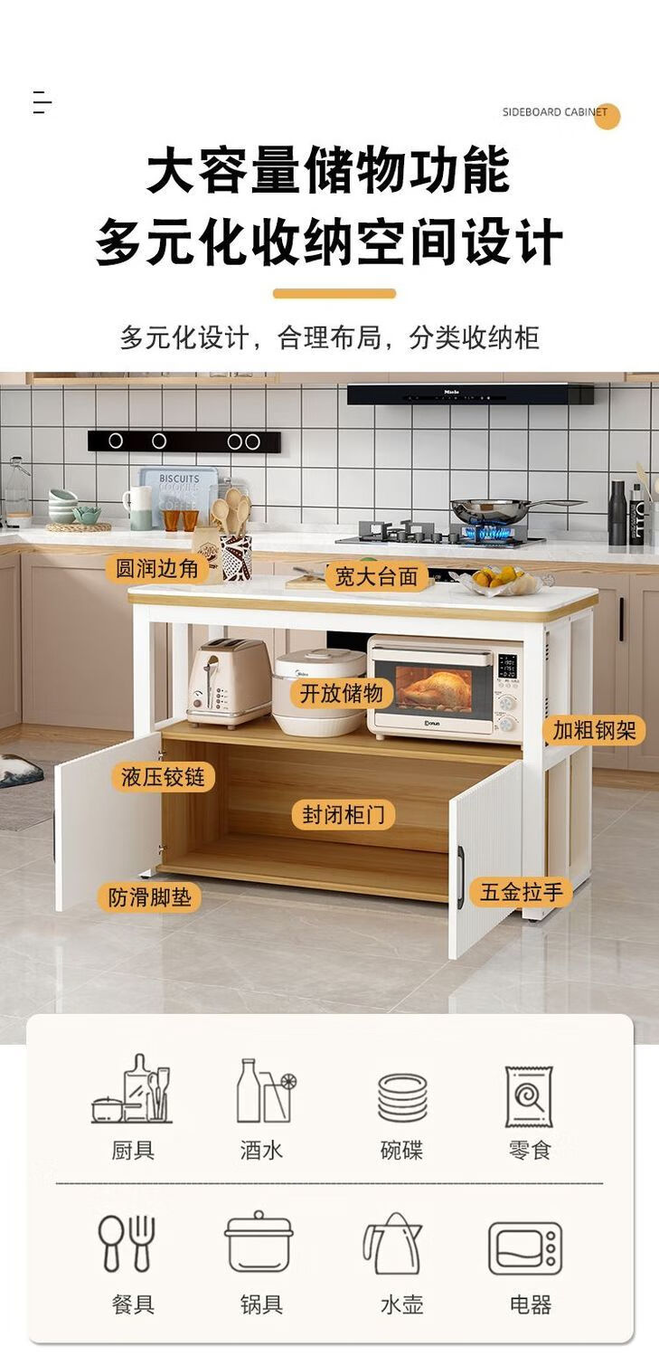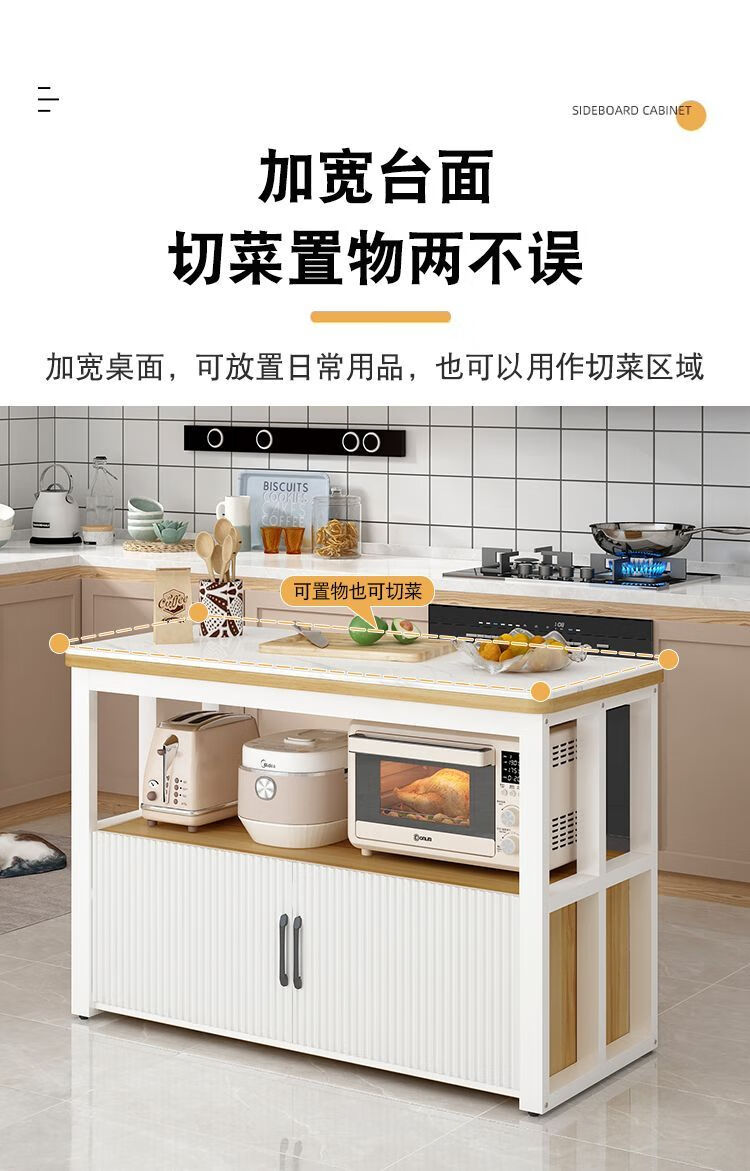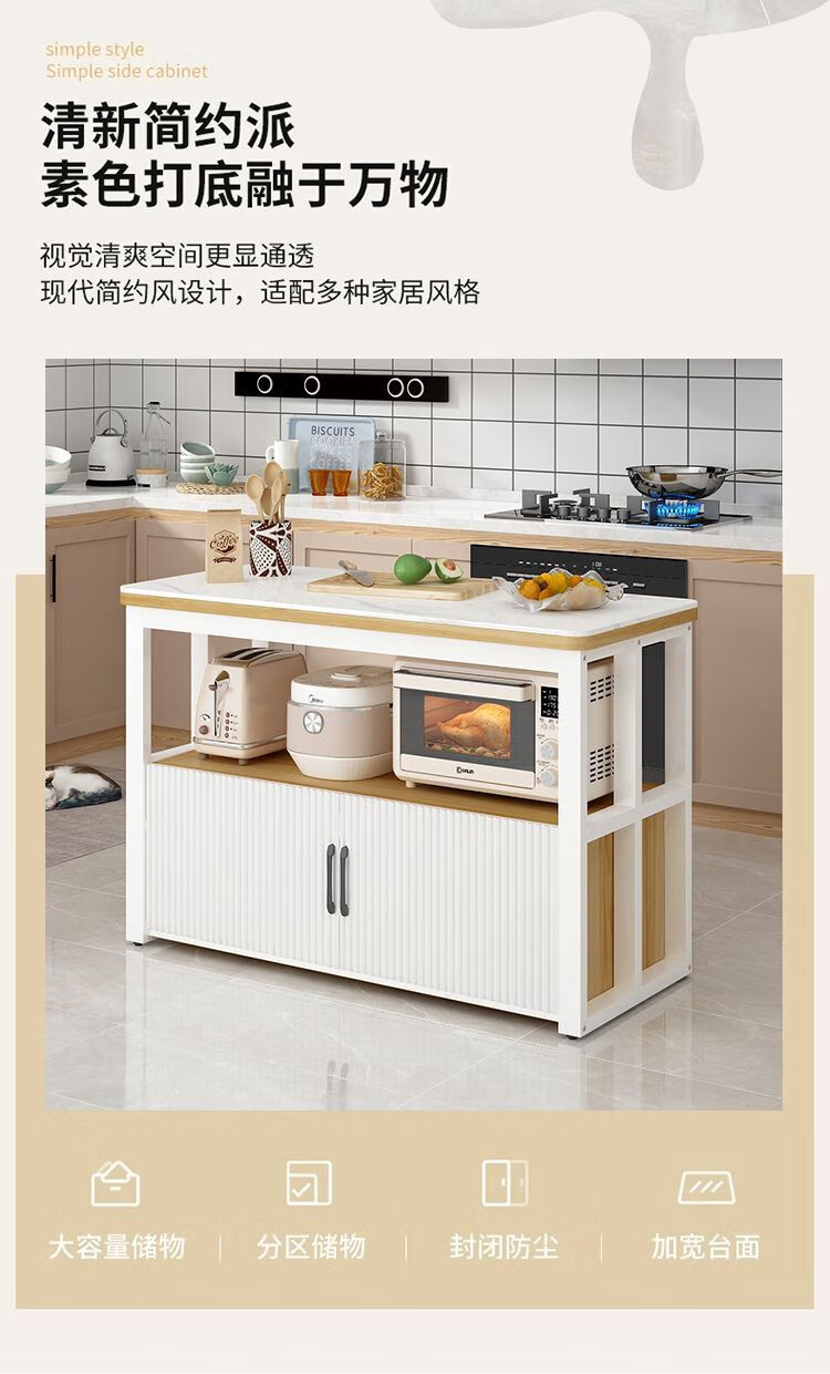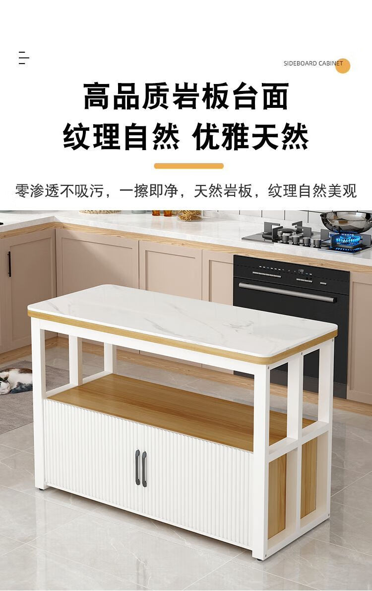弘星隆厨房置物柜岩板切菜台桌落地多层厨房岛台多功能收纳架微波炉橱柜 黑架+灰色【2.5*5钢架】岩板款 长60宽30高80【加厚承重】