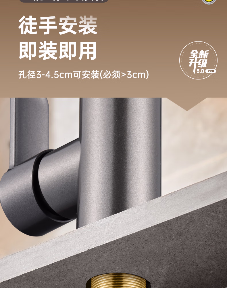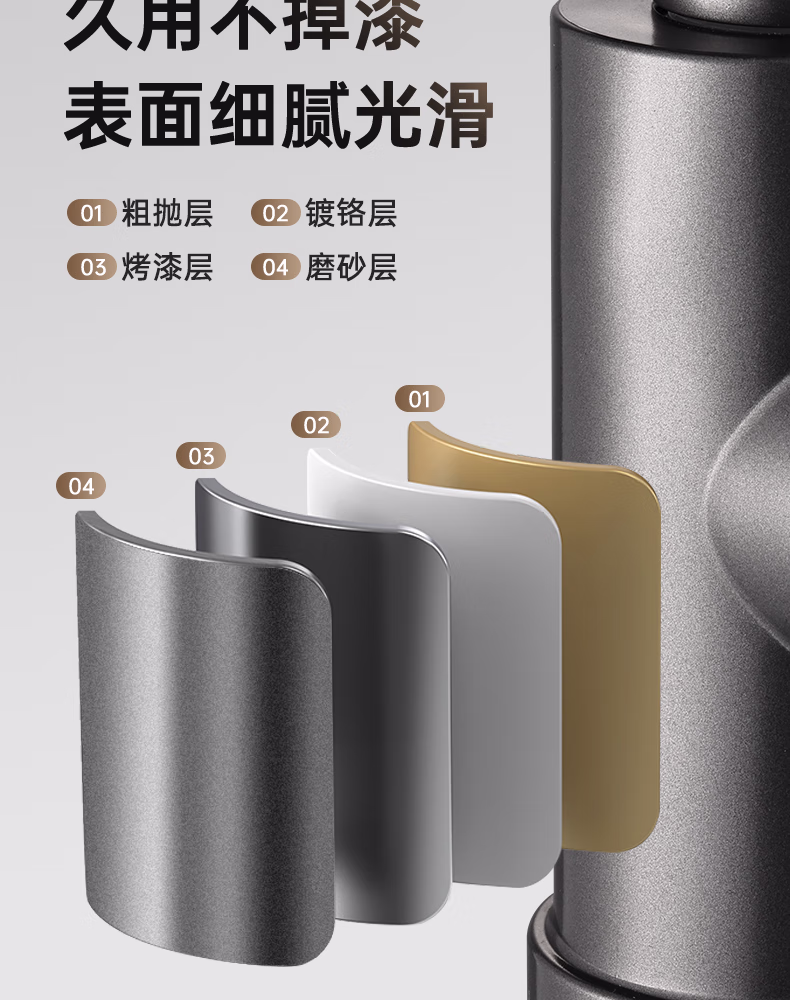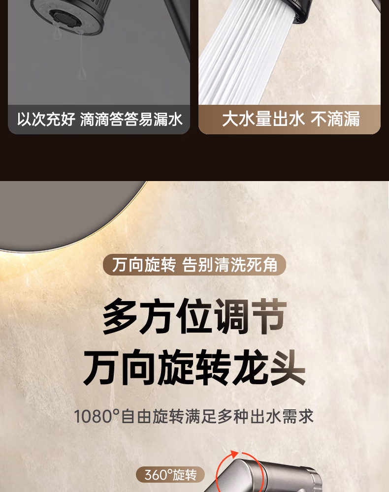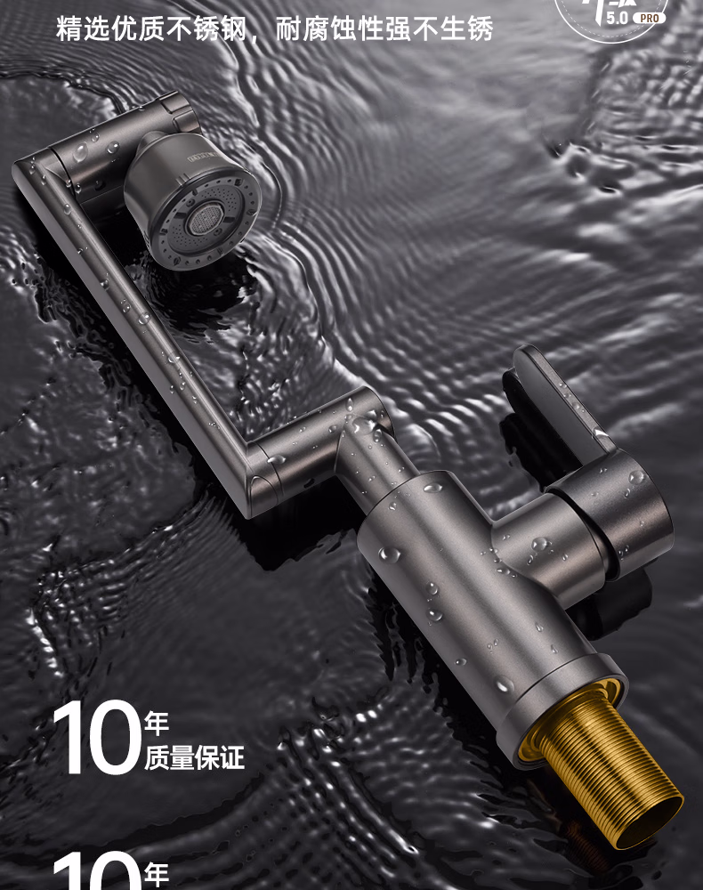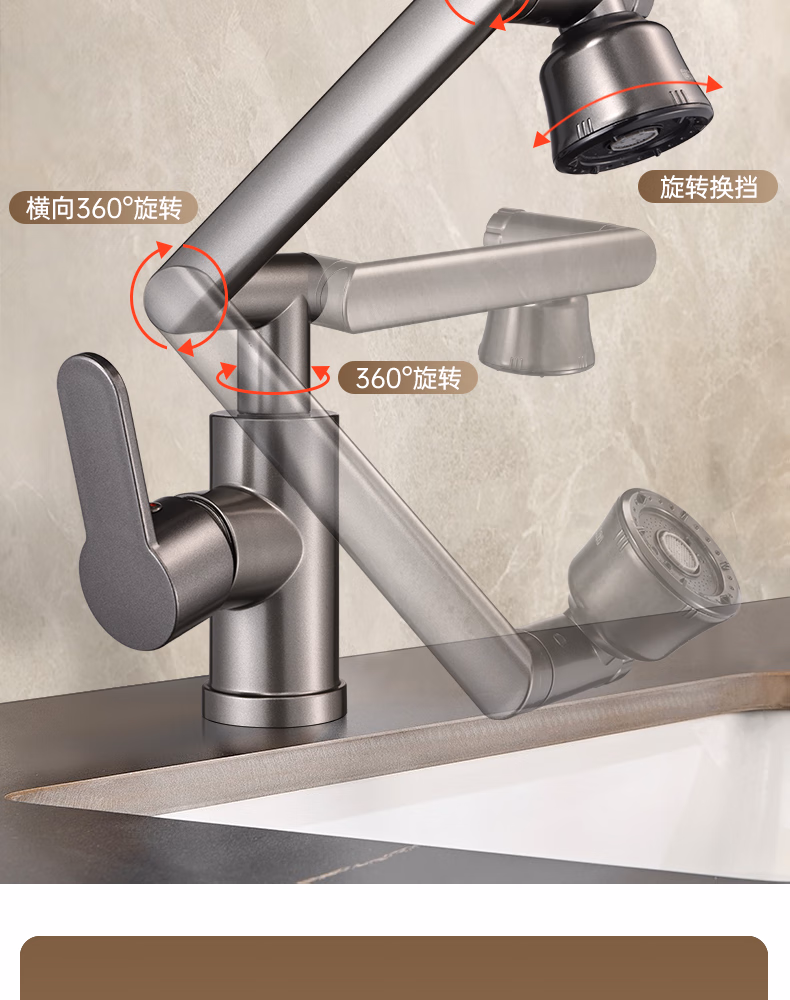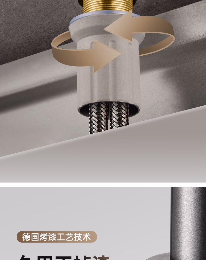 壹品印象全新铜制四档厨房冷热水龙头洗手盆洗脸池卫生间机械臂浴室招财猫 升级款铜制加厚【枪灰】冷热水龙头+80cm水管
