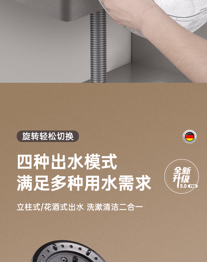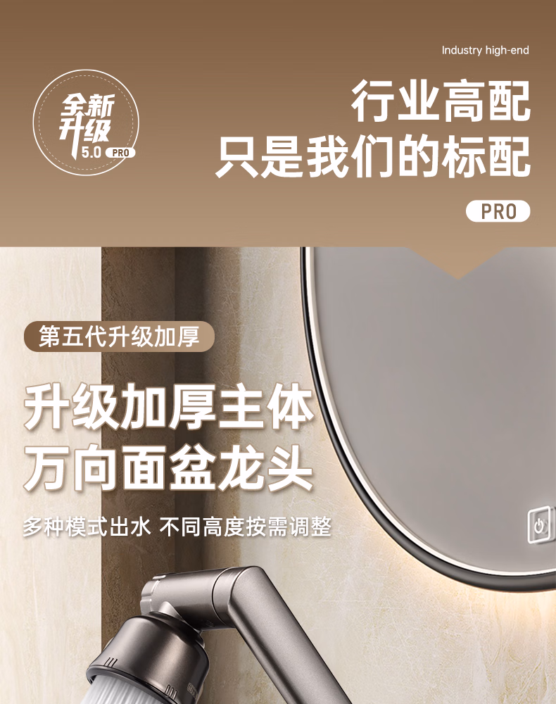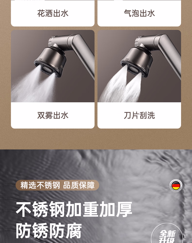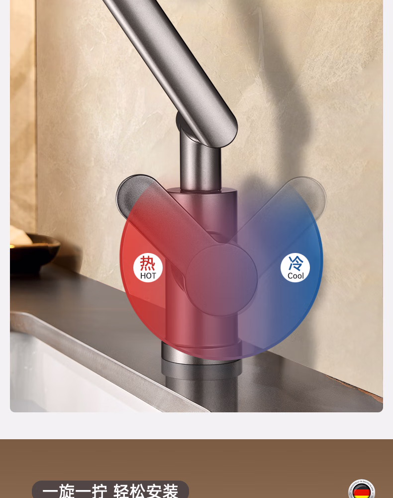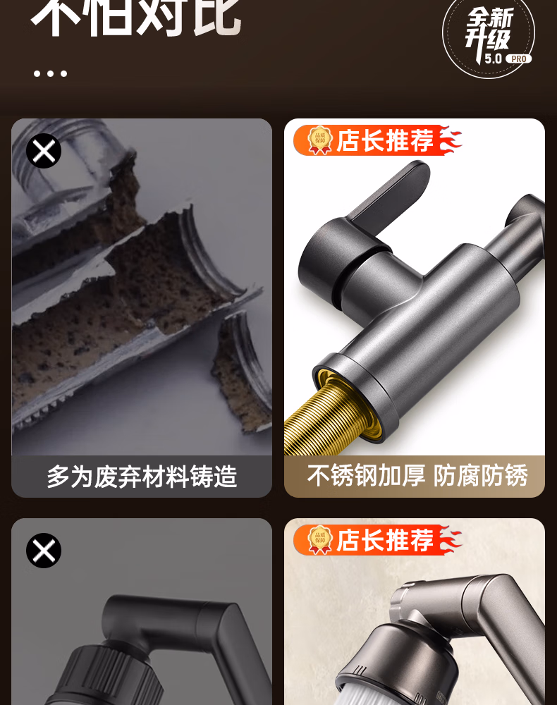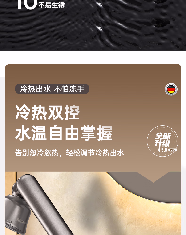壹品印象全新铜制四档厨房冷热水龙头洗手盆洗脸池卫生间机械臂浴室招财猫 升级款铜制加厚【枪灰】冷热水龙头+80cm水管